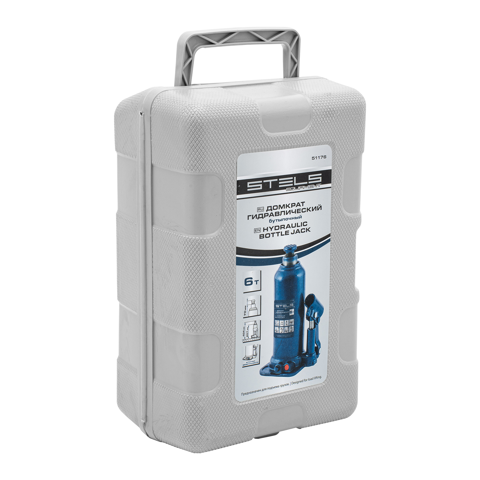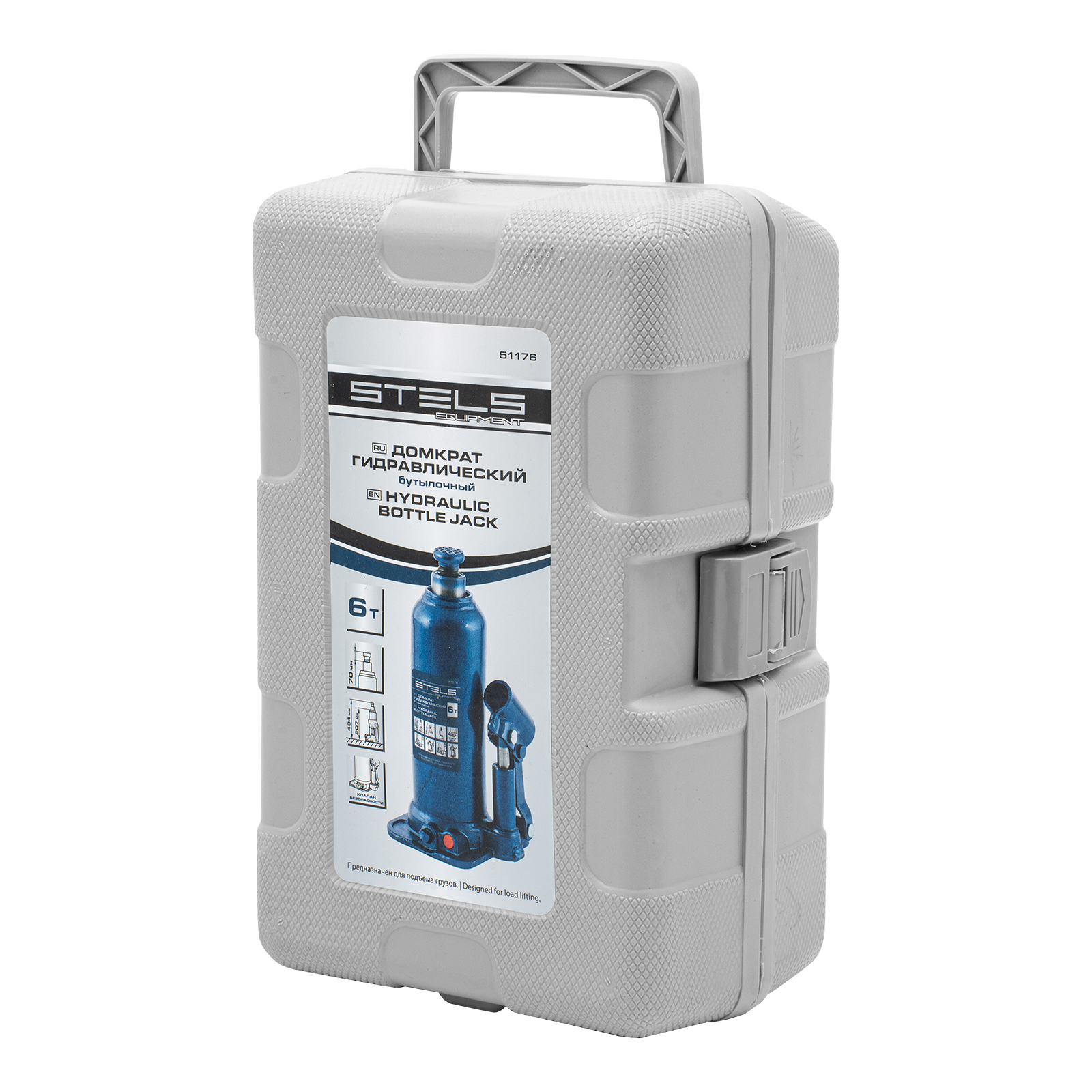 Гидравлический бутылочный домкрат Stels 51176 в пластиковом кейсе предназначен для поднятия грузов весом до 6 т на высоту 207-404 мм. Он не занимает много места и легко помещается в багажник, поэтому его можно брать с собой в дорогу или хранить в гараже. Используется для самостоятельного ремонта авто, также подходит для профессионального применения на станциях технического обслуживания.