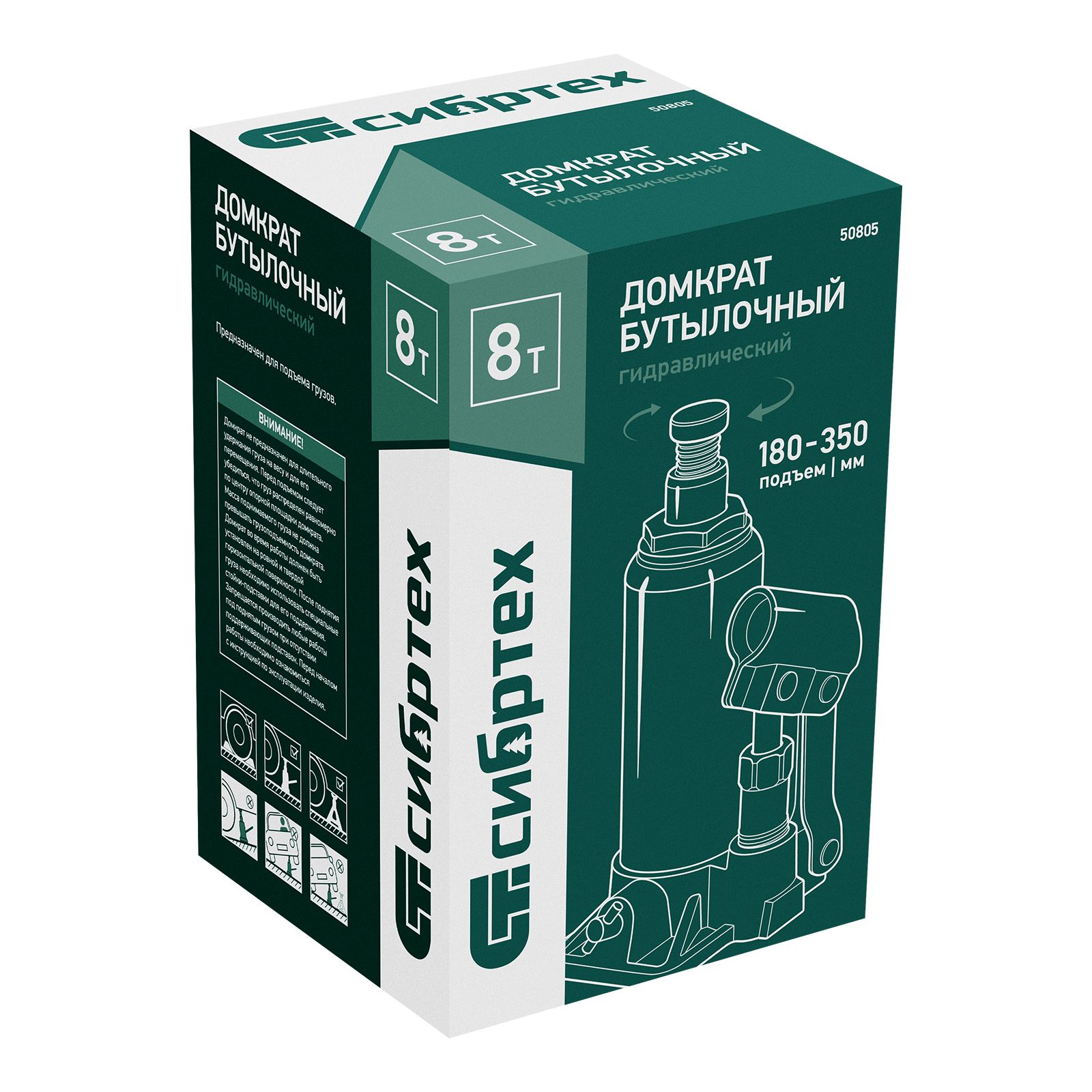 Домкрат гидравлический бутылочный Сибртех 50805 предназначен для подъема грузов массой до 8 т на высоту от 180 до 350 мм. Не требует больших усилий от пользователя и значительно облегчает рабочий процесс. Домкрат будет полезен при проведении техобслуживания машины в автосервисе или гараже.