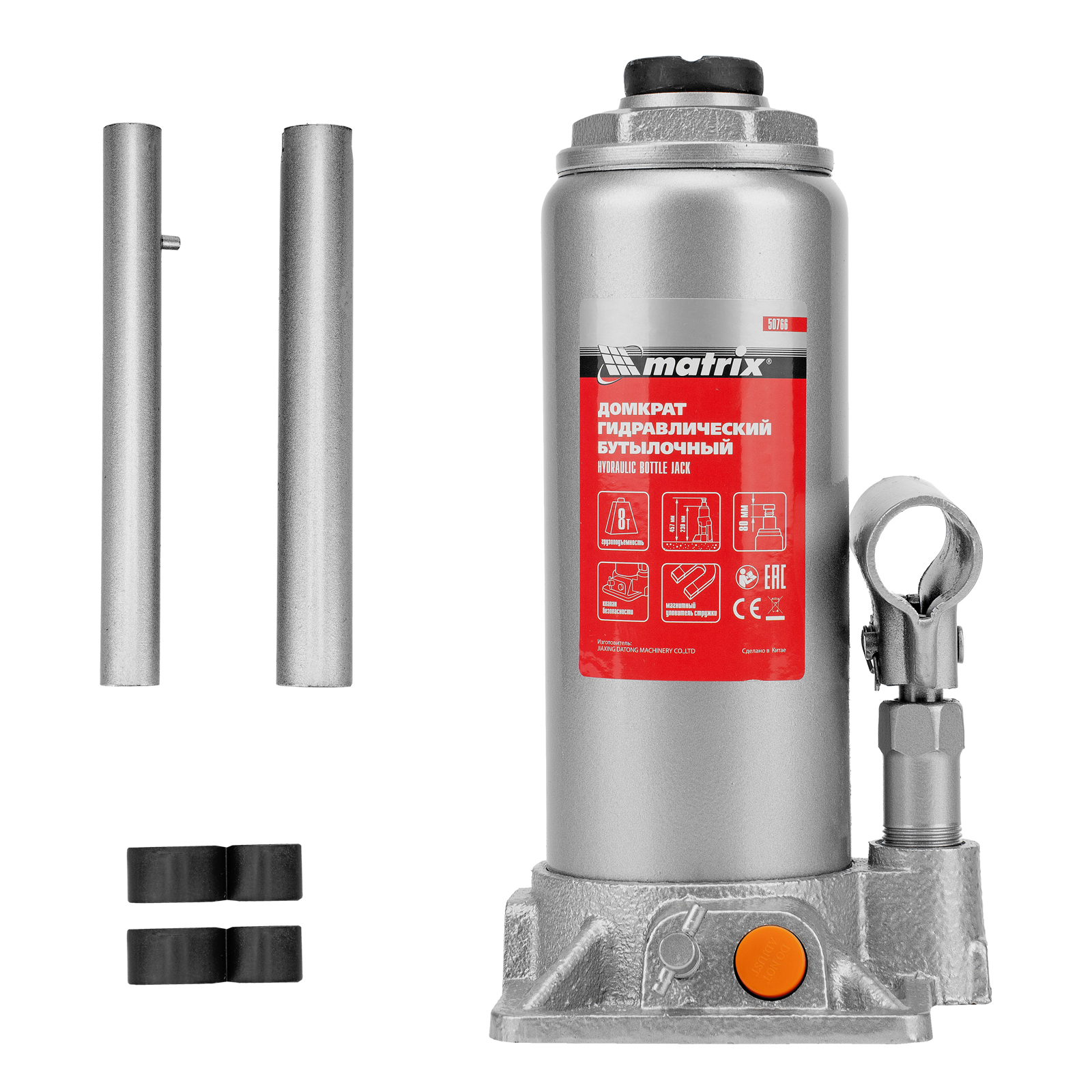 Домкрат гидравлический бутылочный, 8 т, h подъема 230-457 мм Matrix в Екатеринбурге