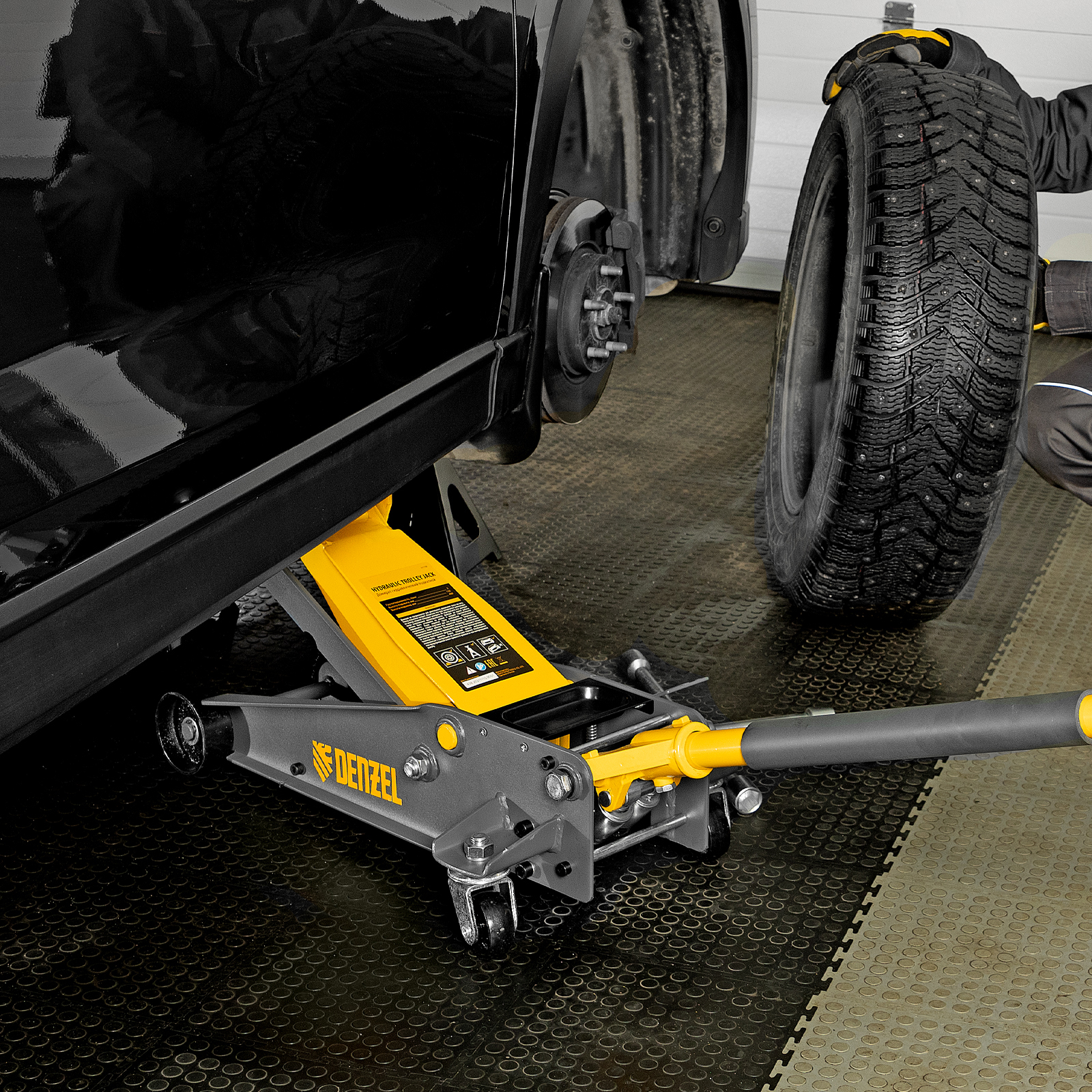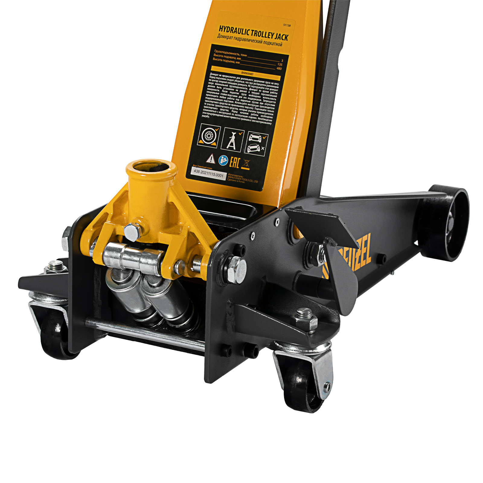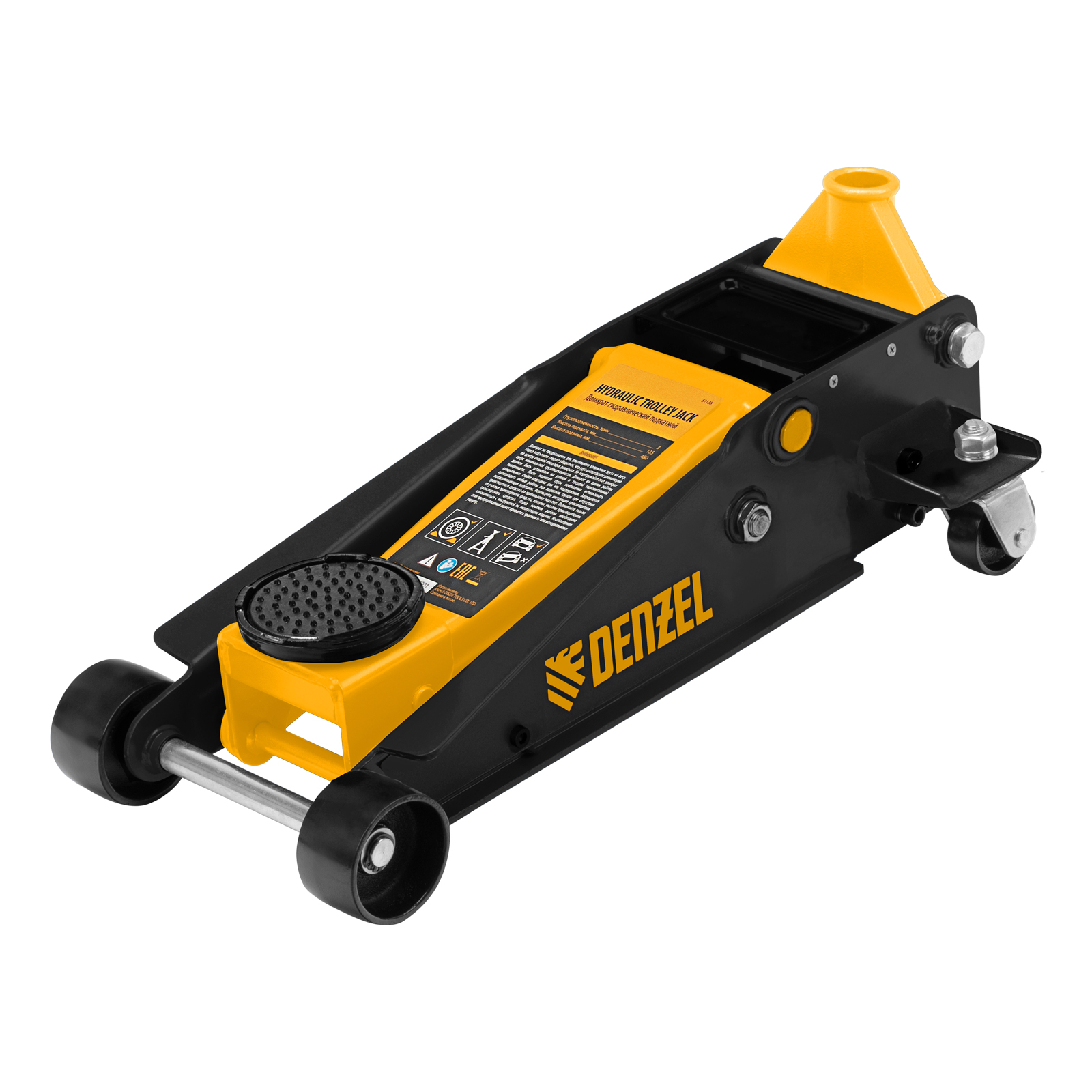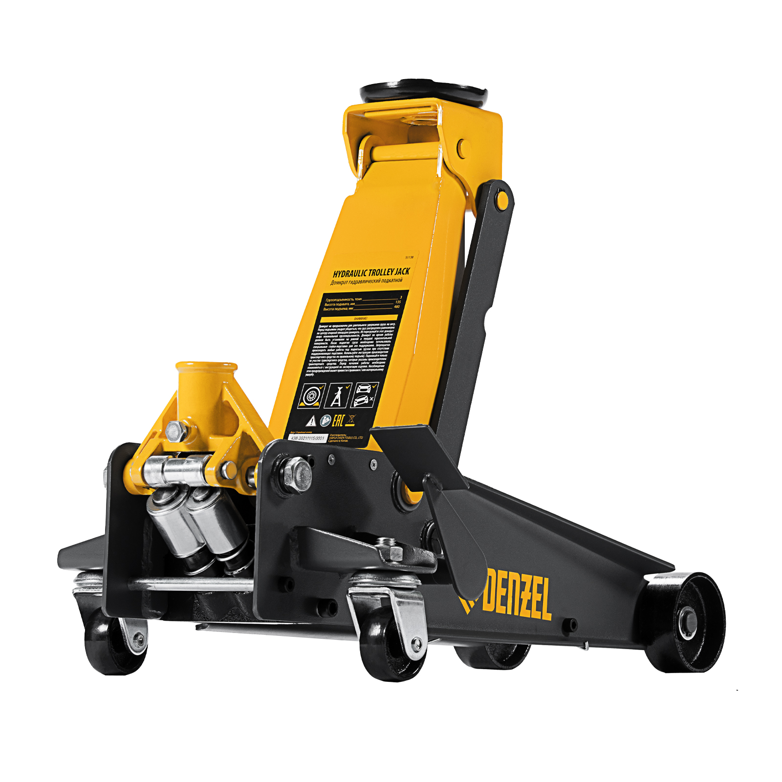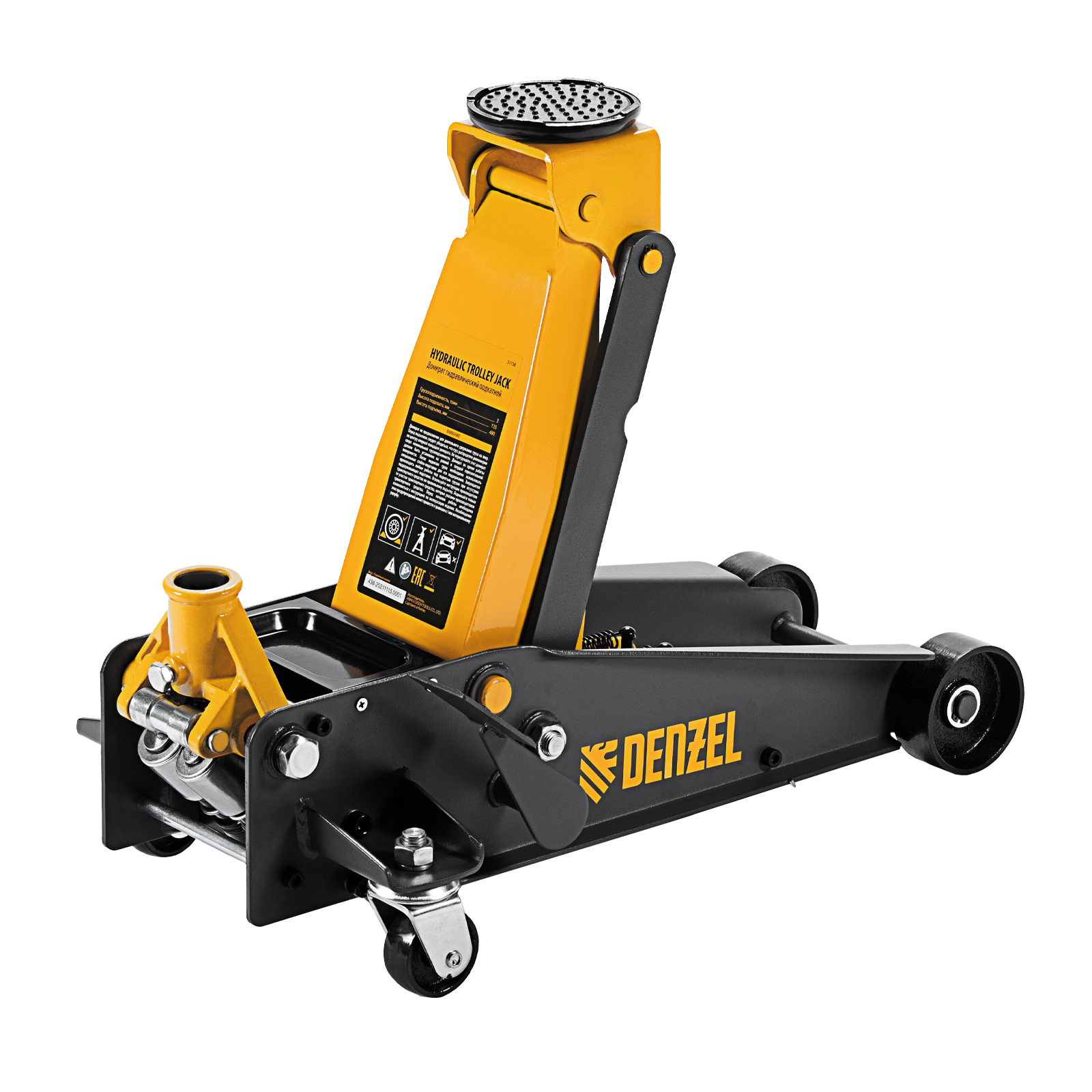 Домкрат гидравлический подкатной 3 т, с фиксатором, быстрый подъем, 135-480 мм, профессиональный Denzel в Екатеринбурге
