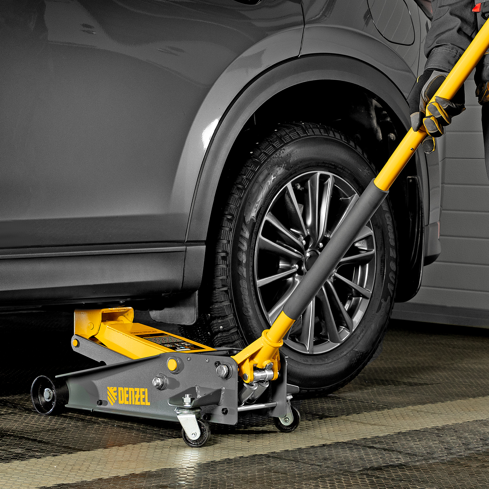 - Аккуратная работа — резиновая поворотная опора обеспечивает надежный контакт с кузовом, а также защищает автомобиль и сам домкрат от повреждений.