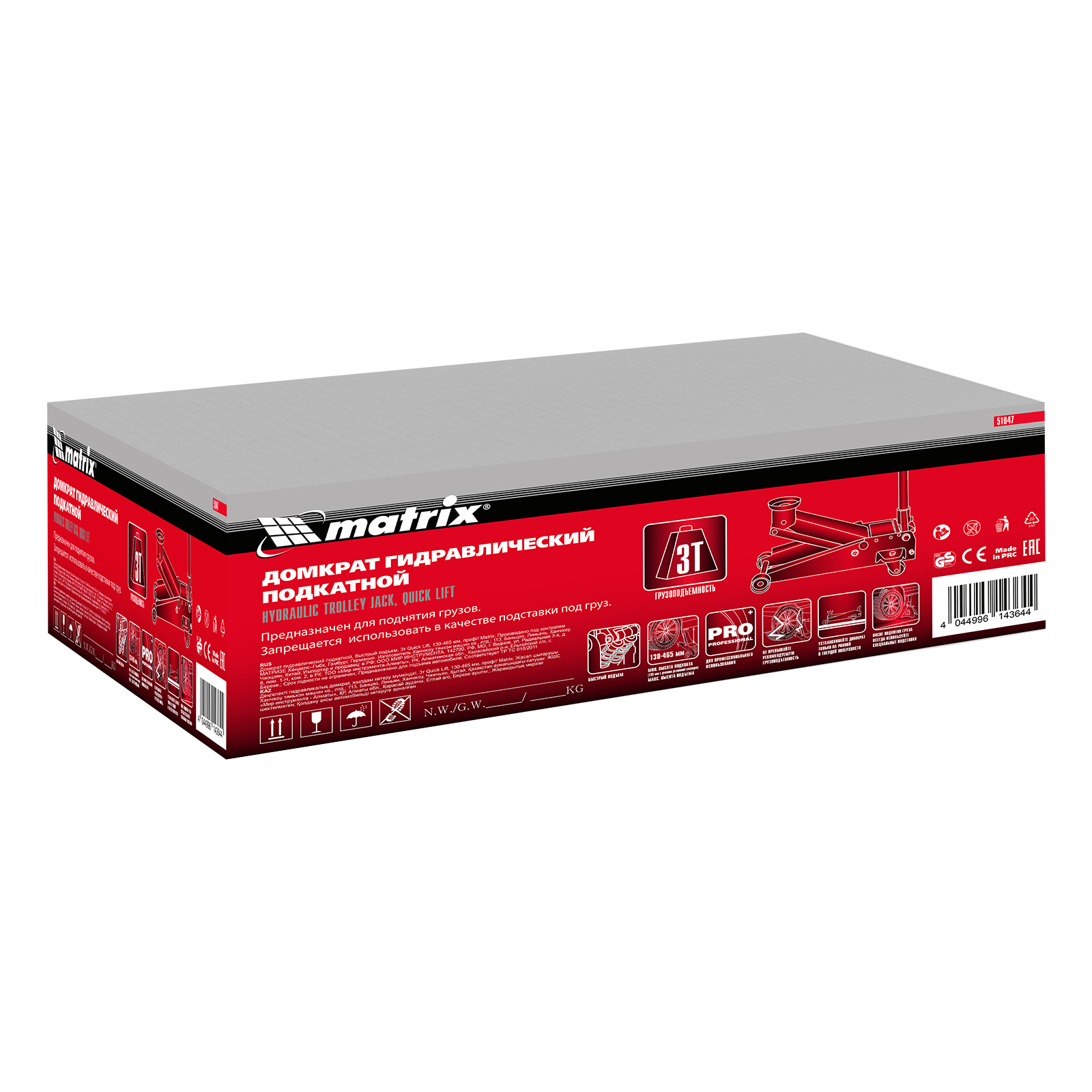 Домкрат гидравлический подкатной профессиональный, быстрый подъем, 3 т, 130-465 мм. Quick Matrix в Екатеринбурге
