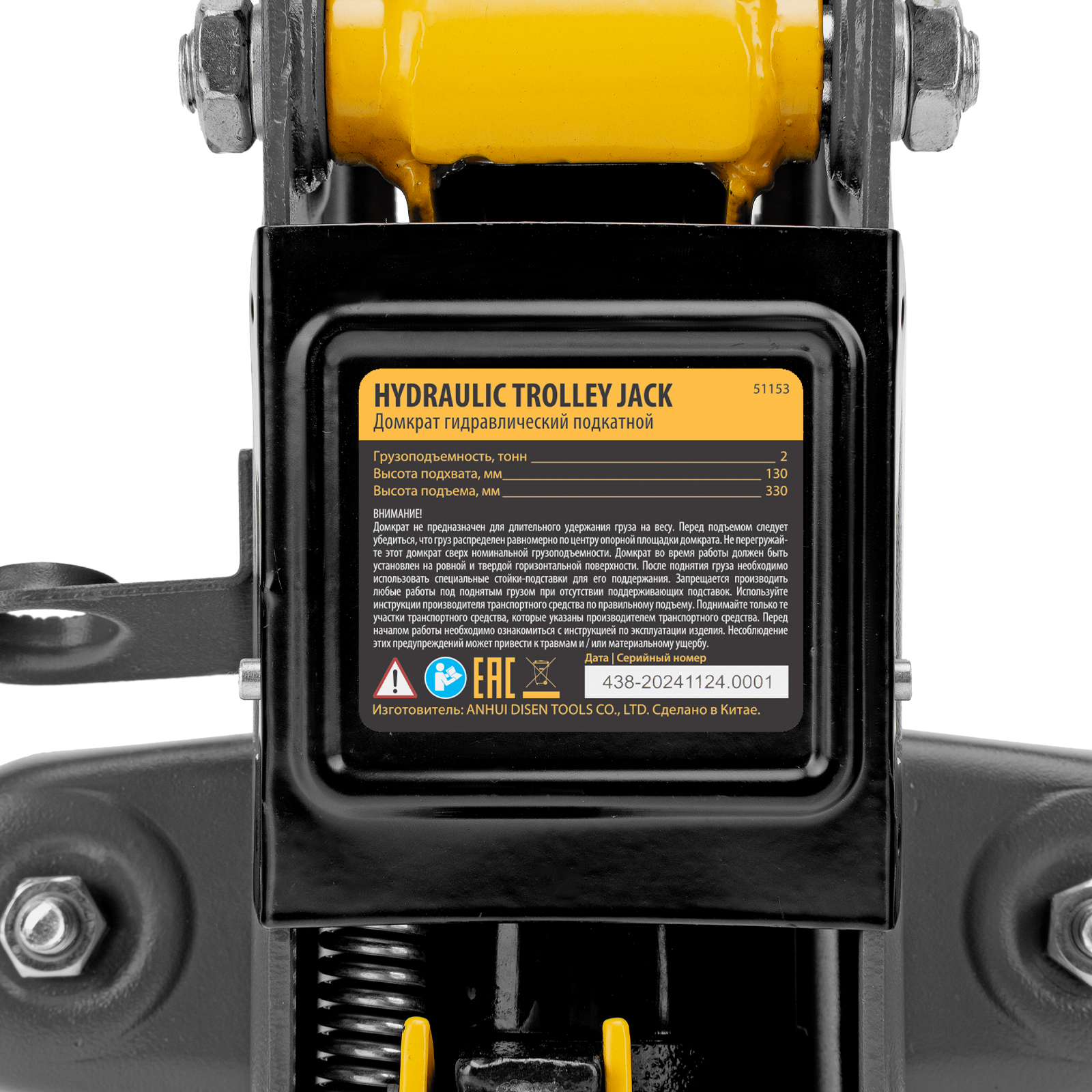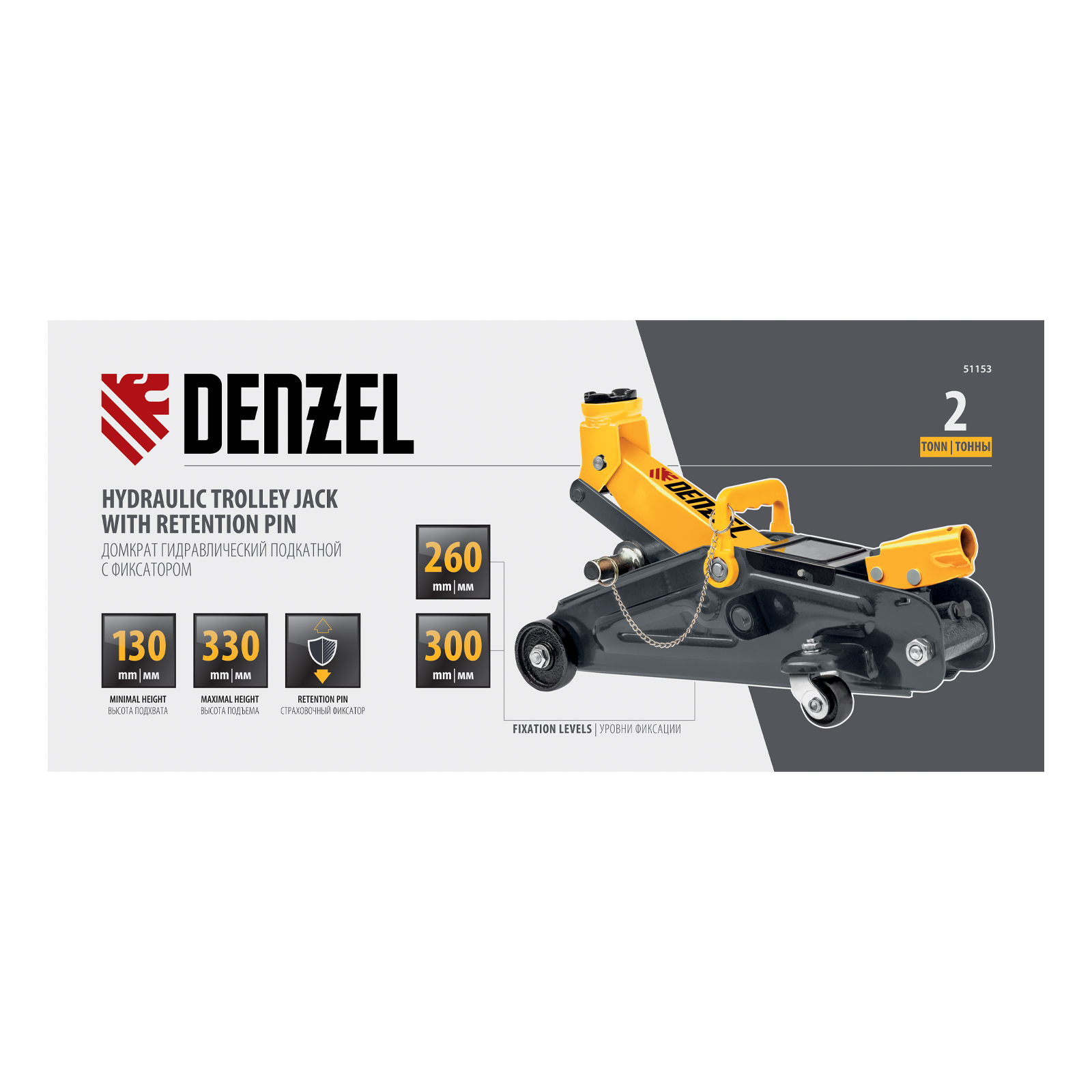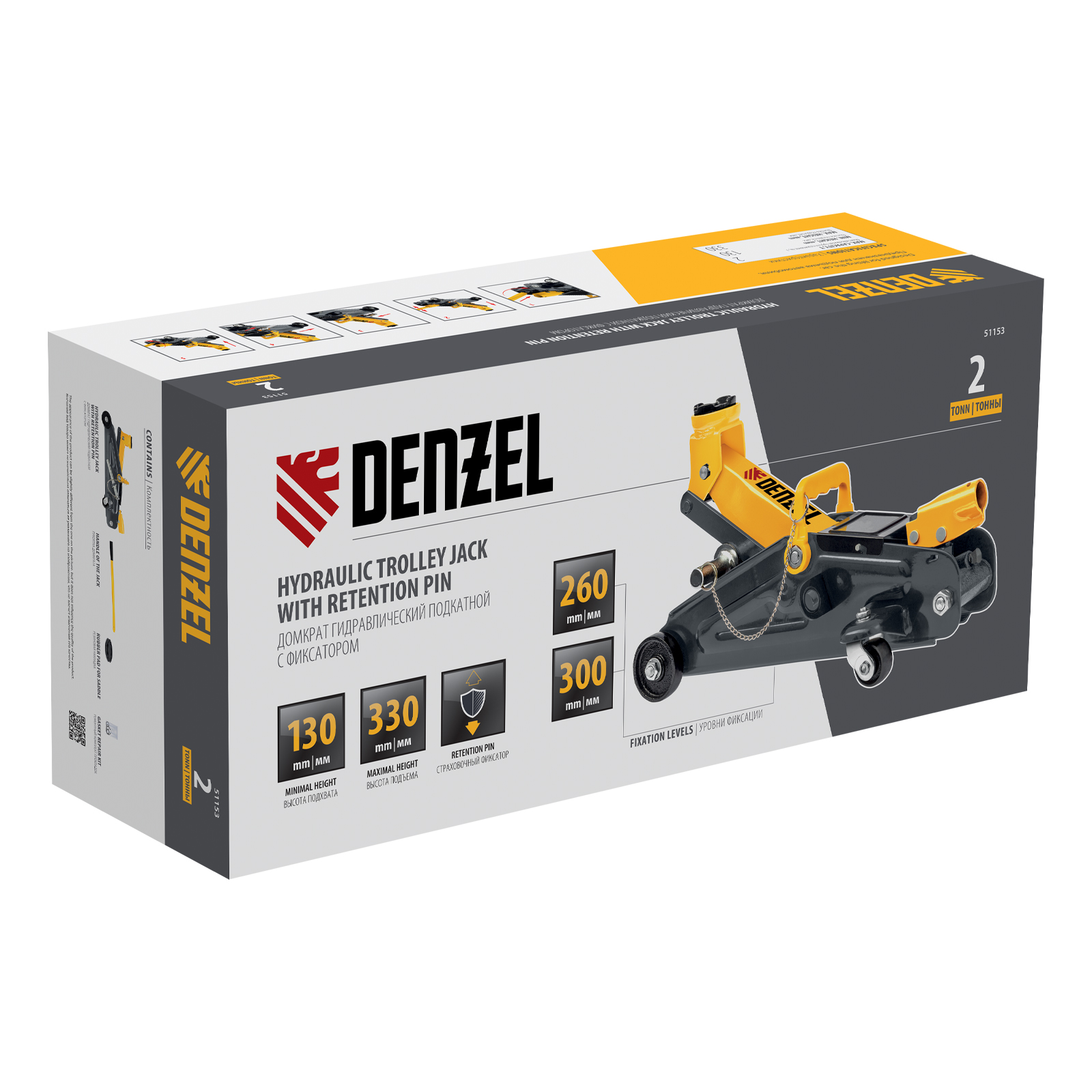 Домкрат гидравлический подкатной с фиксатором, 2 т, 130-330 мм Denzel в Екатеринбурге