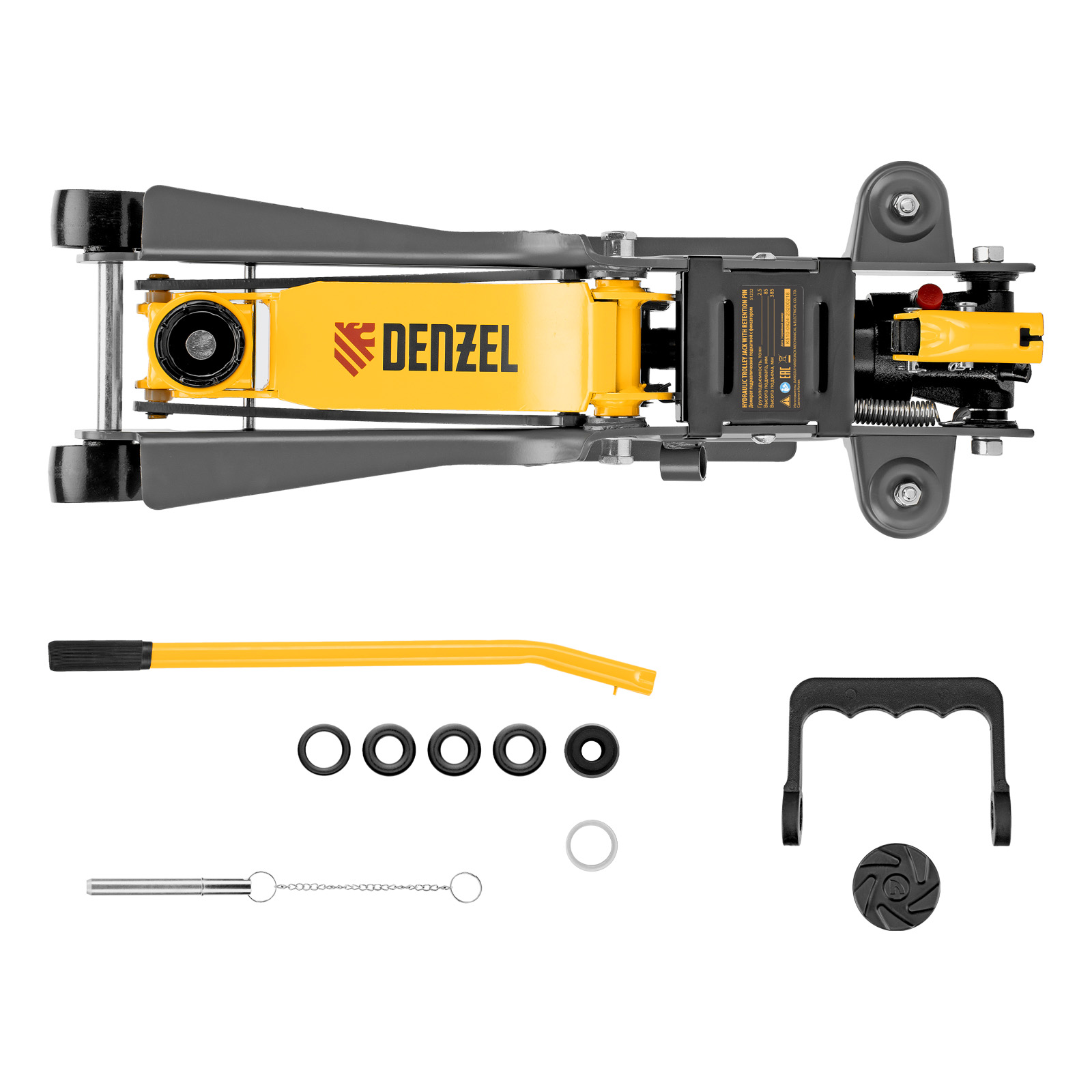 Домкрат гидравлический подкатной с фиксатором, 2,5 т, 85-385 мм Denzel в Екатеринбурге
