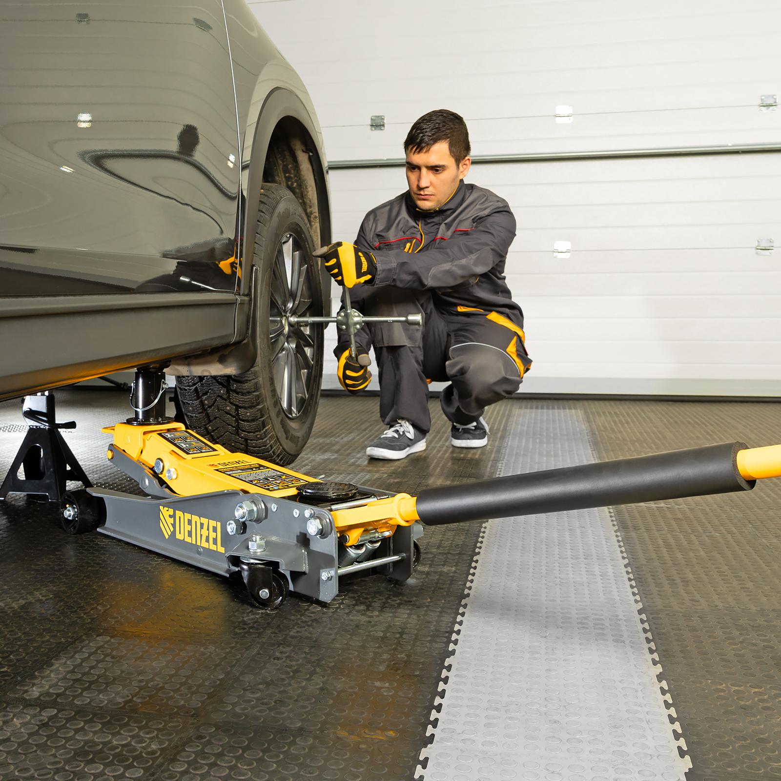 Профессиональный подкатной гидравлический домкрат Denzel 51270 с низким подхватом используется для быстрого подъема на высоту 98-770 мм всех типов автомобилей с любым клиренсом и массой до 2-3 т, в том числе SUV (внедорожников). Регулируемая проставка позволяет менять высоту подхвата и подъема, а также максимальную грузоподъемность. Высота подъема до 770 мм позволяет без труда обслуживать автомобили с высоким клиренсом, такие как рамные внедорожники, например, Dodge RAM, Ford Raptor и т.д.