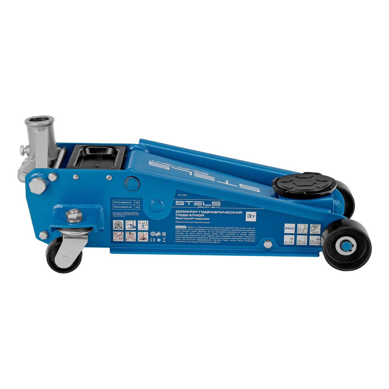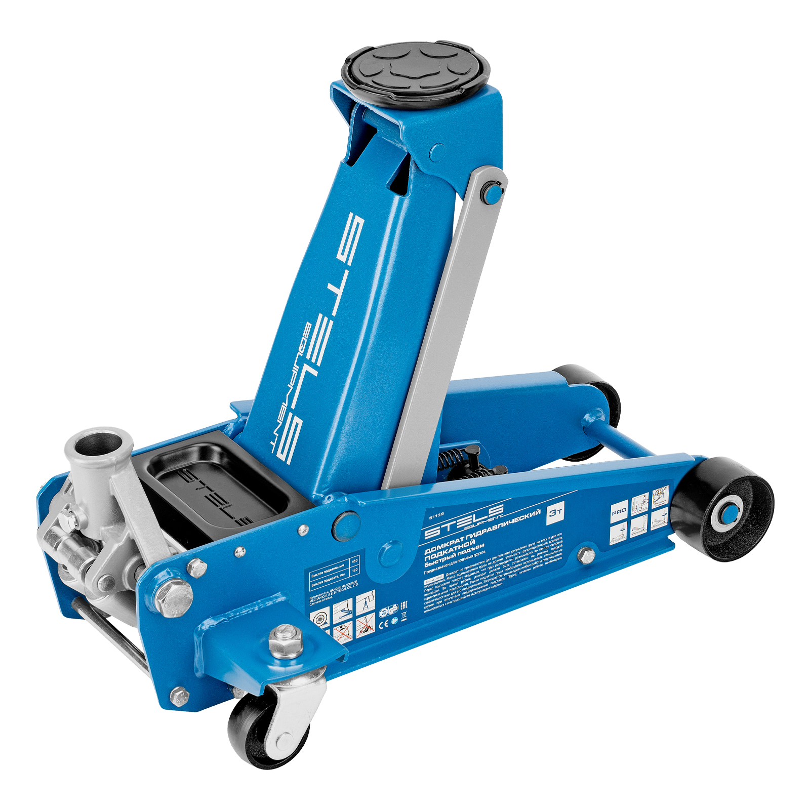 Профессиональный подкатной гидравлический домкрат Stels 51139 используется для быстрого подъема на высоту 120-450 мм всех типов автомобилей со стандартным клиренсом и массой до 3 тонн. Благодаря системе быстрого подъема QUICK LIFT для достижения предельной высоты достаточно 6 качков рукоятки. Домкрат подходит для использования на станциях техобслуживания и шиномонтажа.