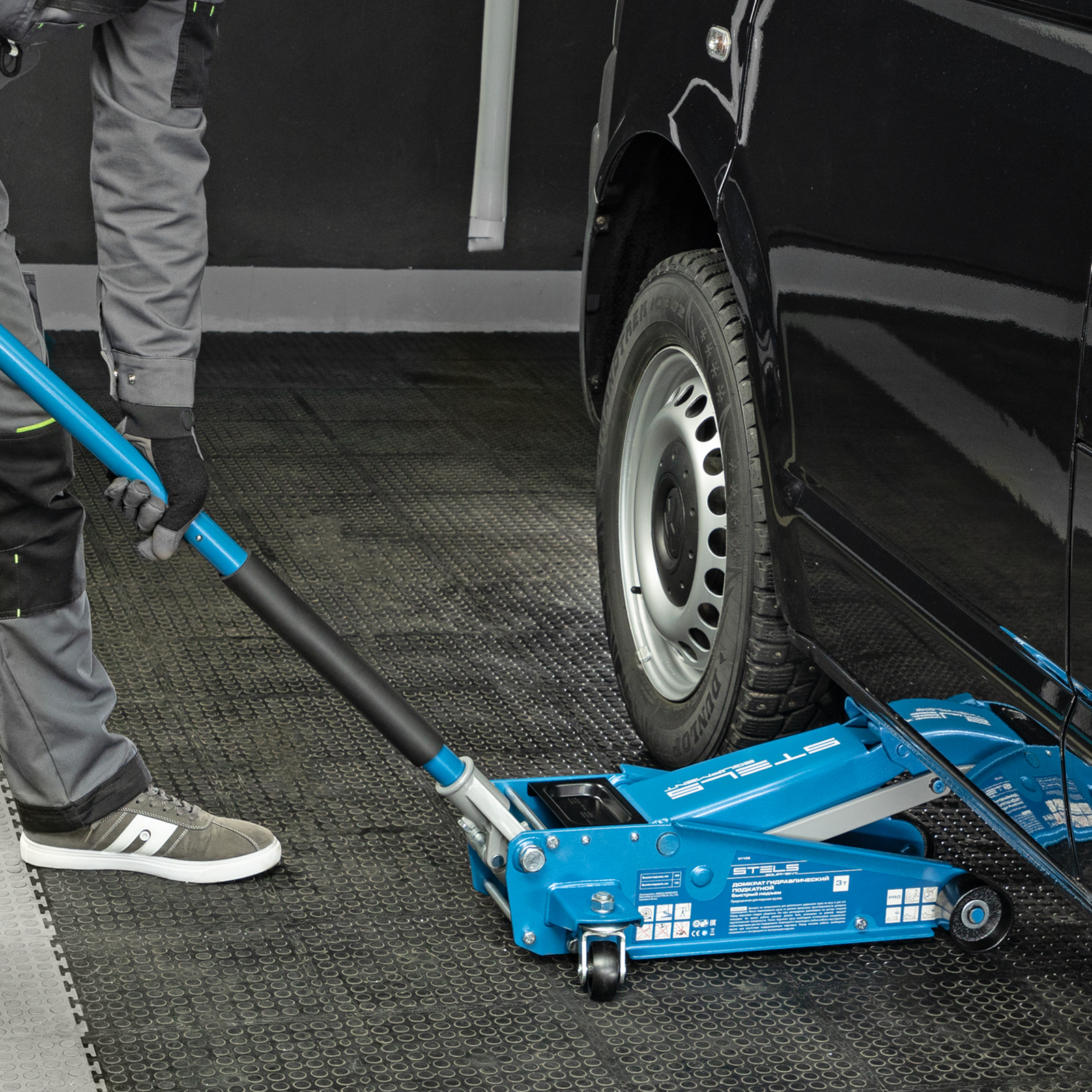 - Аккуратная работа — резиновая опора и прорезиненная рукоятка защищают кузов и днище автомобиля от повреждений.