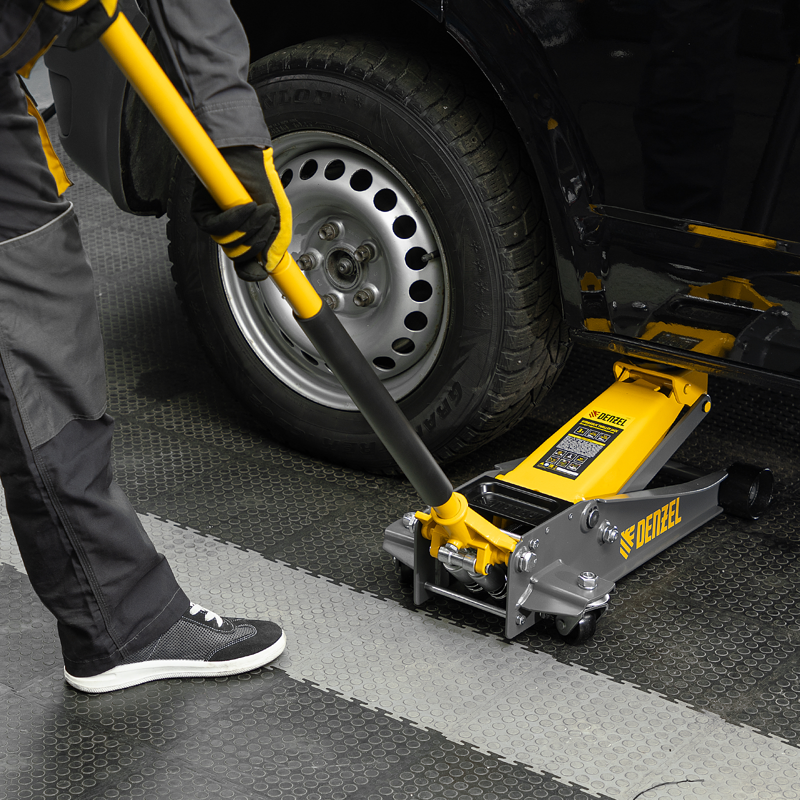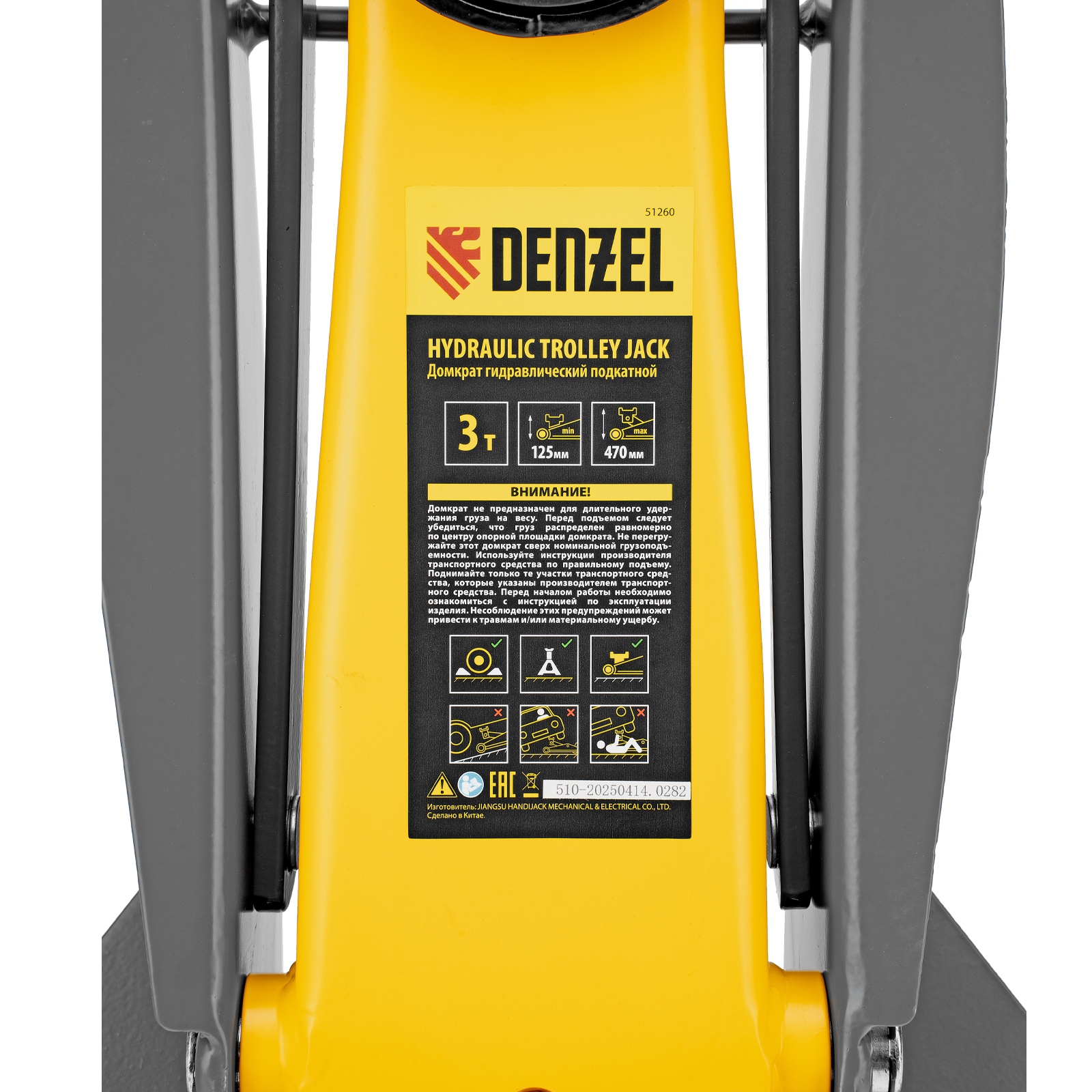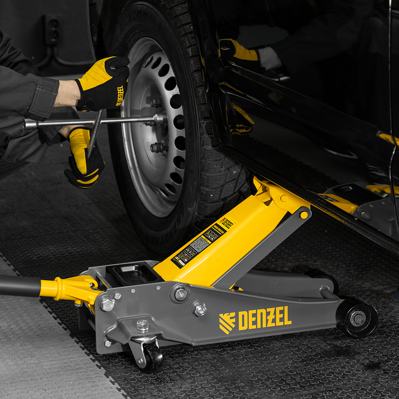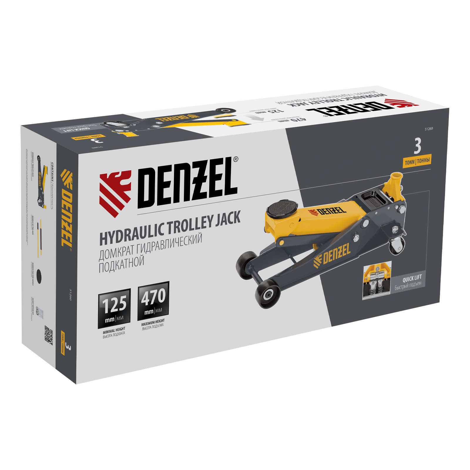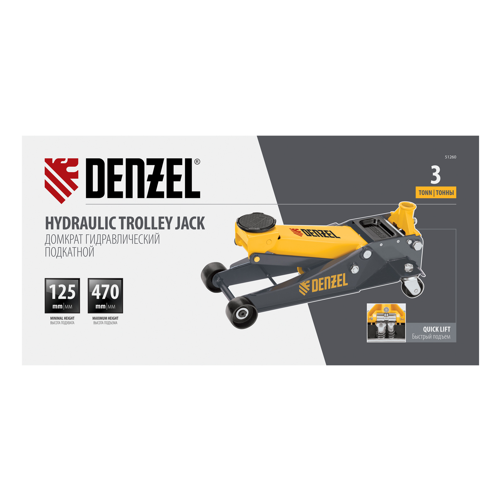 Домкрат гидравлический подкатной, 3 т, 125-470 мм, быстрый подъем, проф. Denzel в Екатеринбурге