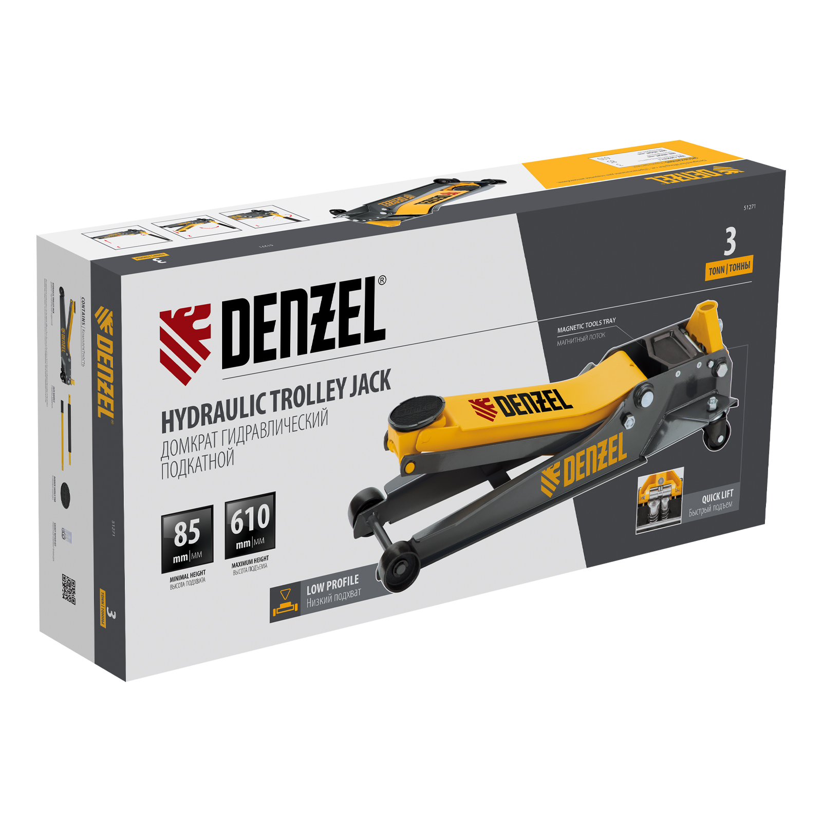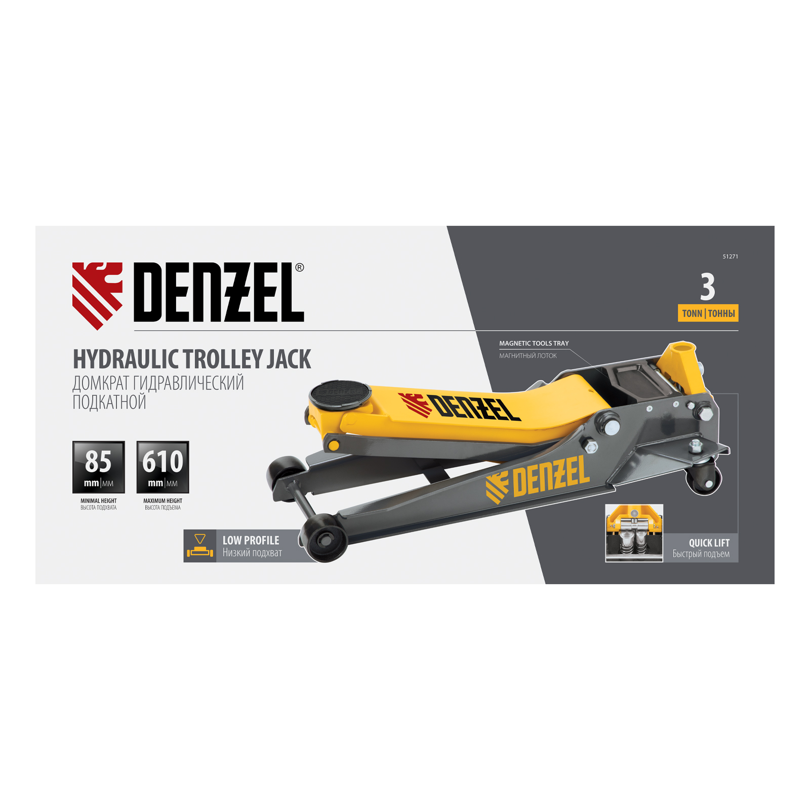 Домкрат гидравлический подкатной, 3 т, 85-610 мм, быстрый подъем, низ. подхват, проф, SUV Denzel в Екатеринбурге