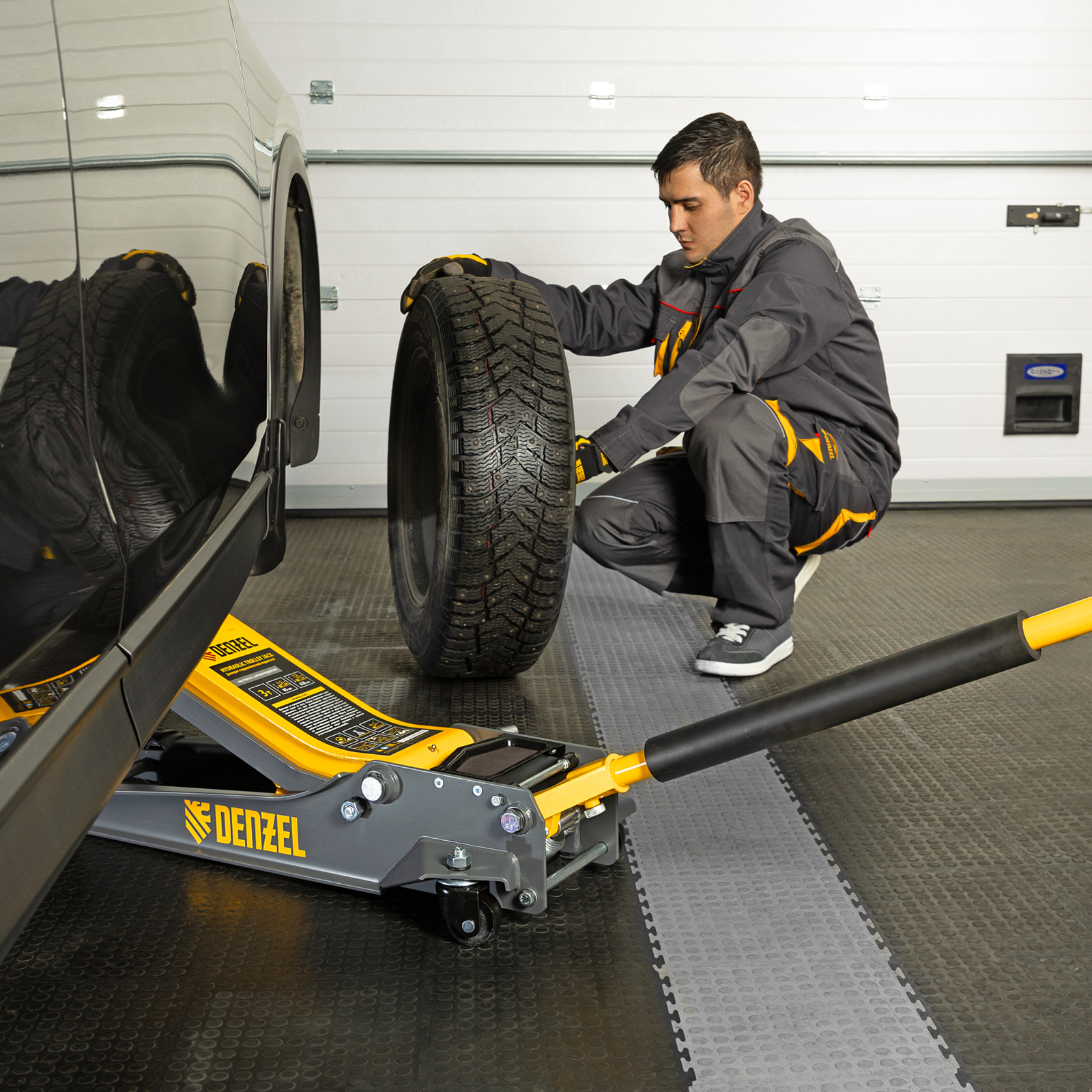 Профессиональный подкатной гидравлический домкрат Denzel 51271 с низким подхватом используется для быстрого подъема на высоту 85-610 мм всех типов автомобилей с любым клиренсом и массой до 3 т, в том числе SUV. В гидравлическом блоке предусмотрено 2 насоса (система быстрого подъема QUICK LIFT), благодаря чему для достижения предельной высоты достаточно 6 качков рукоятки. Домкрат подходит для использования на станциях техобслуживания и шиномонтажа.