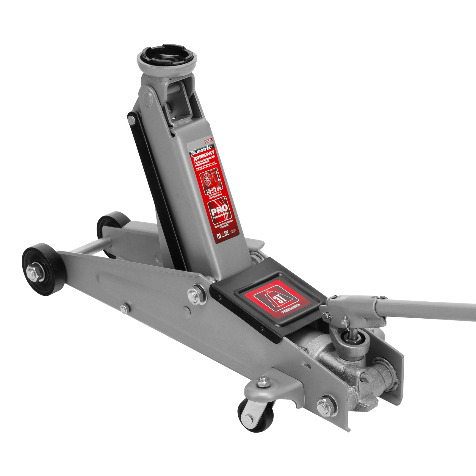 Домкрат гидравлический подкатной, 3 т, высота подъема 130-410 мм, поворотная ручка Matrix в Екатеринбурге