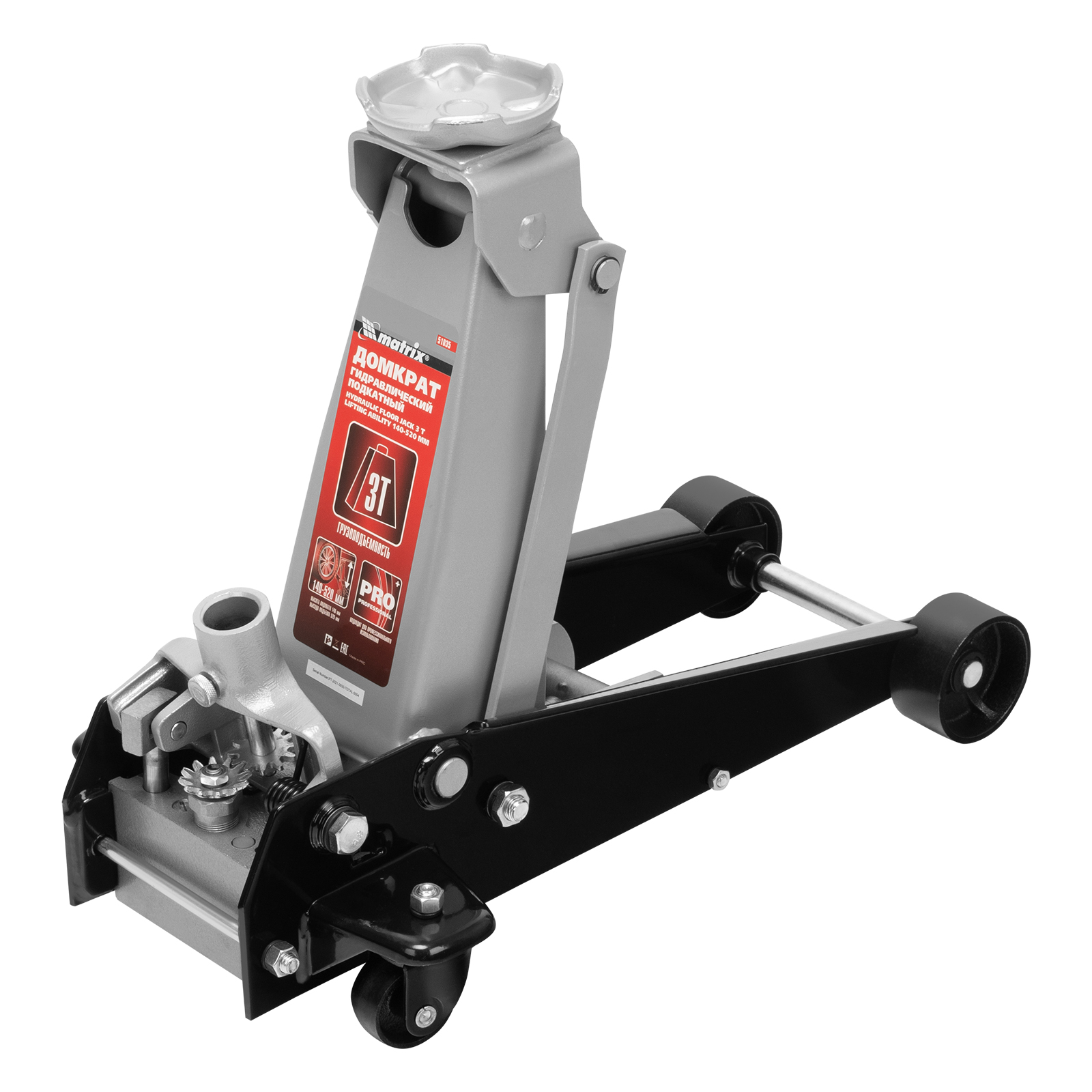 Домкрат гидравлический подкатной, 3 т, высота подъема 140-520 мм Matrix в Екатеринбурге