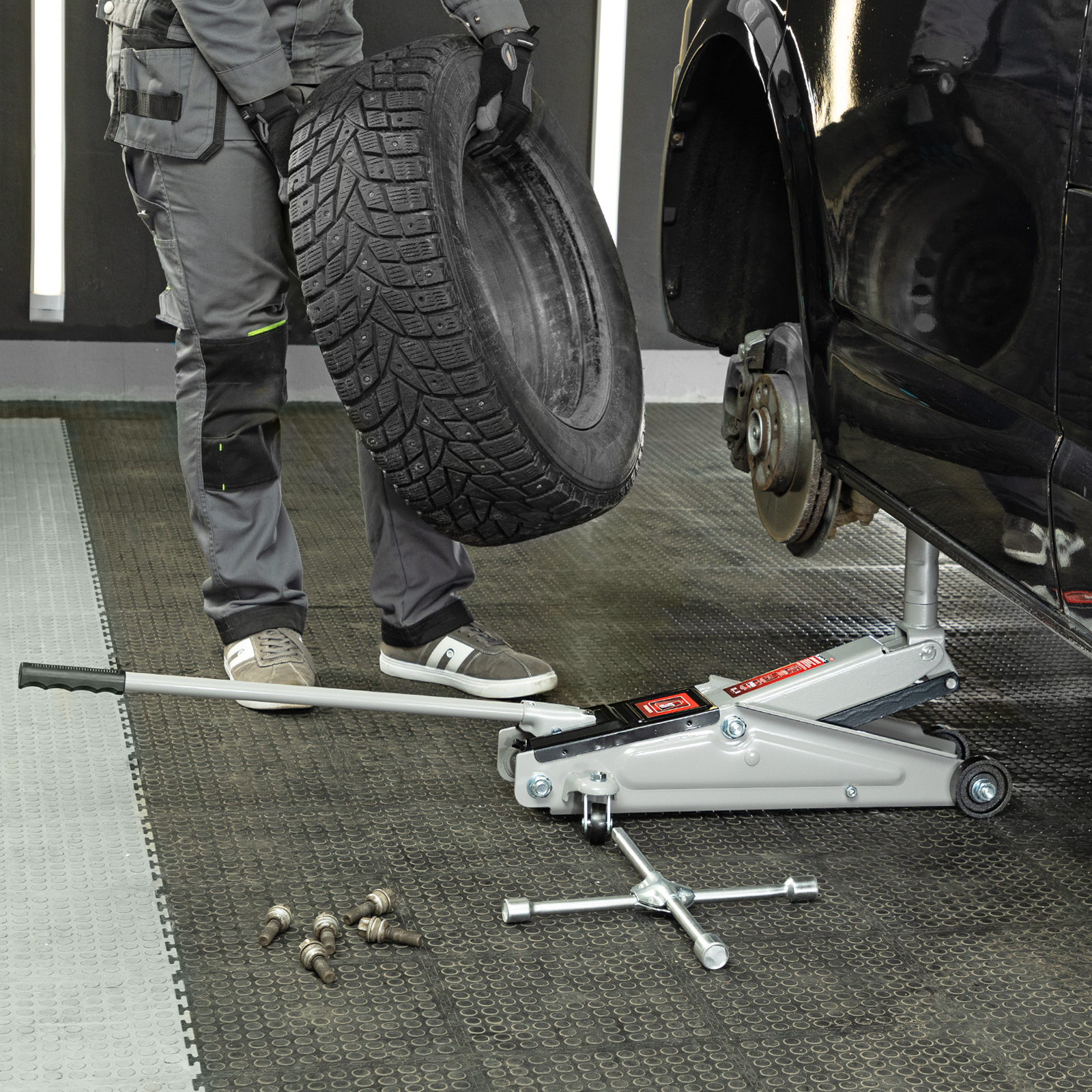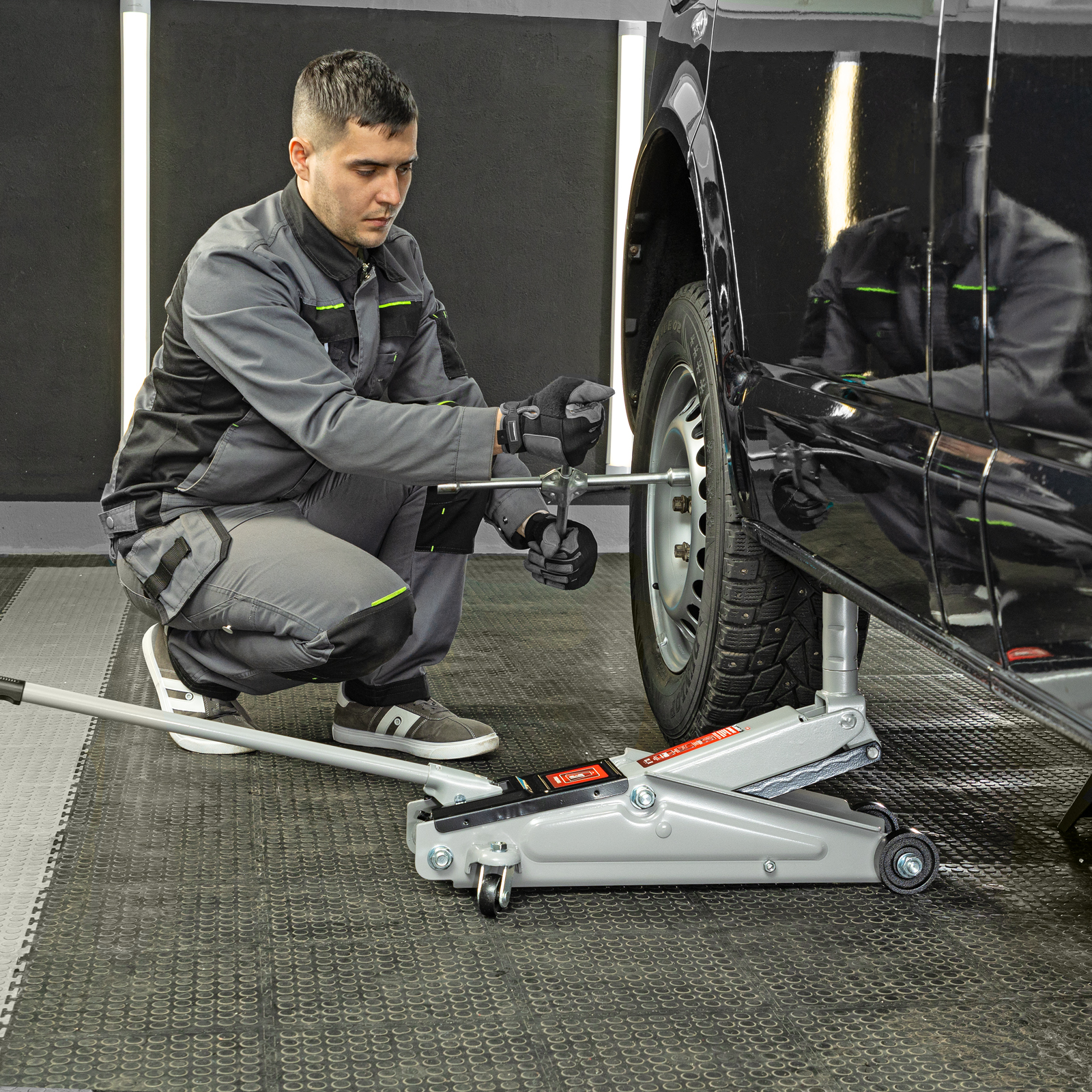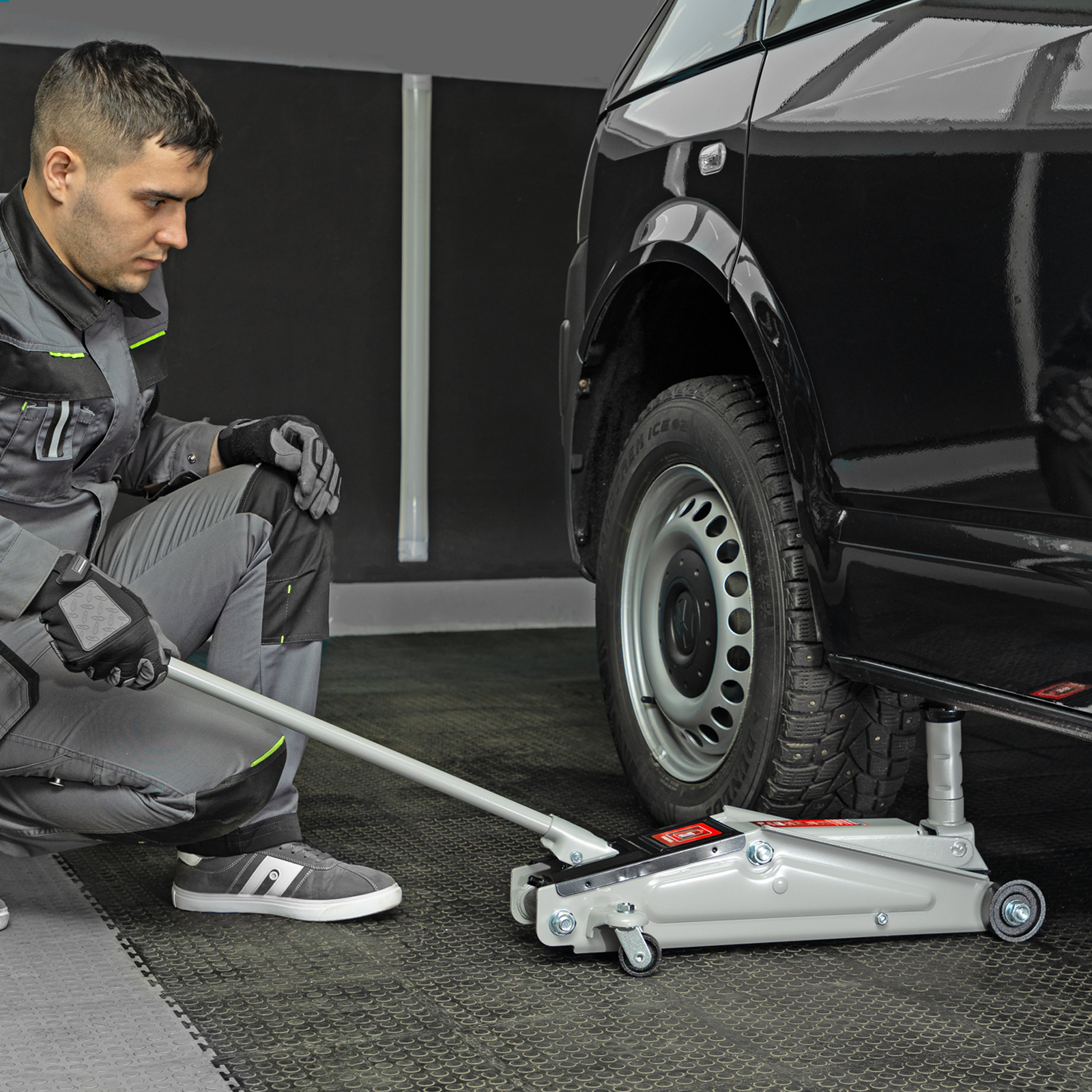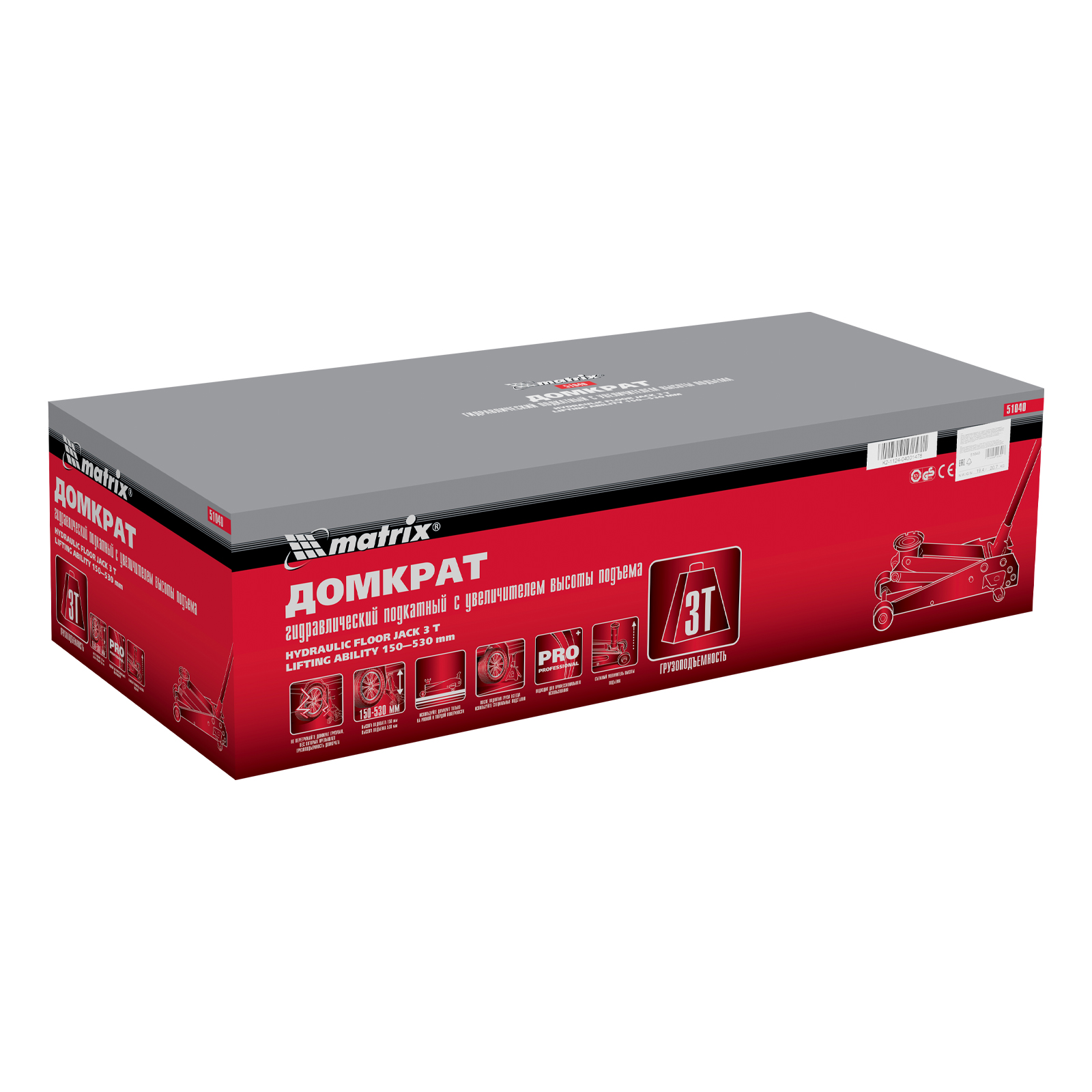 Подкатной гидравлический домкрат Matrix 51040 с высотой подхвата 150 мм, — полупрофессиональное гаражное оборудование, способное поднимать груз массой до 3 т на высоту до 530 мм. Высота подхвата 150 мм позволяет использовать домкрат для автомашин с высоким клиренсом. Домкрат будет полезен как в автомастерской, так и в частном гараже.