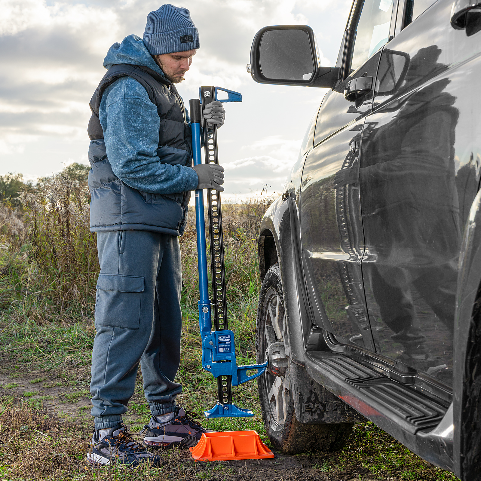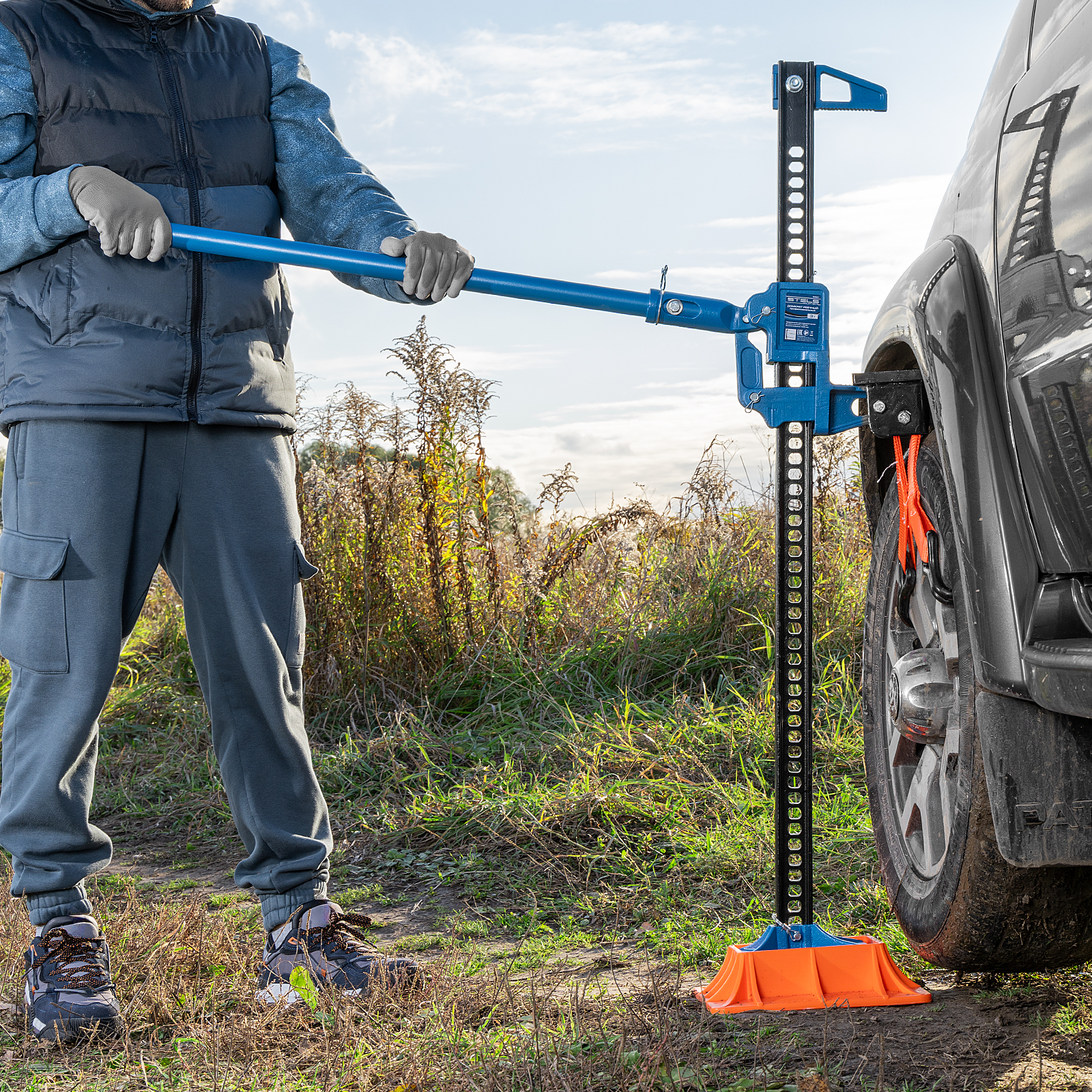 - Длительный срок службы — домкрат выполнен из стали, а порошковое покрытие защищает его от коррозии.