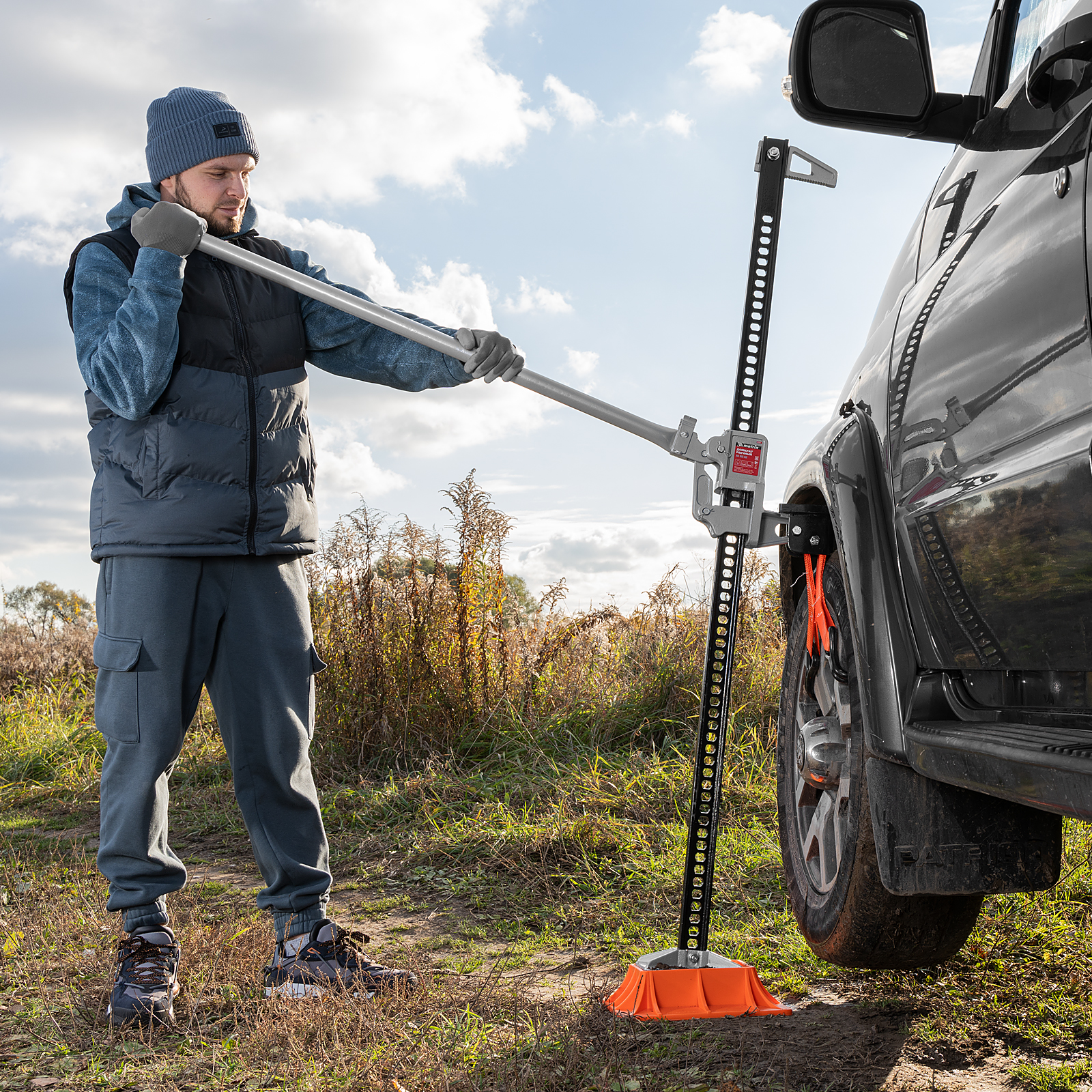 Реечный домкрат Matrix High Jack 505195 позволяет поднимать внедорожники и грузовики весом до 3 т на высоту 115-1315 мм. Пригодится во время ремонта автомобилей. Несущая рейка дополнена зацепной петлей, поэтому домкрат можно использовать как ручную лебедку или стягивающее устройство.