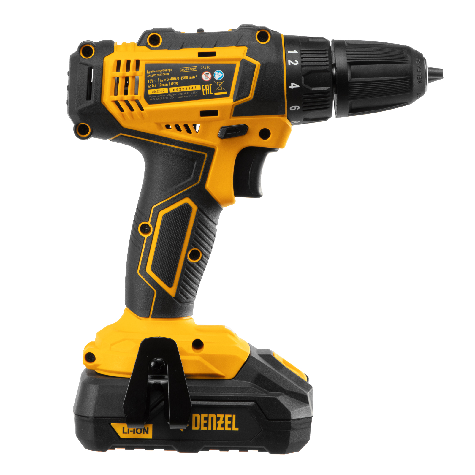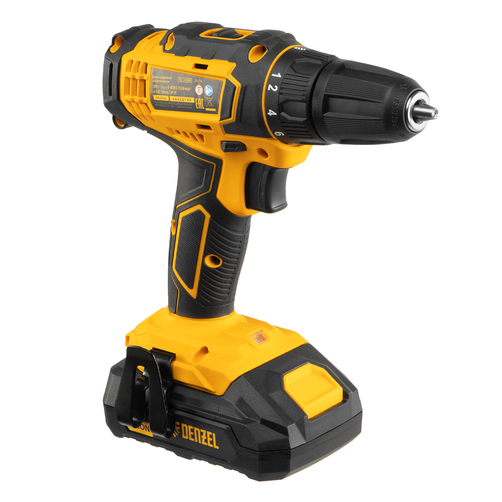 Дрель-шуруповерт аккумуляторная CDL-18-02BM, Li-Ion, 18 В, 2 аккумулятор Denzel в Екатеринбурге