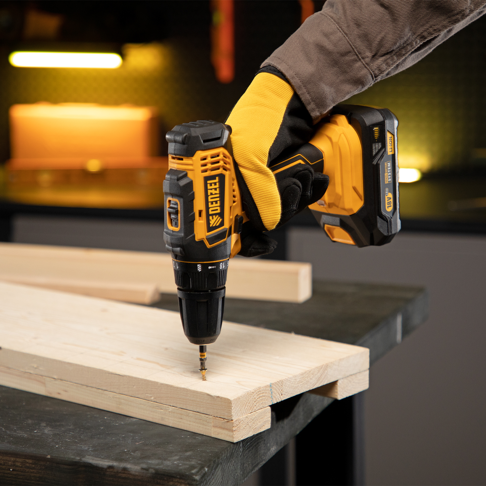 Аккумуляторная дрель-шуруповерт Denzel CDL-18-02BM 26116 с Li-Ion аккумуляторами 18 В предназначена для ввинчивания и вывинчивания винтов и шурупов, а также получения отверстий в различных конструкционных материалах: металле, древесине, пластмассе и т.п. Оптимальна для интенсивного использования как в быту, так и на строительных объектах, пригодится в процессе ремонта, при сборке мебели и т.д. Система защиты от перегрузки, перегрева, глубокой разрядки и нежелательного перезаряда обеспечивает долговечность инструмента и комфортную работу.