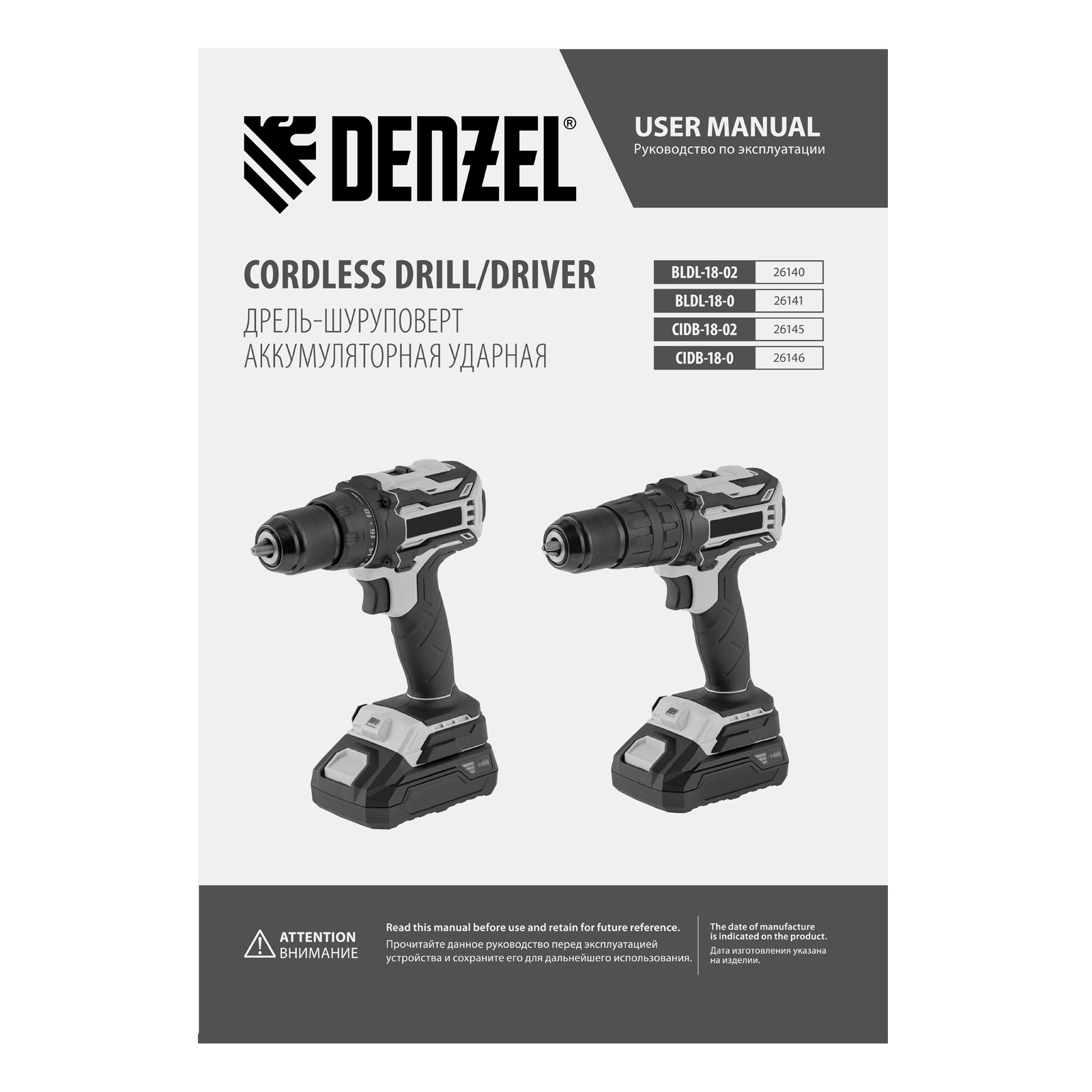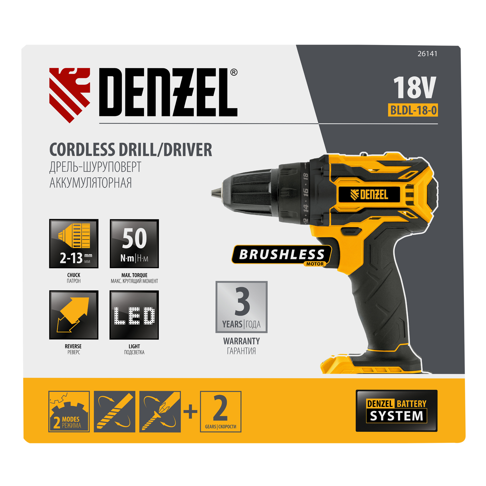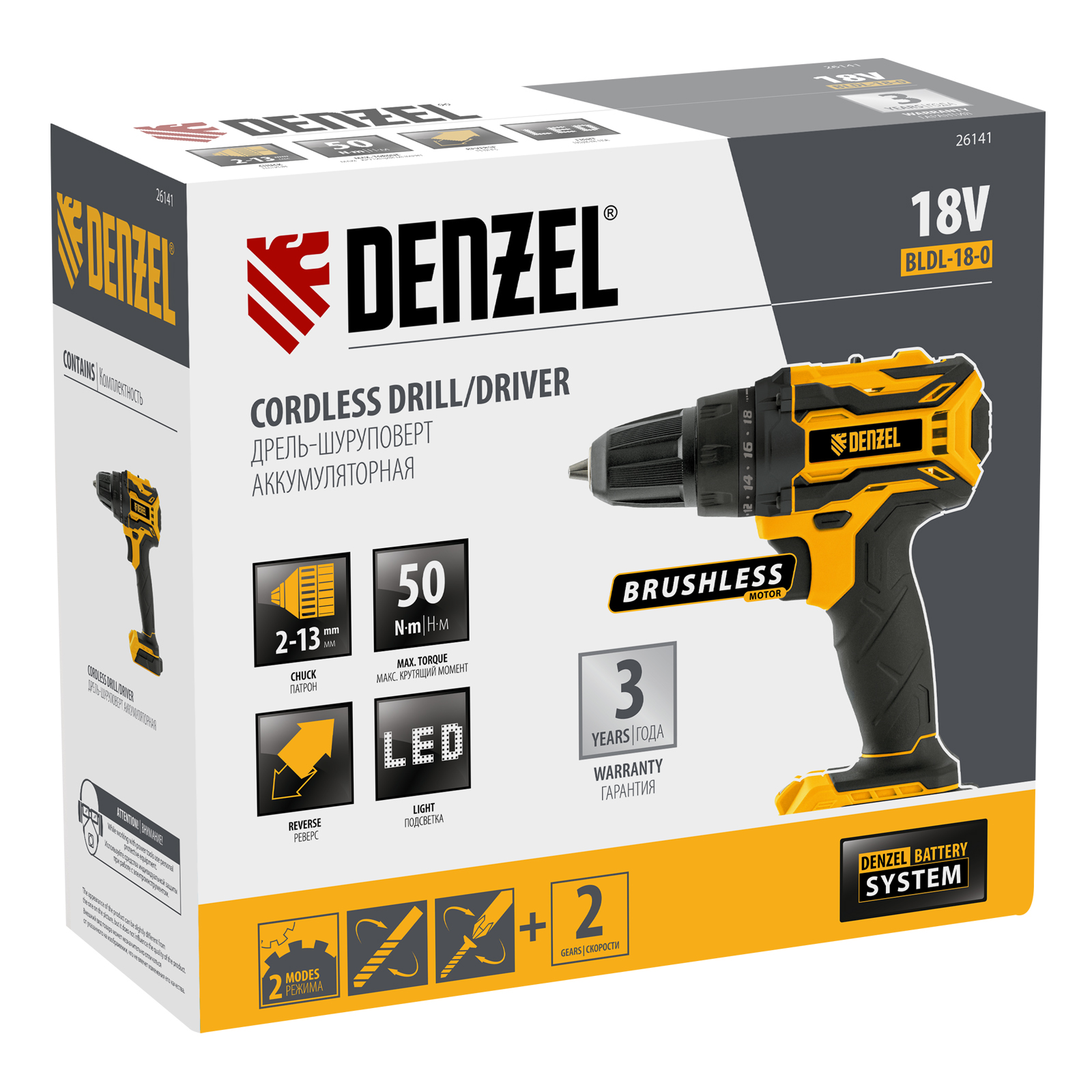 Дрель-шуруповерт аккумуляторная, бесщет. BLDL-18-0 Li-Ion, 18 В Denzel в Екатеринбурге