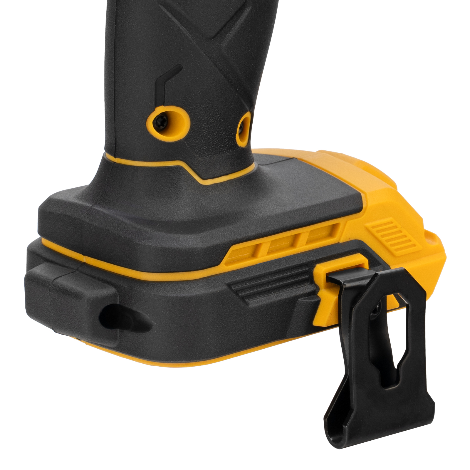 Инструмент работает от аккумулятора Li-Ion с рабочим напряжением 18 В. Аккумулятор и зарядное устройство приобретаются отдельно.