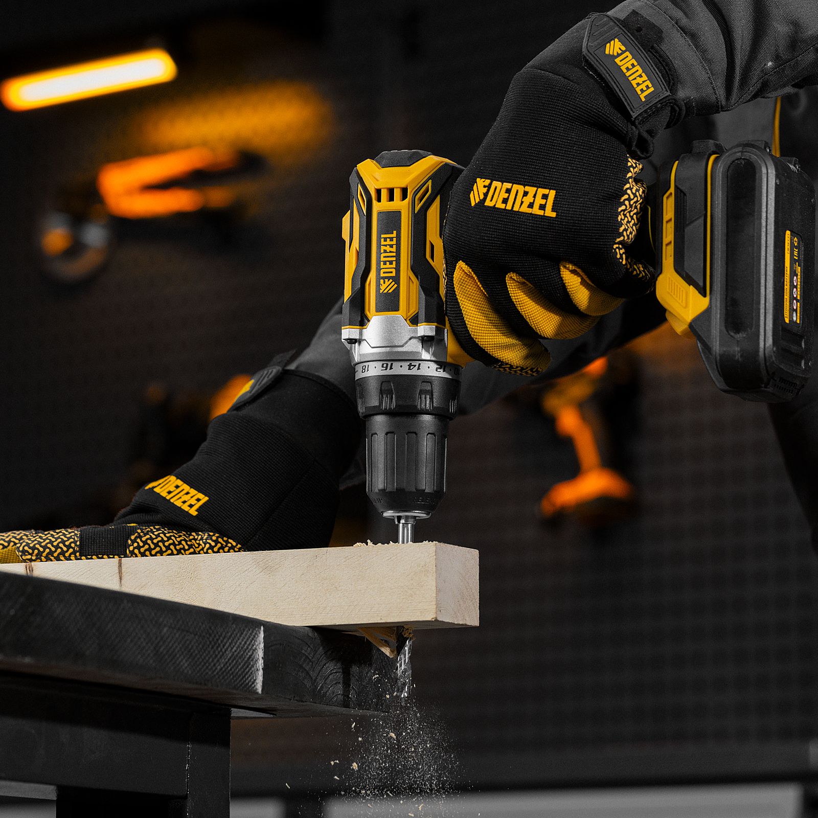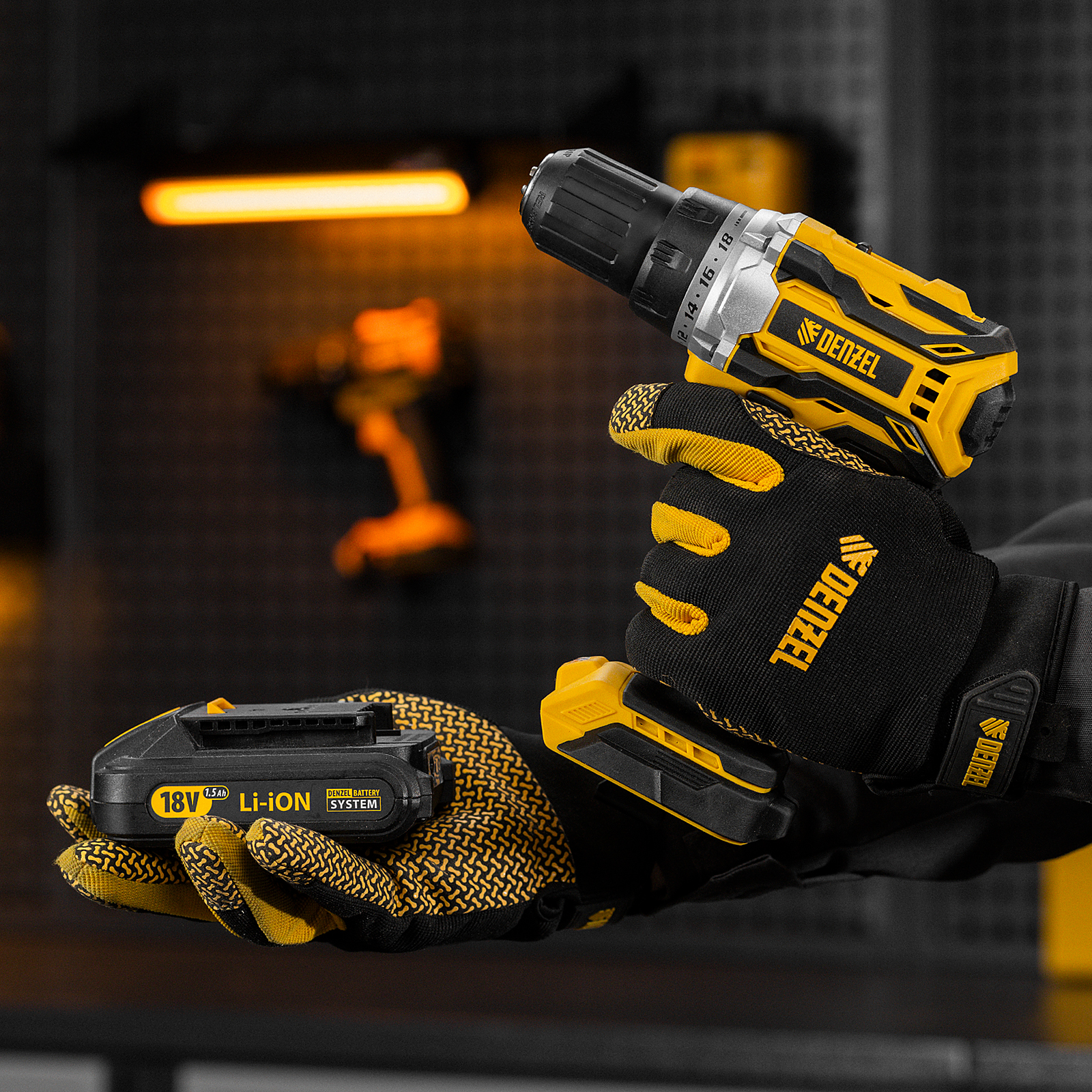- Универсальность — инструмент совместим с любым Li-Ion аккумулятором и зарядным устройством единой платформы Denzel Battery System 18V.