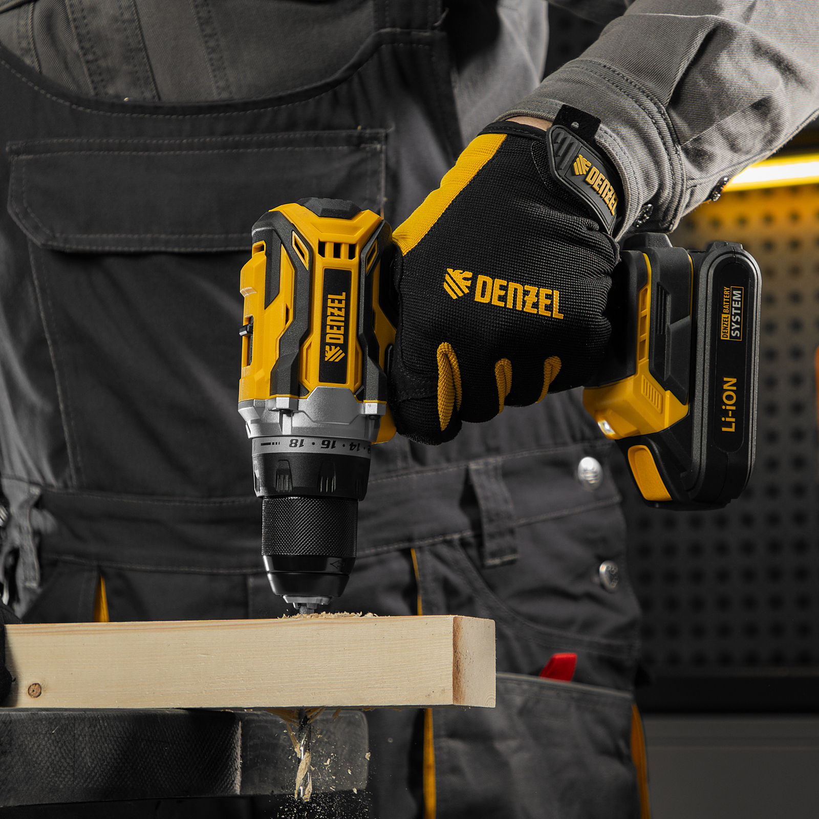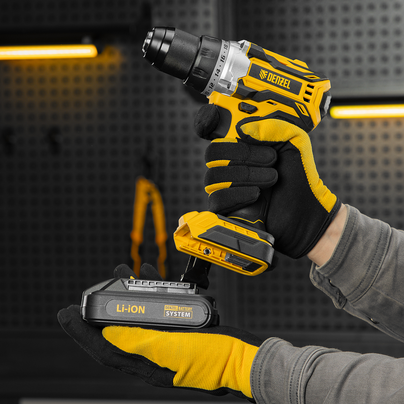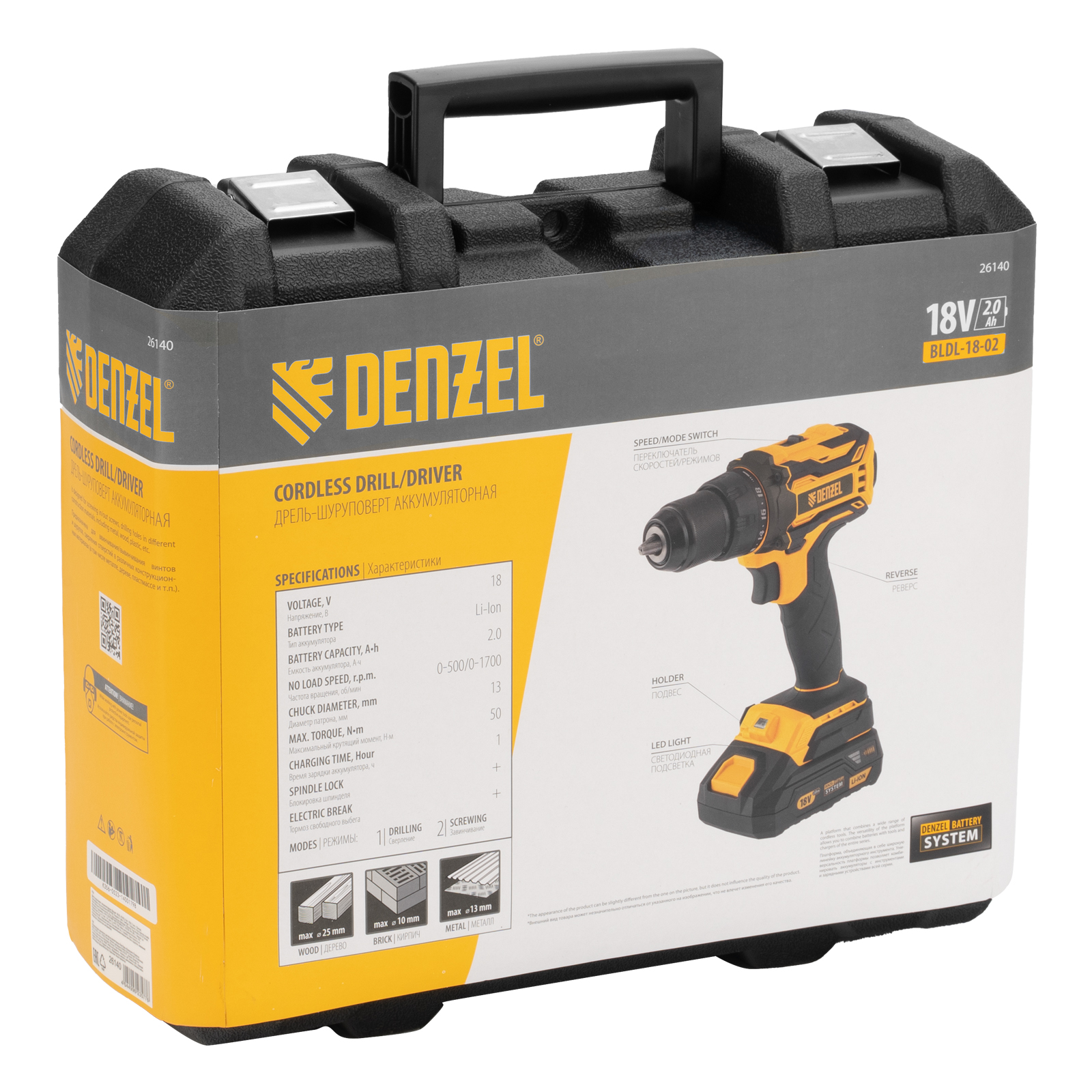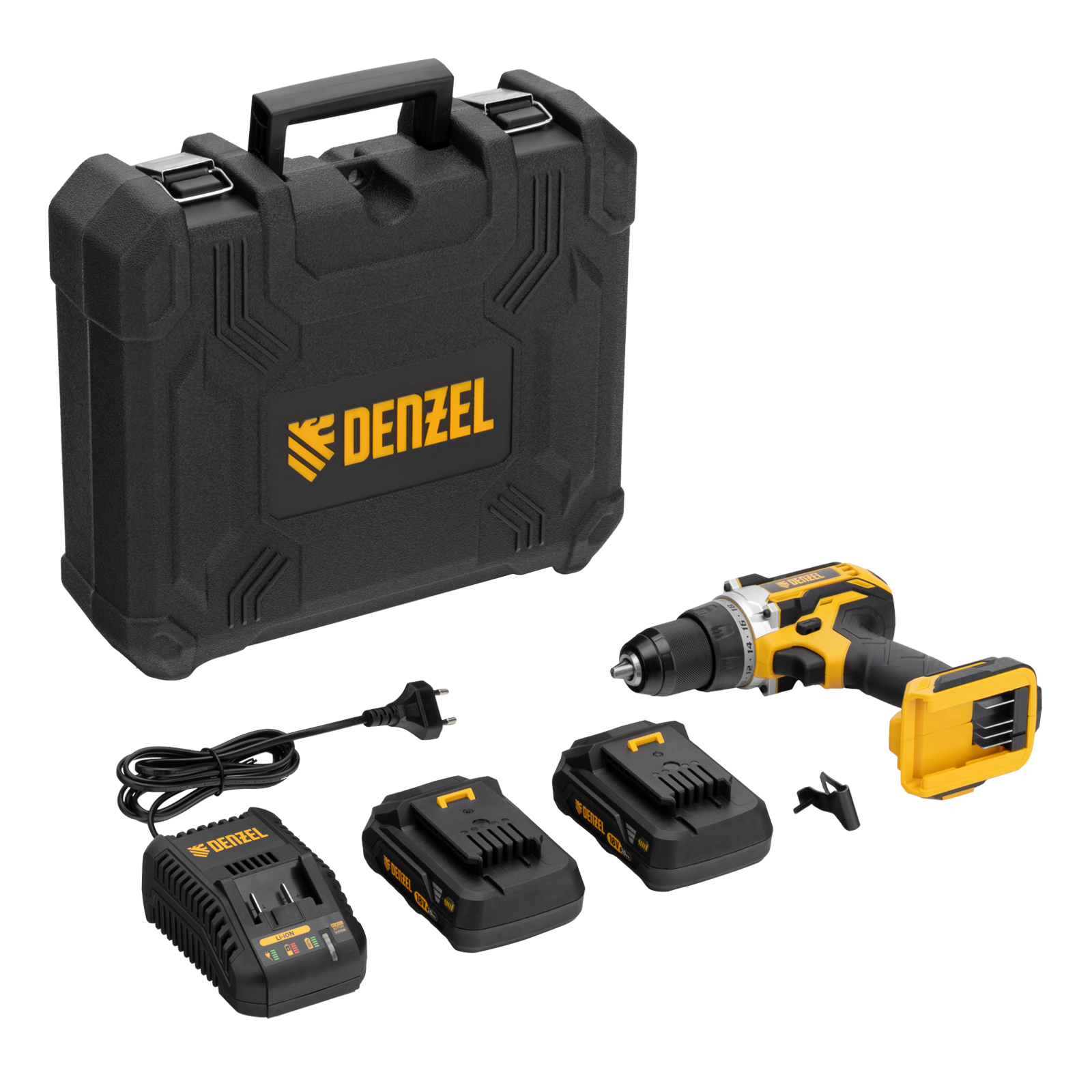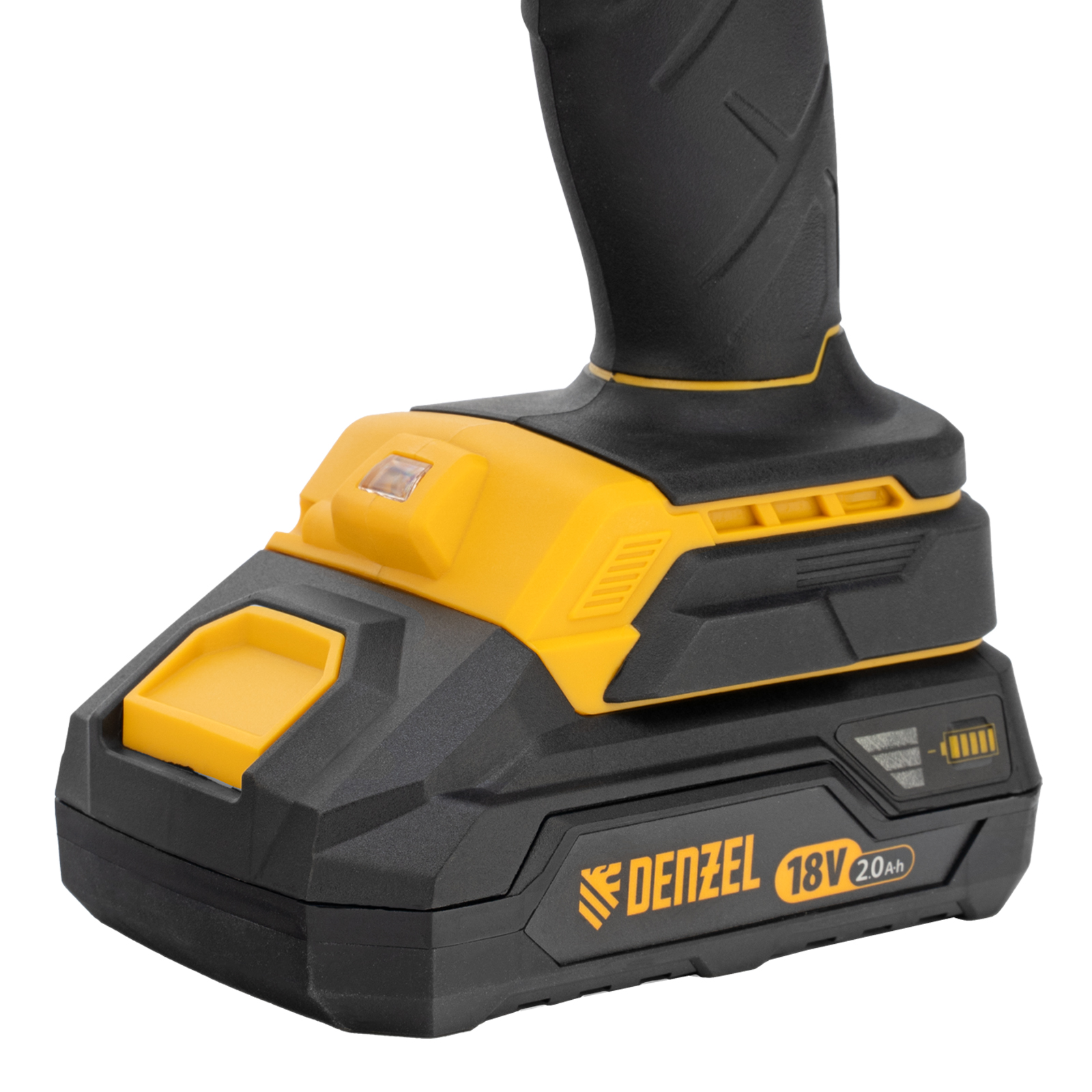 - Универсальность — аккумуляторы совместимы со всеми инструментами модельного ряда единой платформы Denzel Battery System 18V.