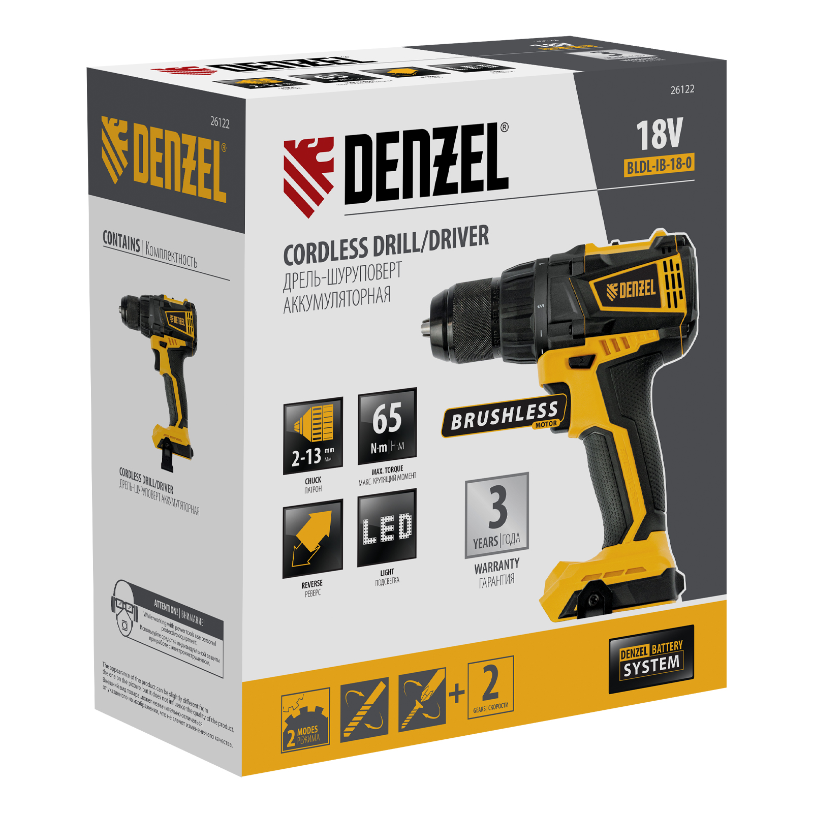 Дрель-шуруповерт аккумуляторная, бесщет. BLDL-IB-18-0, Li-Ion, 18 В Denzel в Екатеринбурге