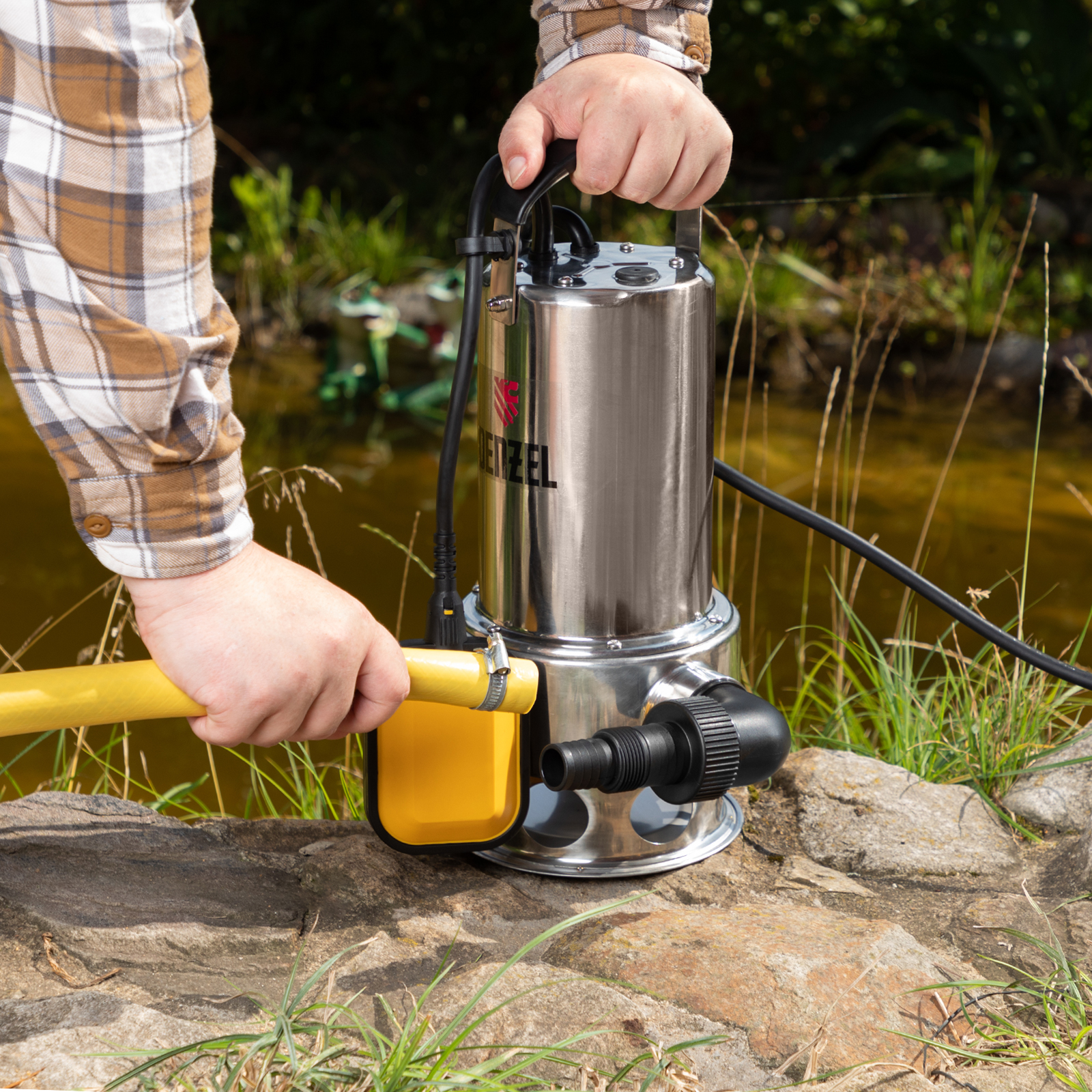 - Длина кабеля 10 м — устройство можно погружать на большую глубину и подключать к розетке без удлинителя.