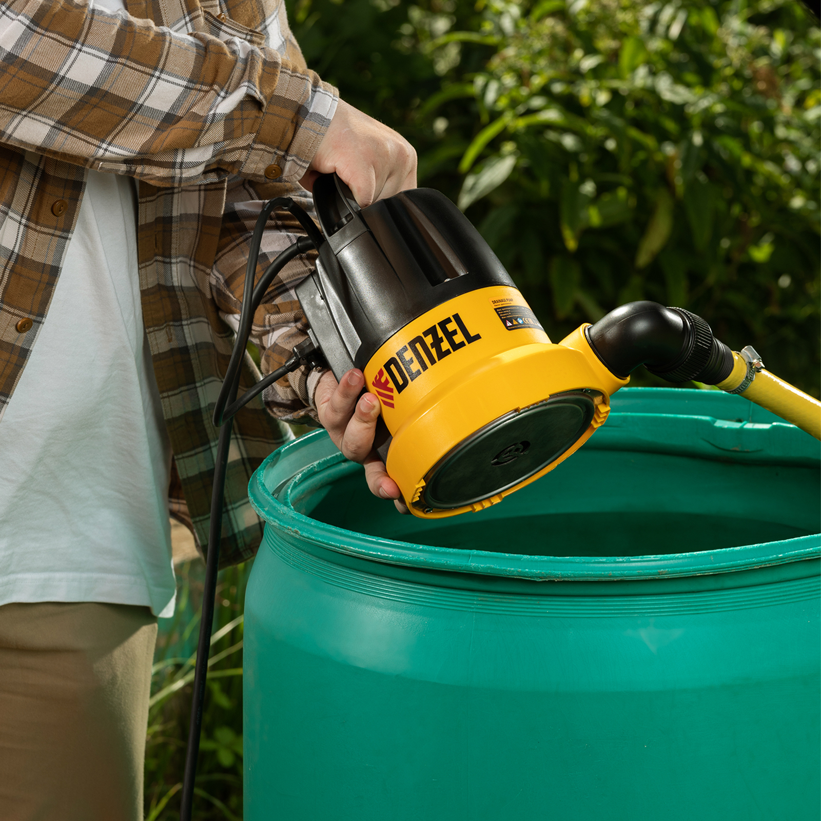 Дренажный насос Denzel DP500E 97218 мощностью 500 Вт обеспечивает высоту подъема 7 м и производительность 7000 л/ч. Используется для подачи чистой воды из колодцев и организации систем полива.