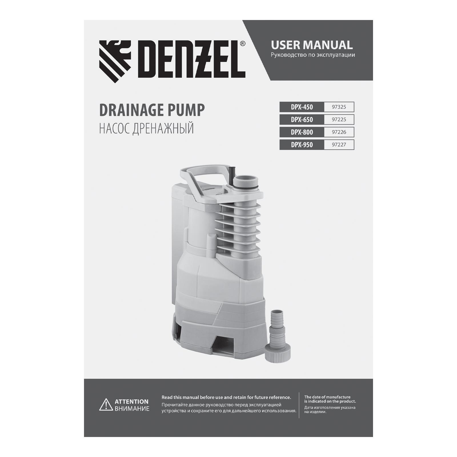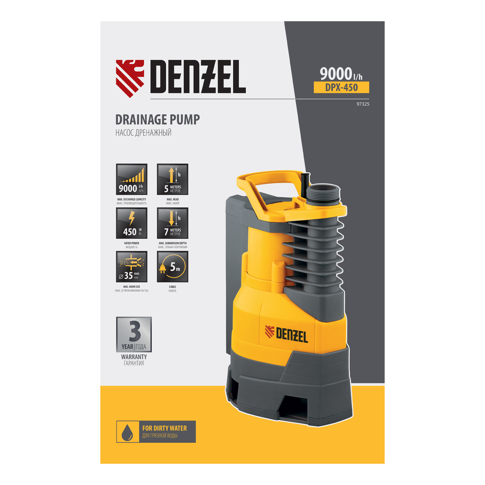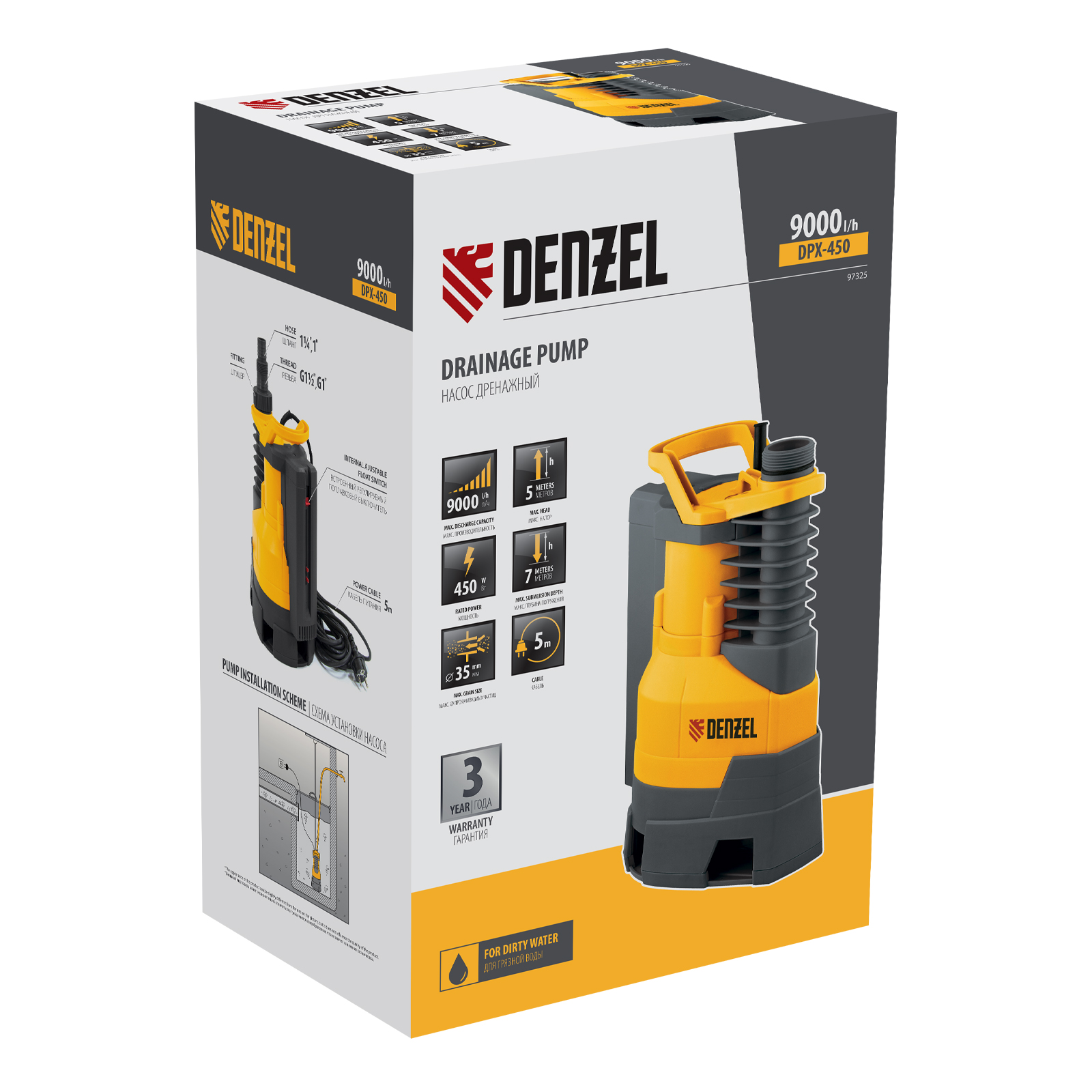 Дренажный насос DPХ450, 450 Вт, подъем 5 м, 9000 л/ч Denzel в Екатеринбурге