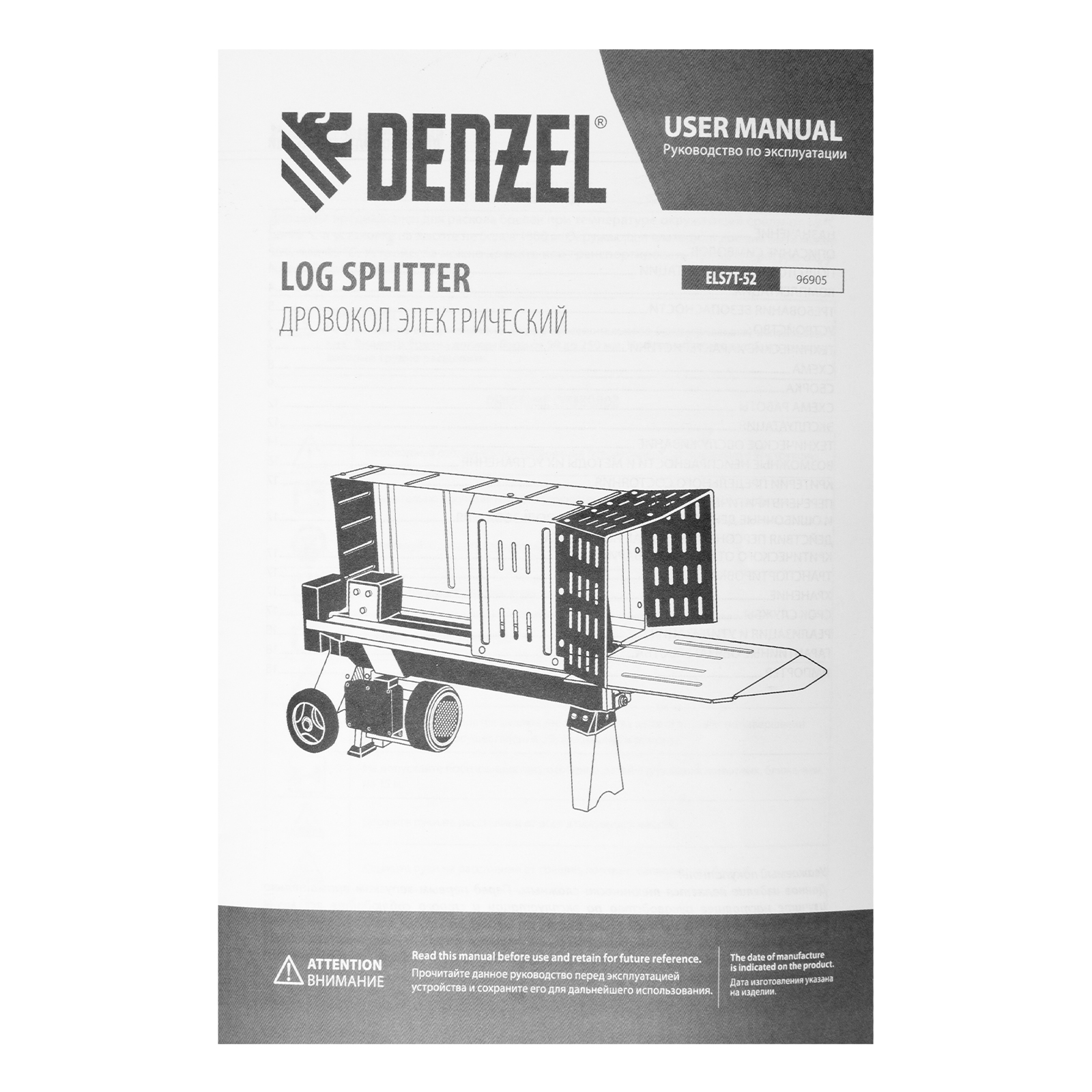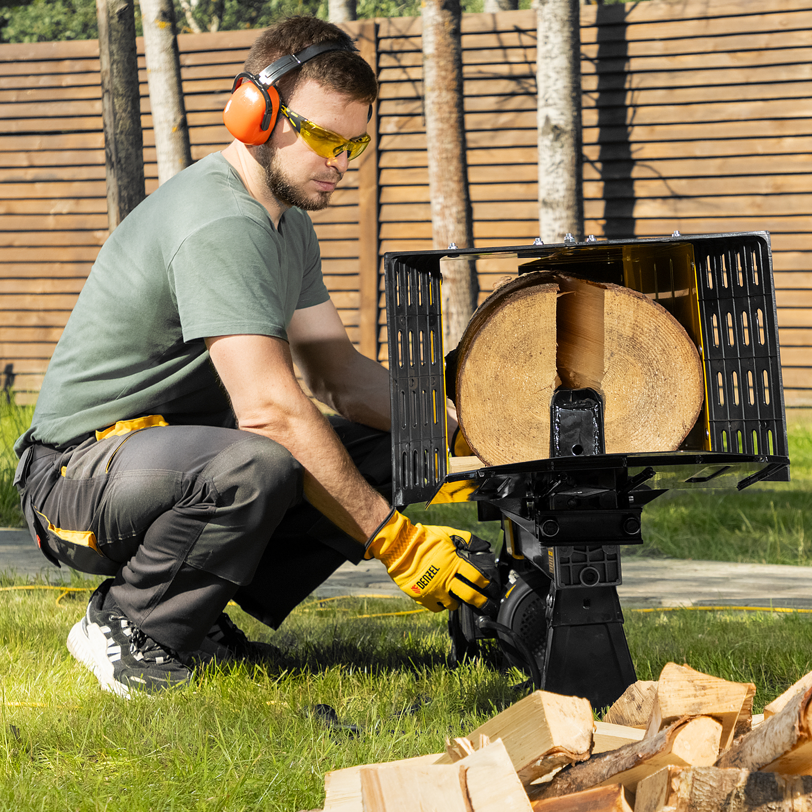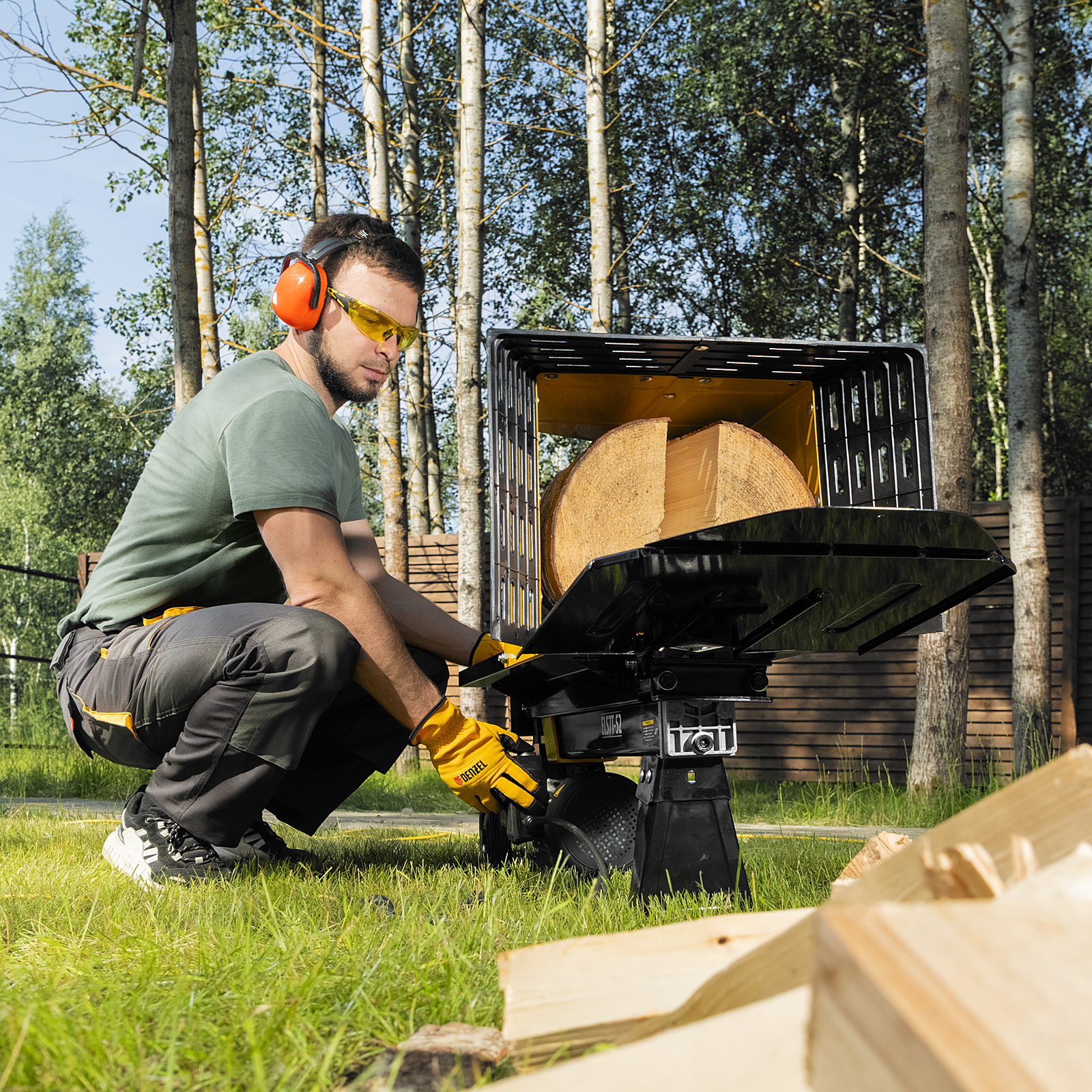Дровокол электрический ELS7T-52, 2300 Вт, сила раскола 7т, макс. размеры полена D250 x 520 мм Denzel в Екатеринбурге