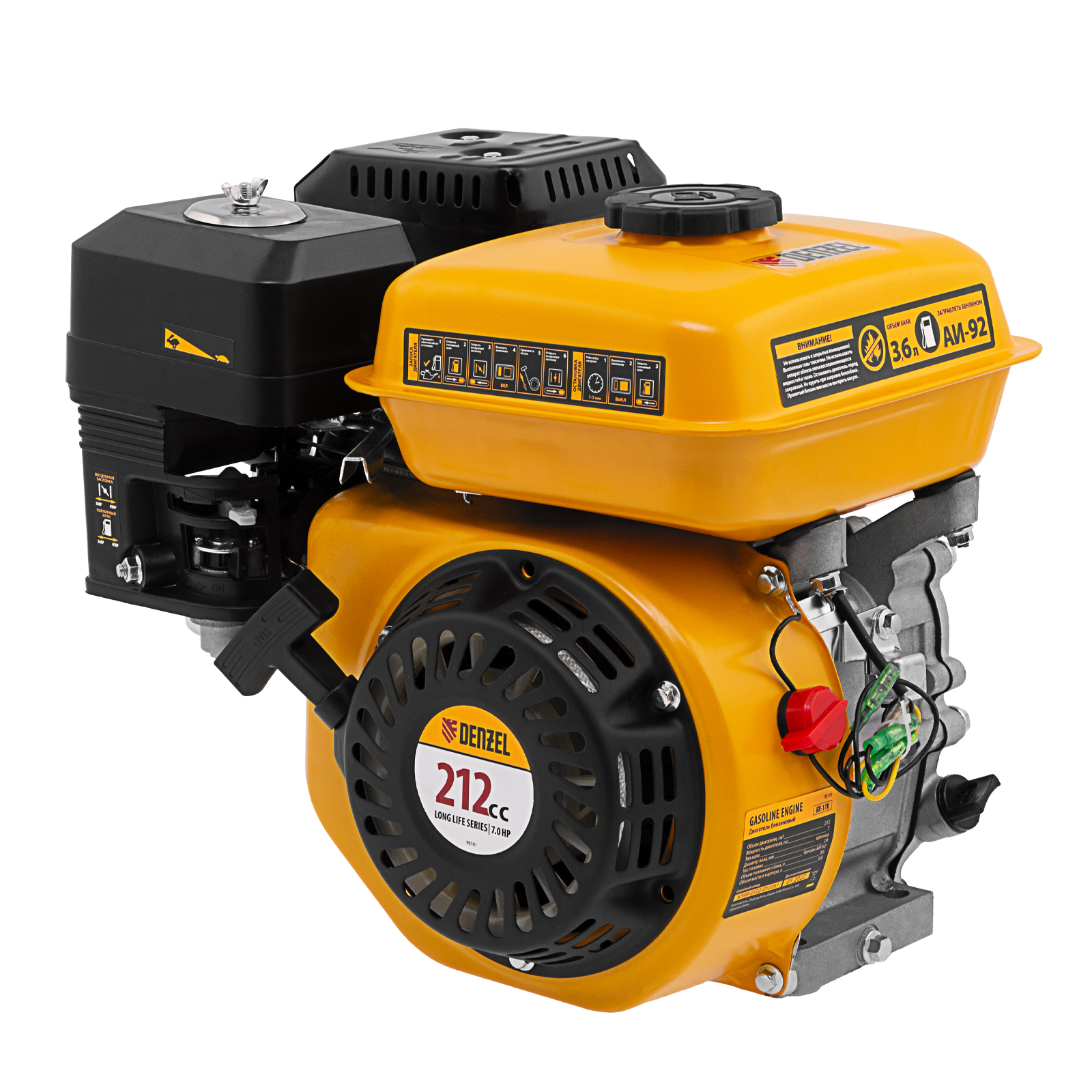 Двигатель бензиновый RX-17K, 7 л.с., 212 см3, горизонтальный вал шпонка 19 мм Denzel