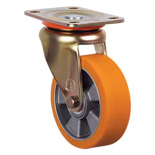 Большегрузное колесо EMES ED01 ABP 100 — это прочное долговечное изделие, для производства которого используются качественные износостойкие материалы. Обод выполнен из алюминия, защищенного от коррозионных изменений. Для изготовления шинки был выбран полиуретан — благодаря этому колесо не боится механических повреждений, не оставляет следов на поверхностях и хорошо поглощает вибрации. Широкий обод равномерно распределяет даже экстремальные нагрузки.