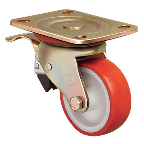 Большегрузное колесо EMES ED01 ZBP 80 F имеет поворотный кронштейн с ножным тормозом. Полиуретановая шинка устойчива к истиранию и механическим повреждениям. Максимальная грузоподъемность колесной опоры составляет 180 кг, общая высота — 115 мм. Обод изготовлен из нейлона. Модель подходит для установки на платформенные тележки, передвижное складское и строительное оборудование.