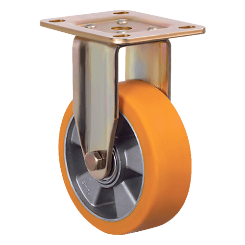 Неповоротное большегрузное колесо EMES ED02 ABP 150 подходит для установки на передвижное строительное и складское оборудование, платформенные тележки. Контактный слой из полиуретана устойчив к истиранию и механическим повреждениям. Алюминиевый обод обеспечивает эффективное распределение нагрузки. Максимальная грузоподъемность колеса составляет 450 кг. Общая высота — 206 мм.