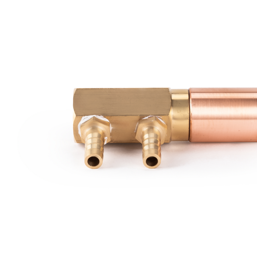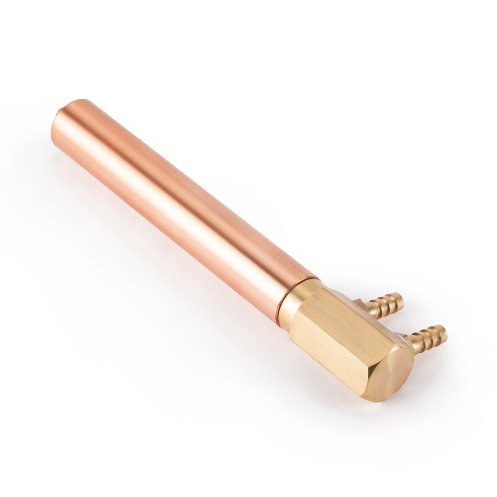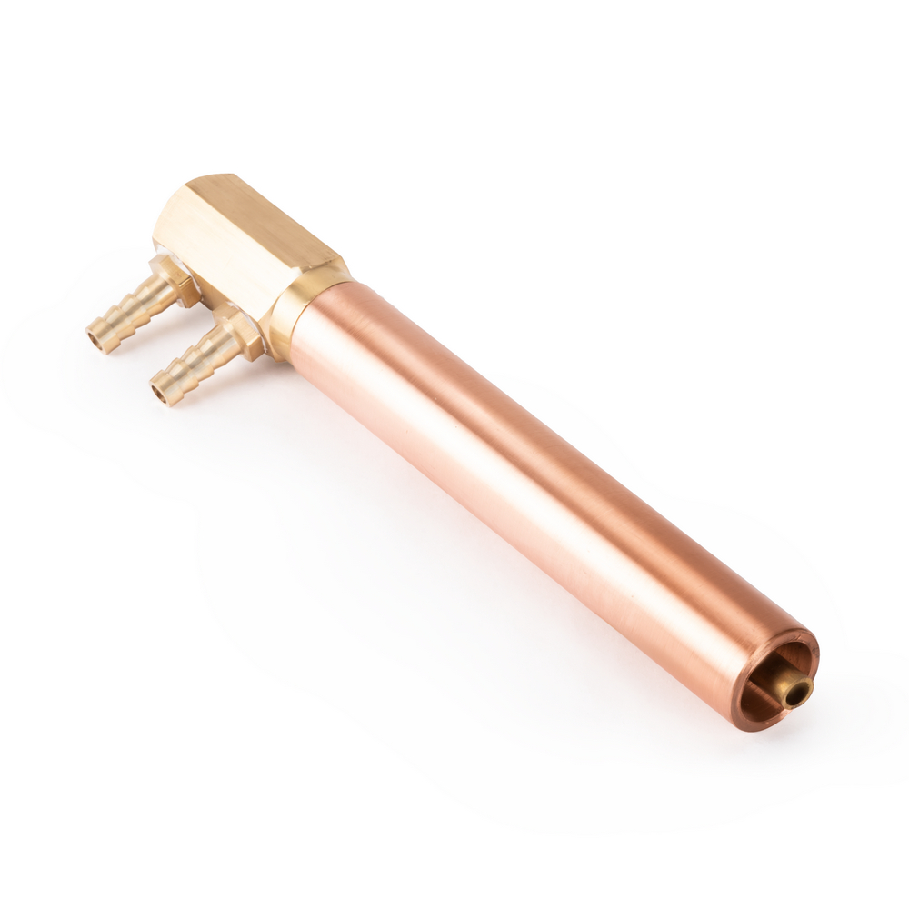 Электрододержатель предназначен для машин контактной сварки МТ-25/40/63, произведённых после 2018 года. Служит для передачи сварочного тока от плеча контактной машины на электрод, а также для охлаждения контактного электрода. Электрододержатель представляет собой трубку внешним диаметром 25 мм, с одной стороны внутренний конус для посадки электрода, с другой стороны резьба для подключения подвода охлаждения с двумя штуцерами. Состоит из медного сплава. Длина 150 мм.