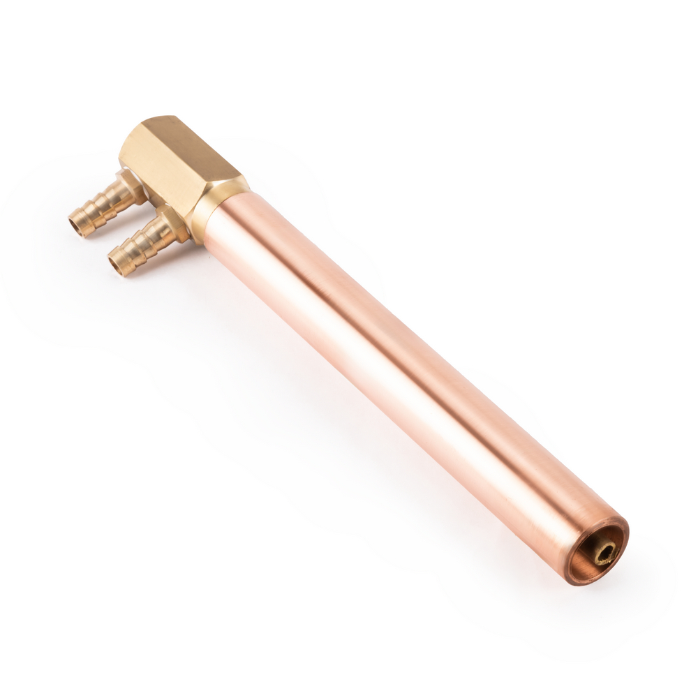 Электрододержатель предназначен для машин контактной сварки МТ-80/100/150, произведённых после 2018 года. Служит для передачи сварочного тока от плеча контактной машины на электрод, а также для охлаждения контактного электрода. Электрододержатель представляет собой трубку внешним диаметром 25 мм, с одной стороны внутренний конус для посадки электрода, с другой стороны резьба для подключения подвода охлаждения с двумя штуцерами. Состоит из медного сплава. Длина 190 мм.