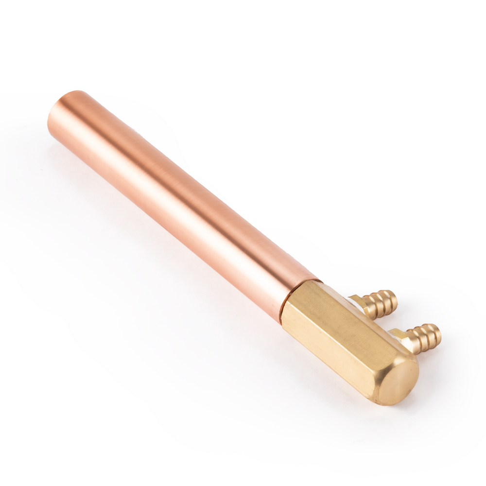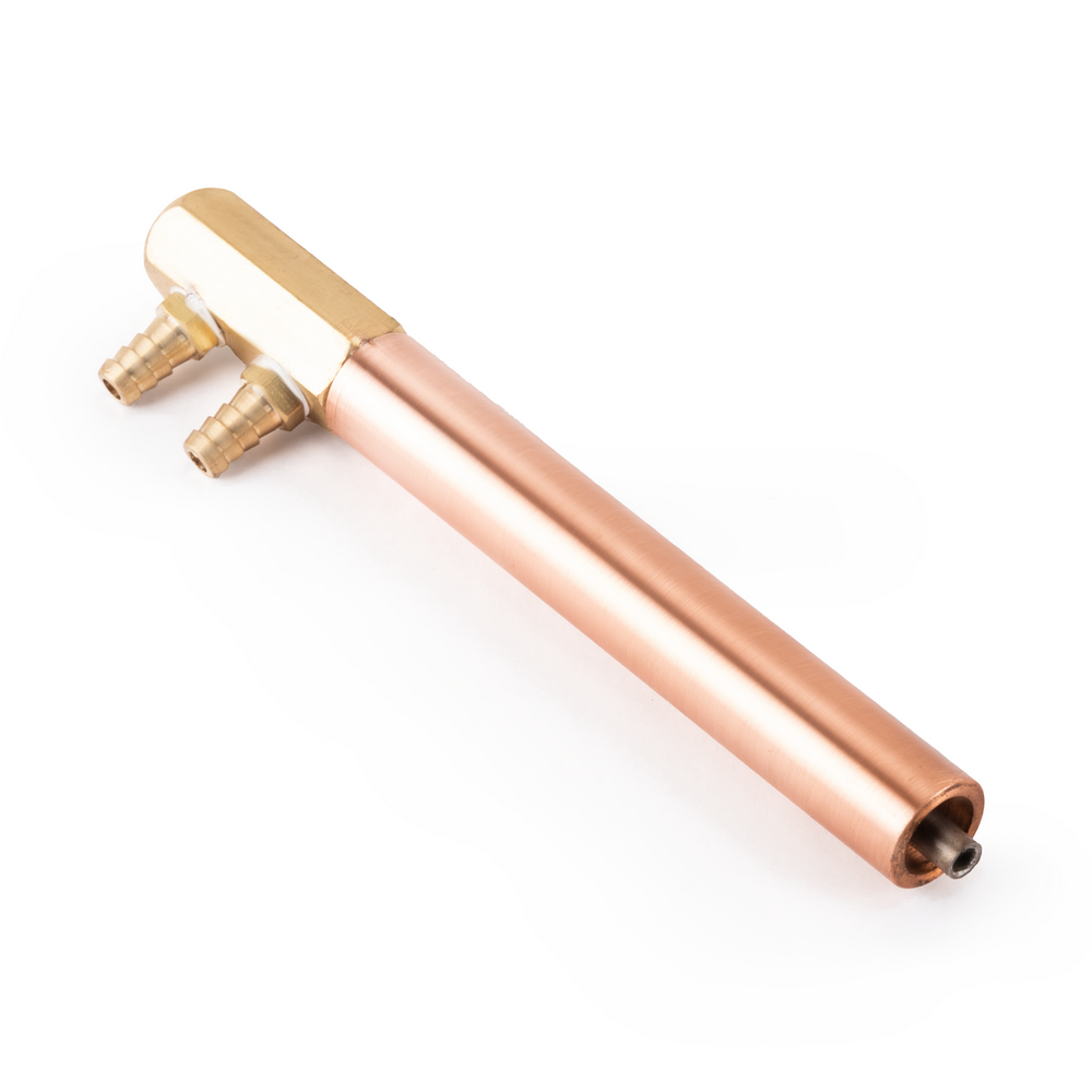 Электрододержатель предназначен для машин контактной сварки МТРА, произведённых после 2018 года. Служит для передачи сварочного тока от плеча контактной машины на электрод, а также для охлаждения контактного электрода. Электрододержатель представляет собой трубку внешним диаметром 18 мм, с одной стороны внутренний конус для посадки электрода, с другой стороны резьба для подключения подвода охлаждения с двумя штуцерами. Состоит из медного сплава. Длина 120 мм.