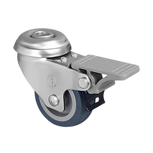 Аппаратное колесо EP04 MKT 50 F предназначено для установки на торговое оборудование, больничную мебель, медицинскую аппаратуру и т. п. Шинка выполнена из серой резины, кронштейн — из оцинкованной стали, а обод — из полипропилена. Колесо имеет диаметр 50 мм, ширину обода 20 мм и работает в температурном диапазоне от -20 до +60 °С. Грузоподъемность модели — 35 кг.