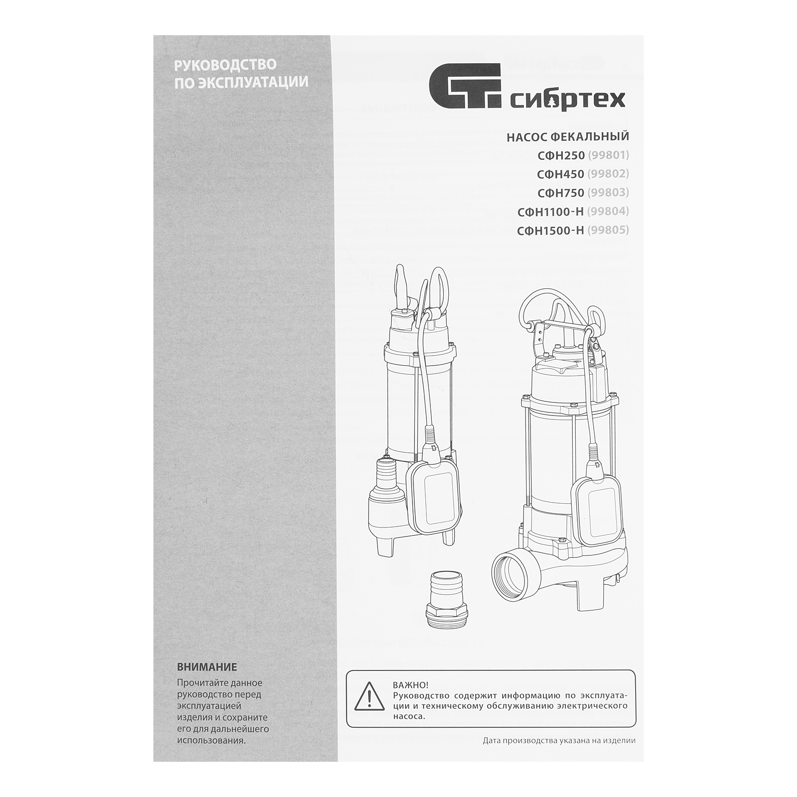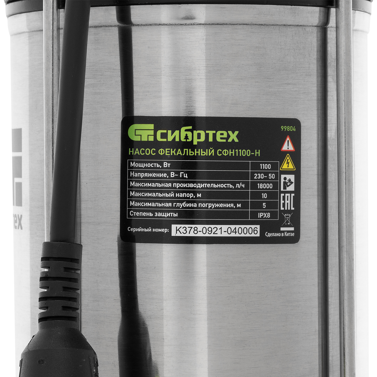 Фекальный насос СФН1100-Н, 1100 Вт, напор 10 м, 18000 л/ч, нож Сибртех в Екатеринбурге