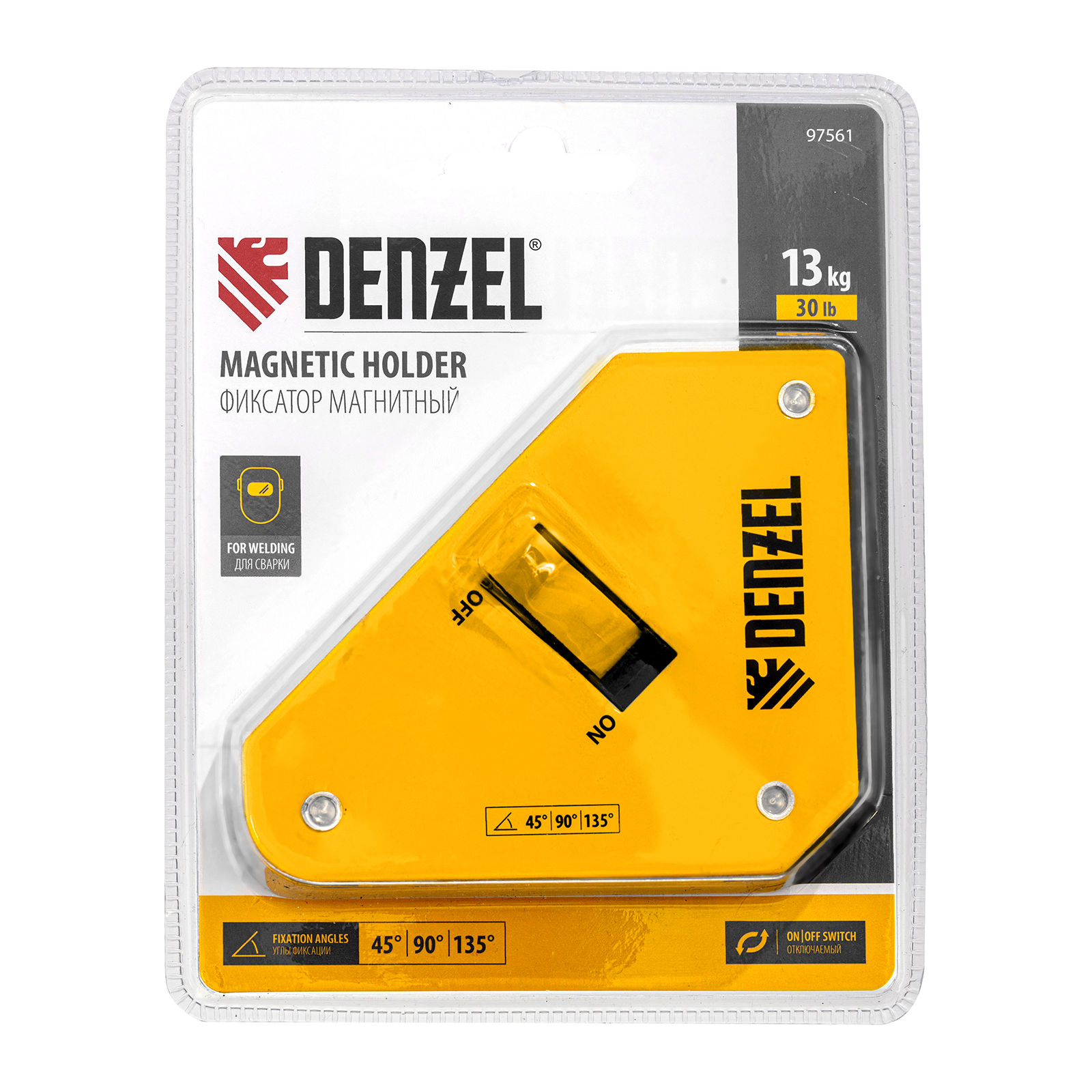 Фиксатор магнитный отключаемый для сварочных работ усилие 30 LB, 45х90 град. Denzel в Екатеринбурге