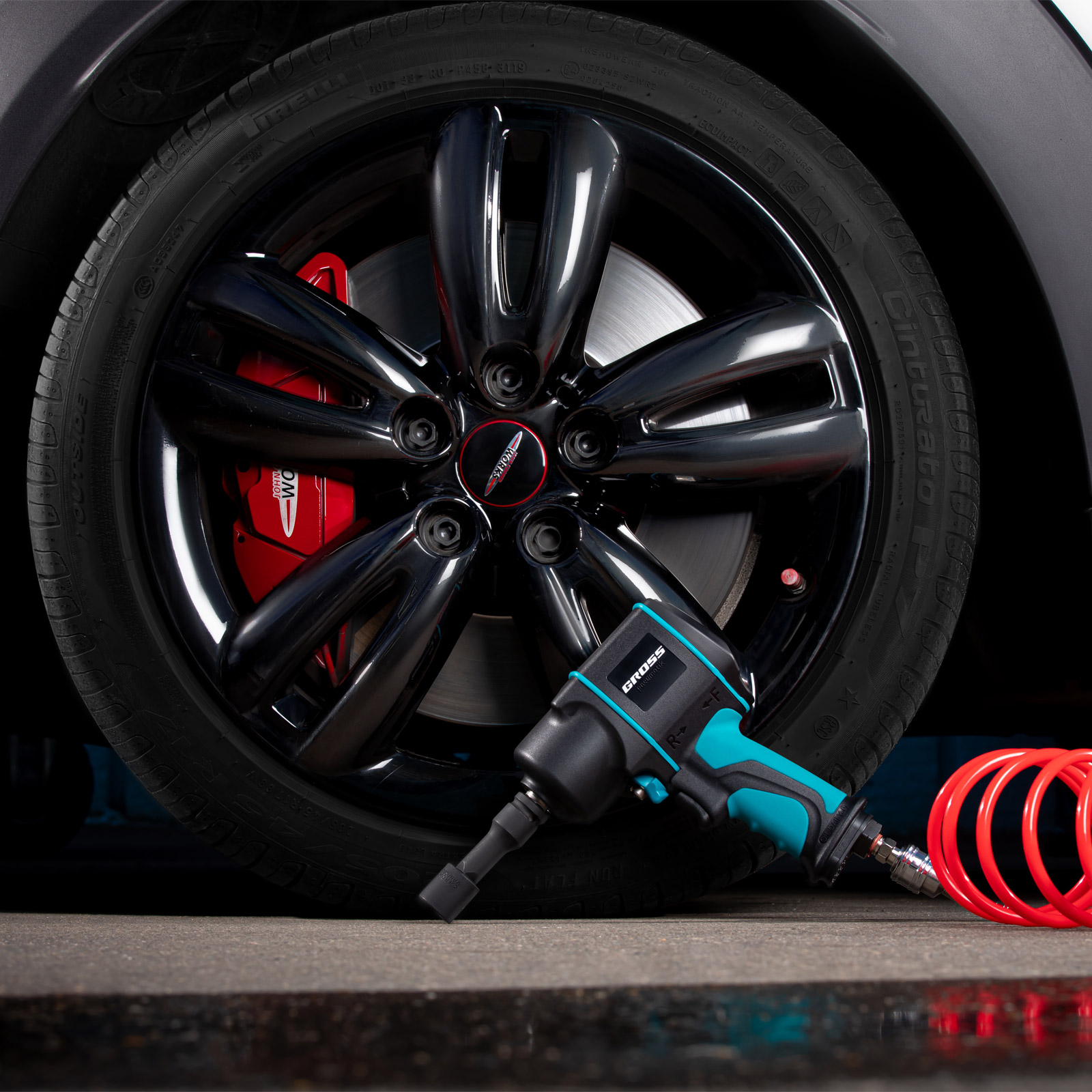 Пневматический ударный гайковерт Gross G1285 57442 из композитного материала, с присоединительным квадратом 1/2″, максимальным крутящим моментом 1220 Нм и частотой вращения шпинделя 6500 об/мин, применяется для монтажа и демонтажа резьбовых соединений, в том числе и высоконагруженных. Его можно использовать с компрессорами средней мощности благодаря небольшому расходу воздуха от 140 л/мин. Гайковерт обладает высокой производительностью и подходит для профессиональных работ на станциях ТО автомобилей и в сборочных цехах.