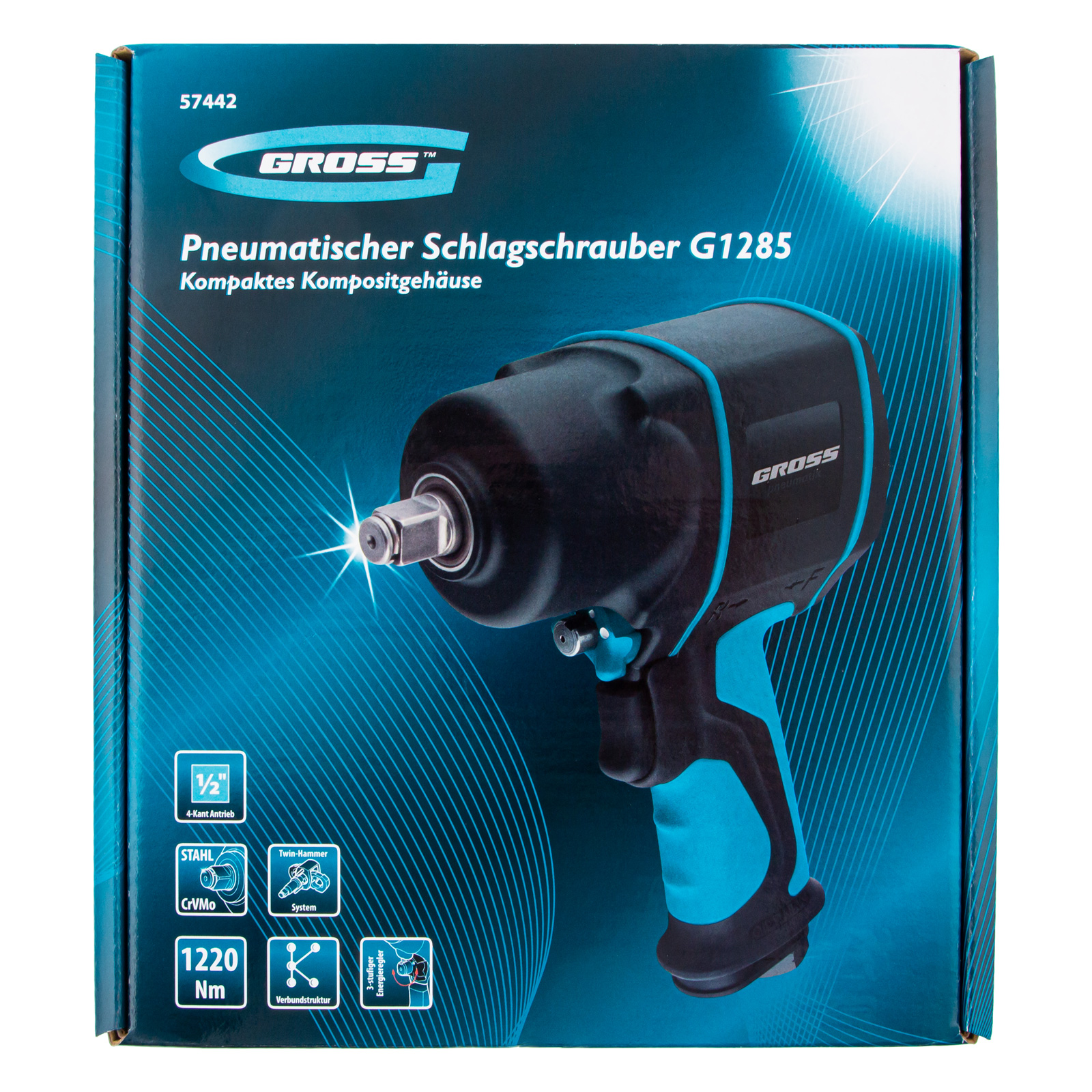 Гайковерт пневматический ударный G1285, 1/2, Twin Hammer, 1220Нм, 6500 об/мин, композитный Gross в Екатеринбурге