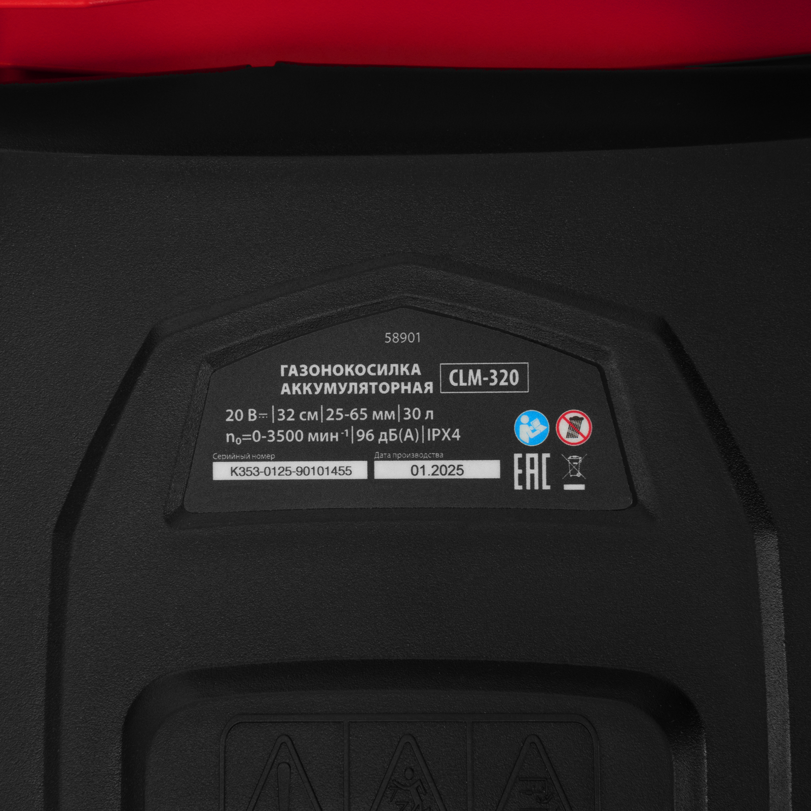 Газонокосилка аккумуляторная бесщеточная CLM-320, 320 мм, травосб. 30 л, Li-Ion, 20 В MTX в Екатеринбурге