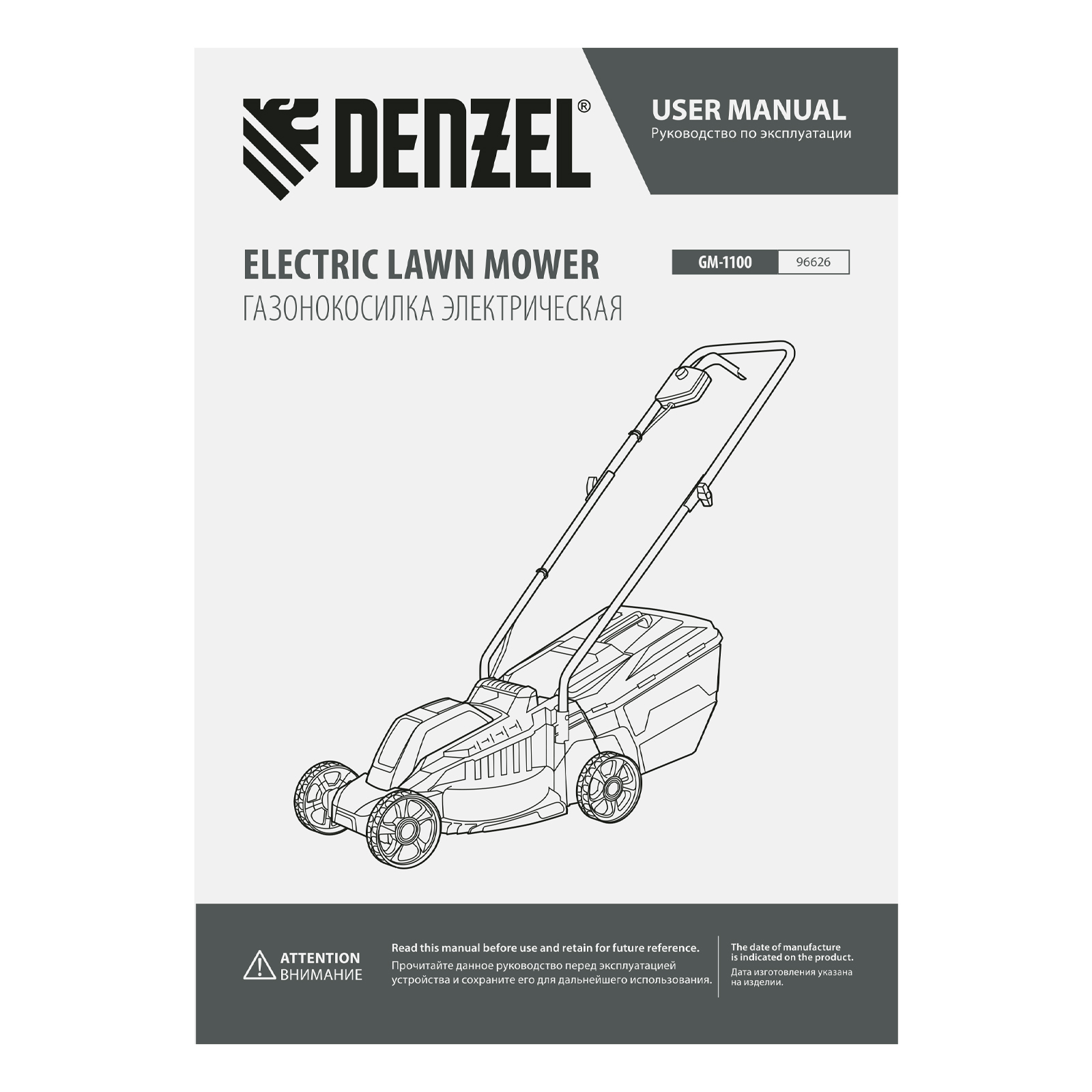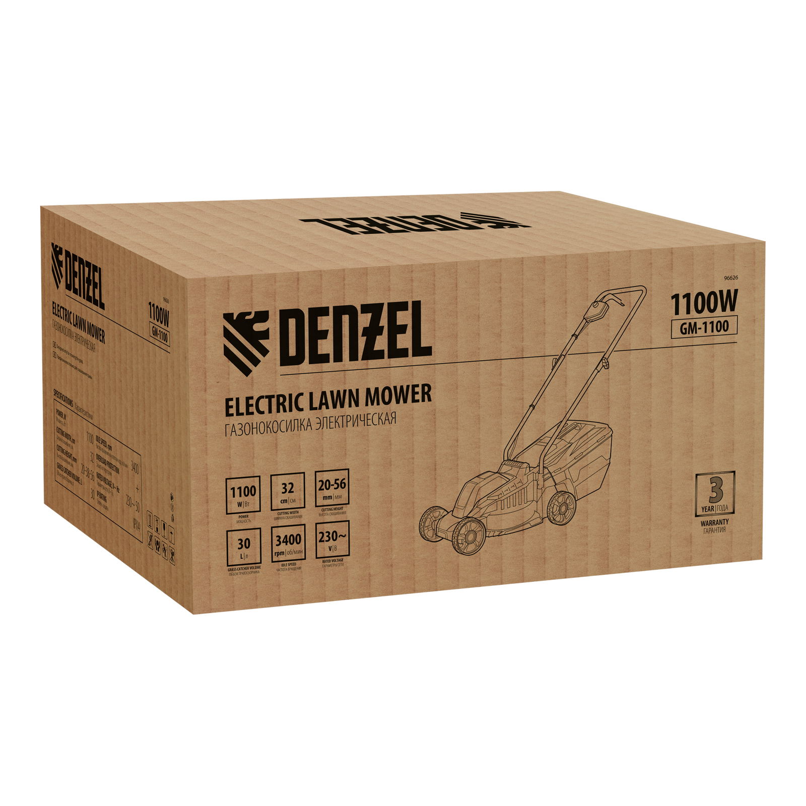 Газонокосилка электрическая GM-1100, 1100 Вт, шир. 32 см, 3 уров., травосб. 30 л Denzel в Екатеринбурге