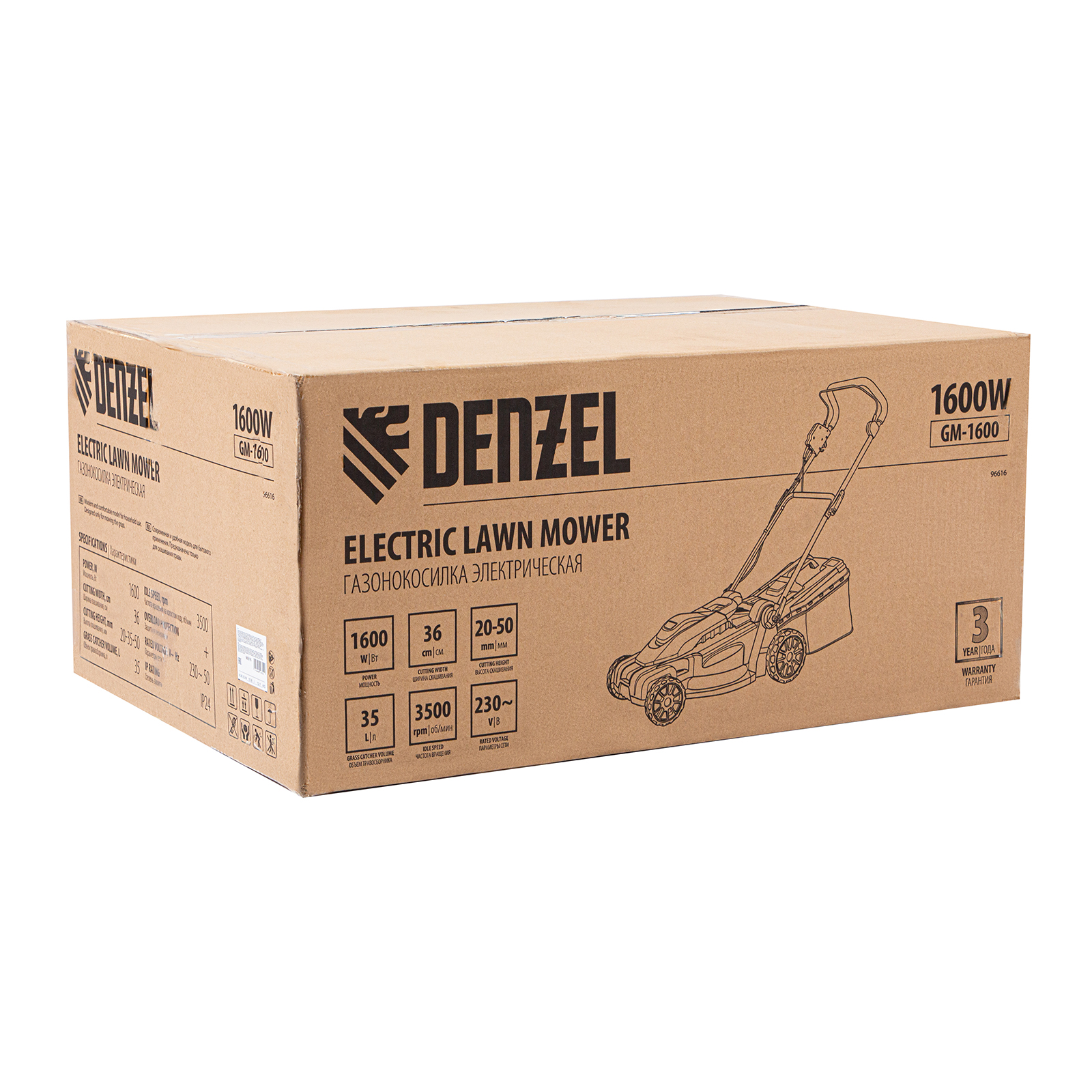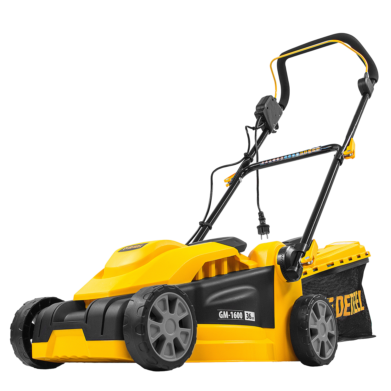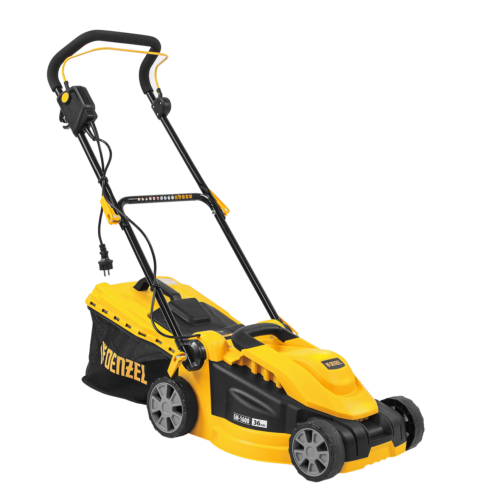 Газонокосилка электрическая GM-1600, 1600 Вт, ширина 36 см, 3 уровя, травосборник 35 л. Denzel в Екатеринбурге