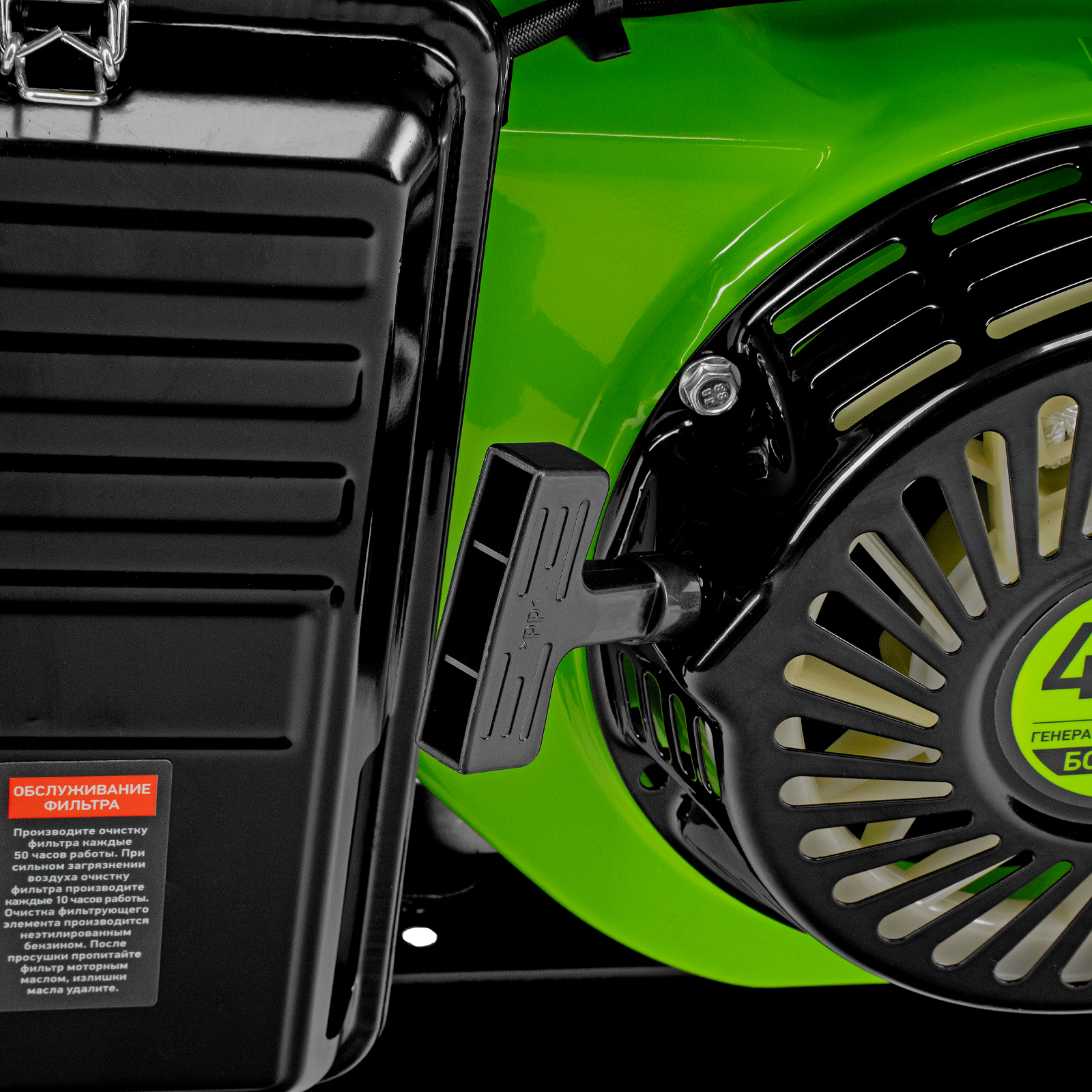 - Ручной старт — генератор легко запустится даже после долгого простоя и в случае разрядки аккумулятора.