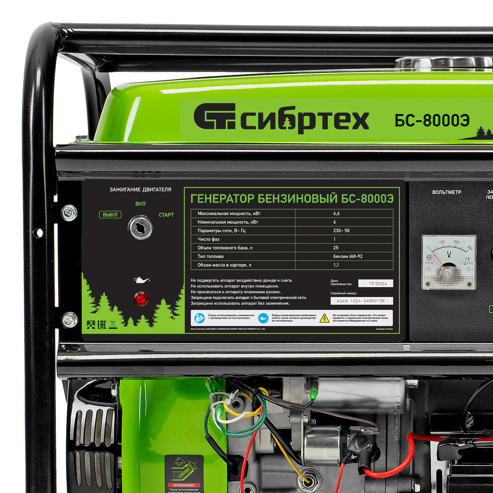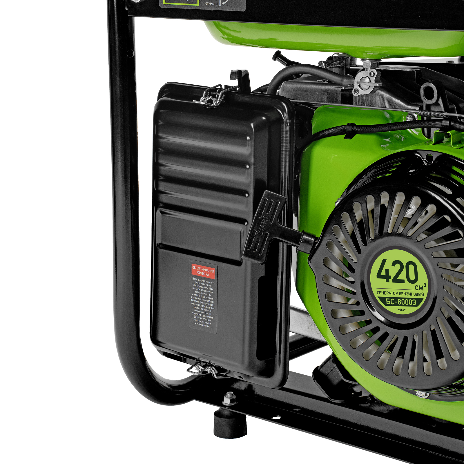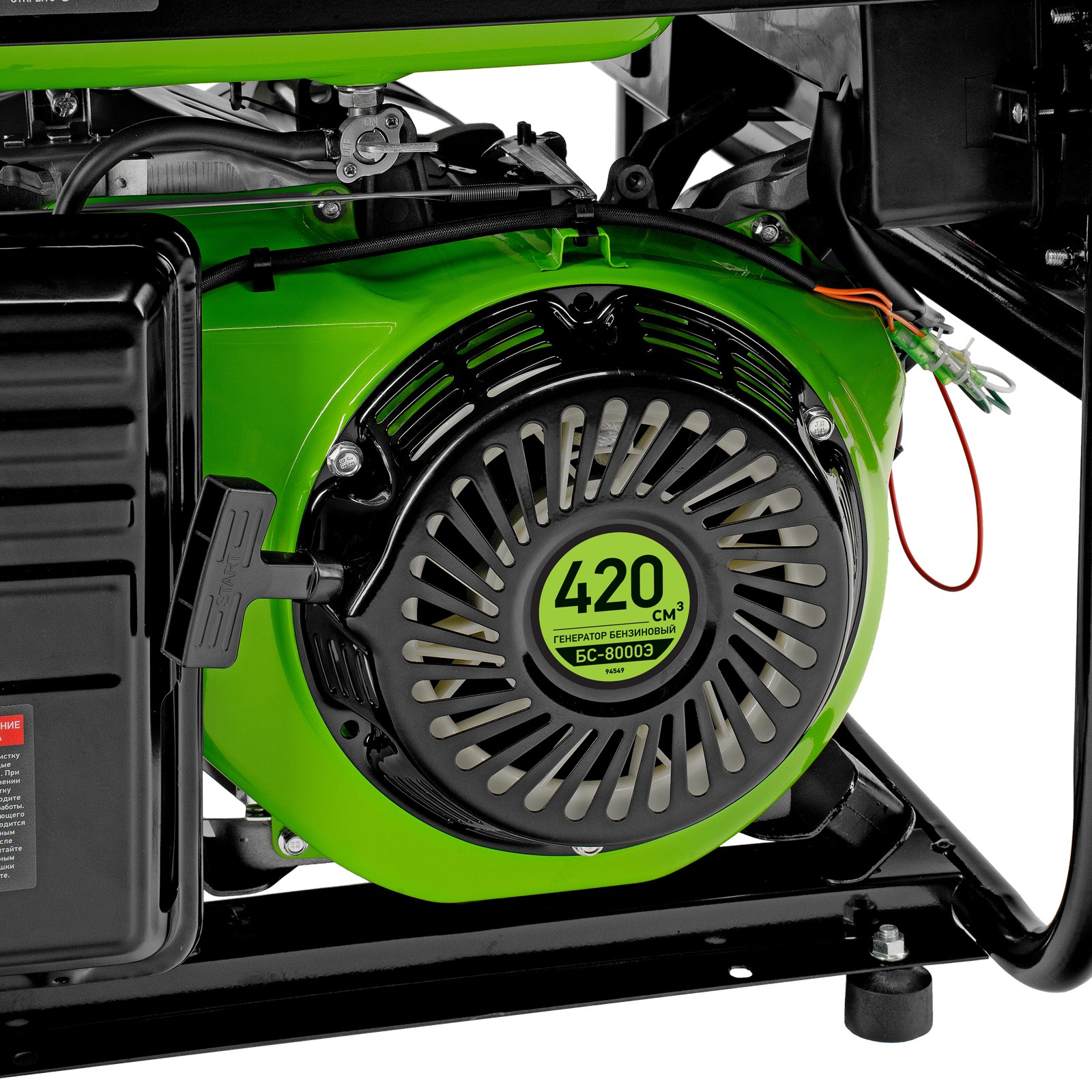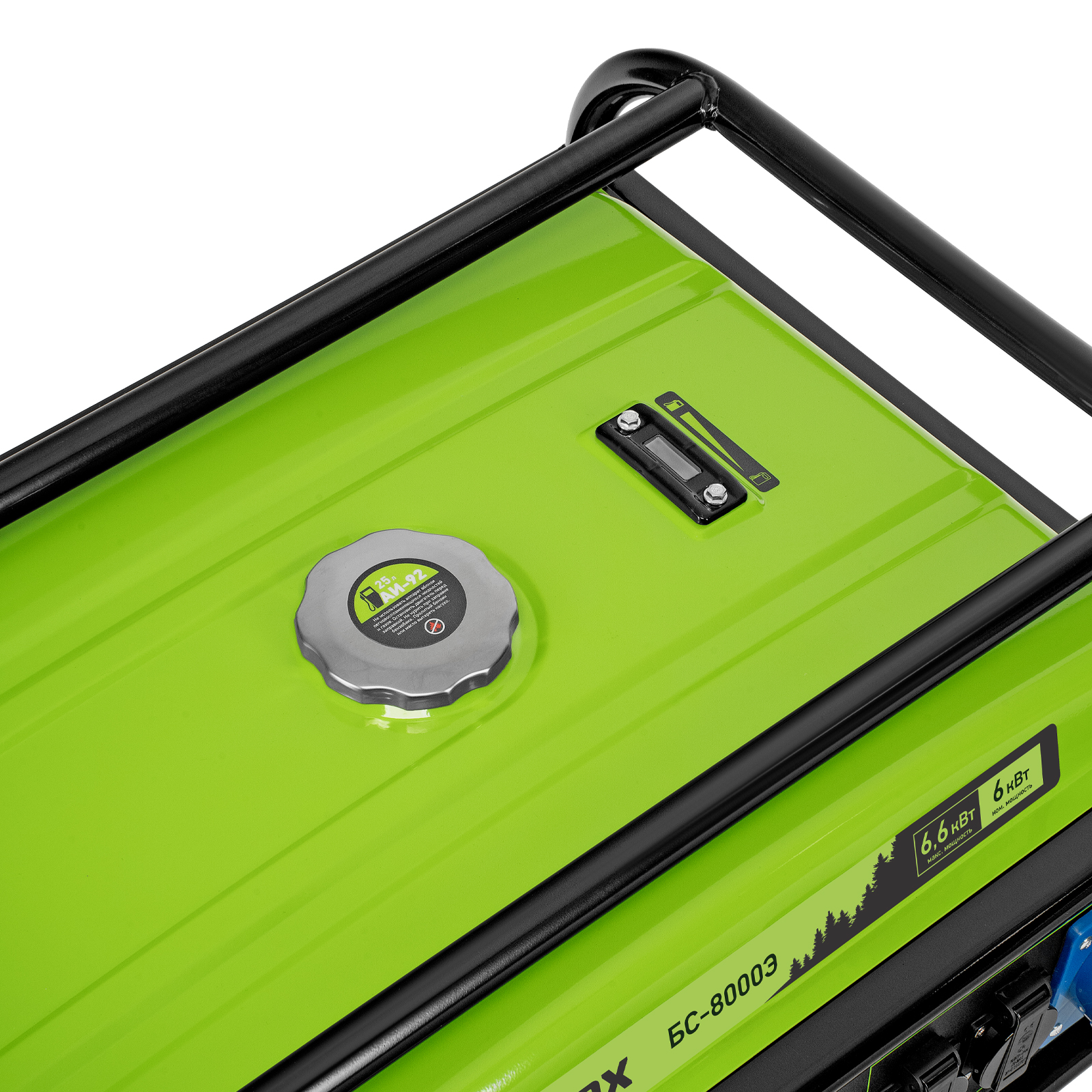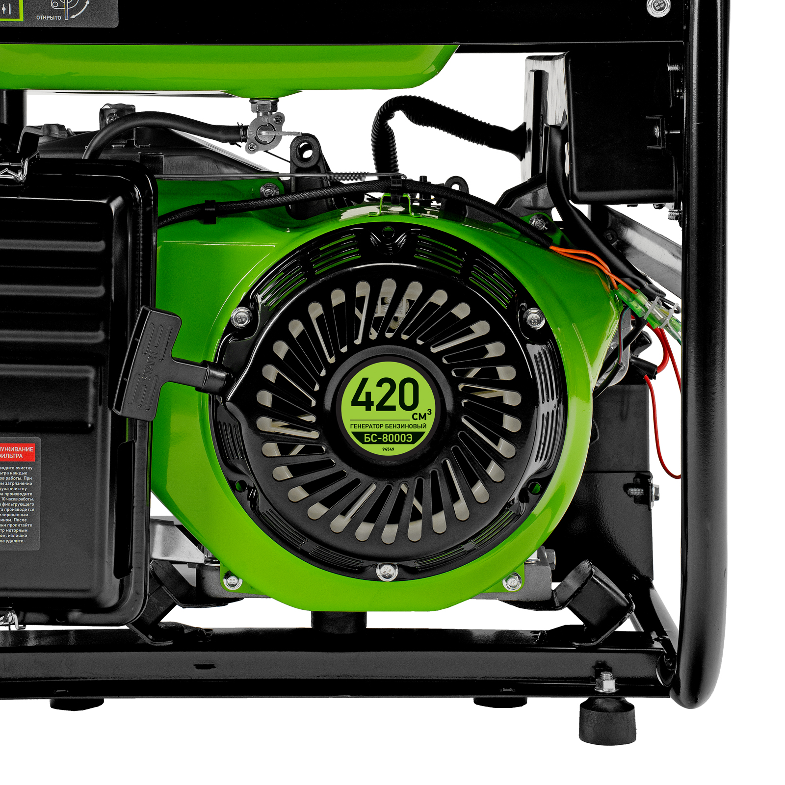 Бензиновый генератор Сибртех БС-8000Э 94549 мощностью 6,6 кВт, с 4-тактным двигателем, электростартером и баком объемом 25 л, выдает напряжение 230 В и является самым производительным в линейке. Подойдет для дачи, строительной площадки, мастерской, гаража или магазина. Благодаря мощности 6,6 кВт и наличию силовой розетки способен обеспечить бесперебойную работу нескольких потребителей одновременно, например, электрической плиты, холодильника, 5 ламп накаливания. Электростартер облегчает запуск — для начала работы достаточно просто повернуть ключ.