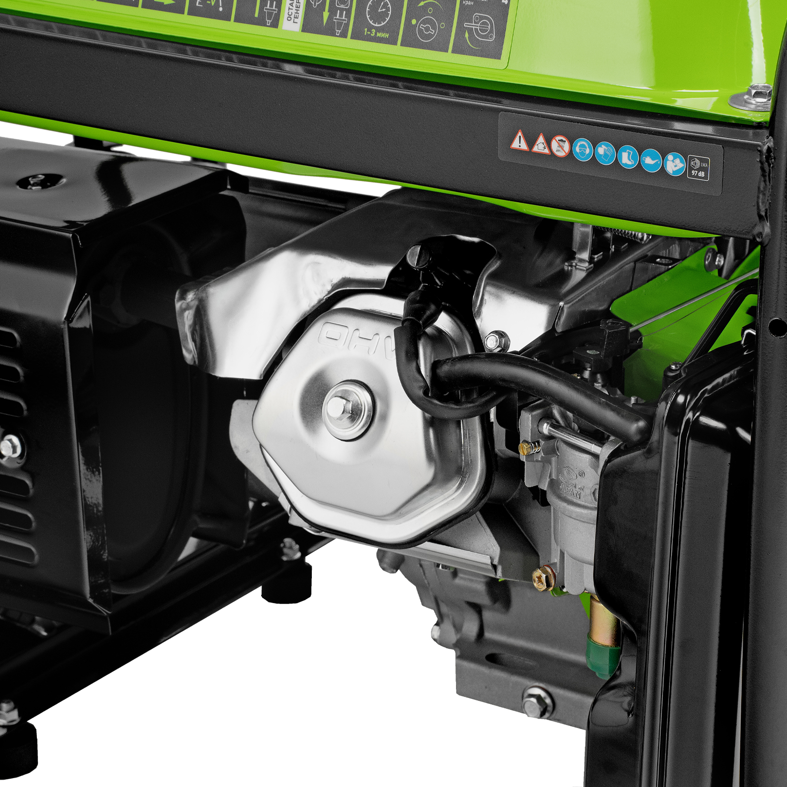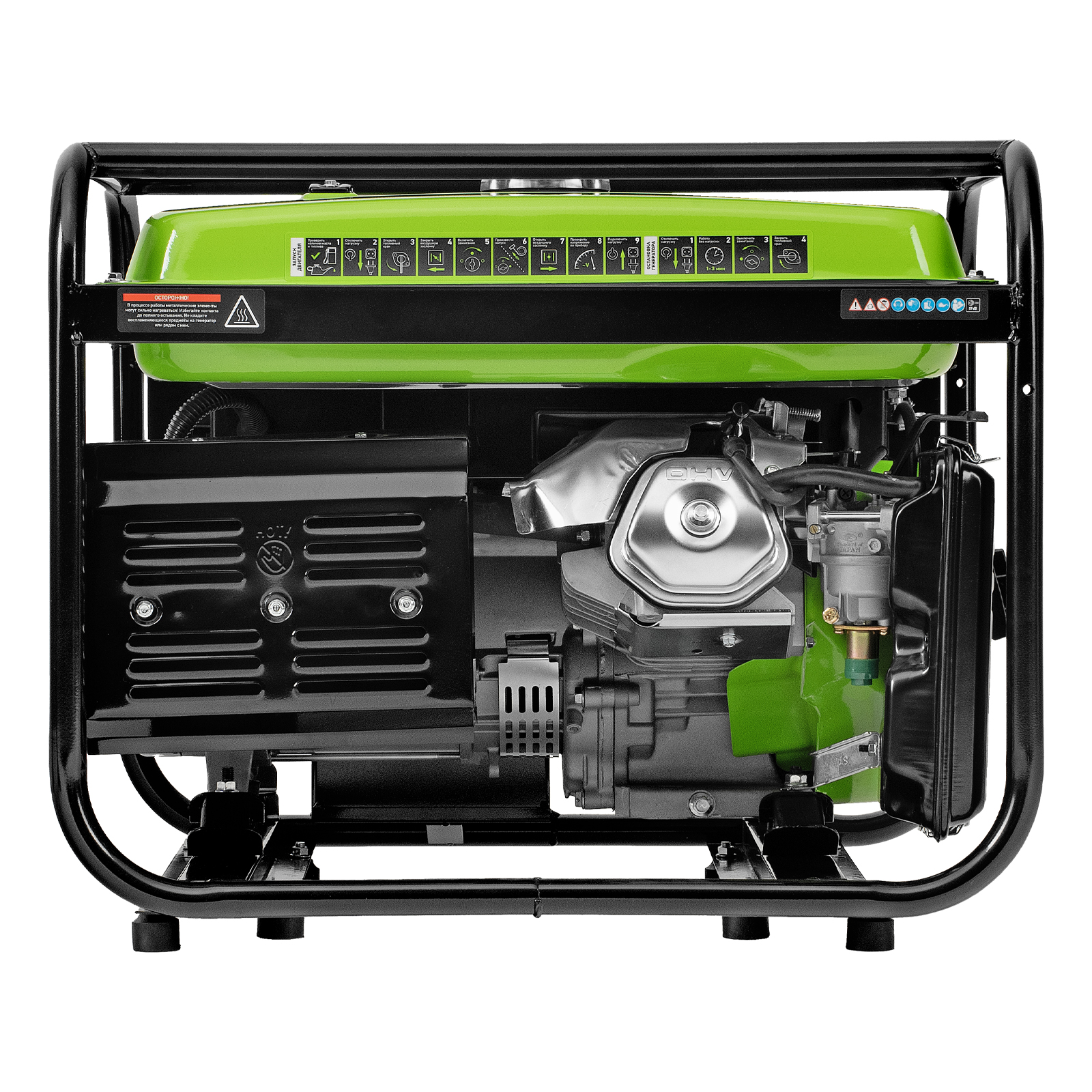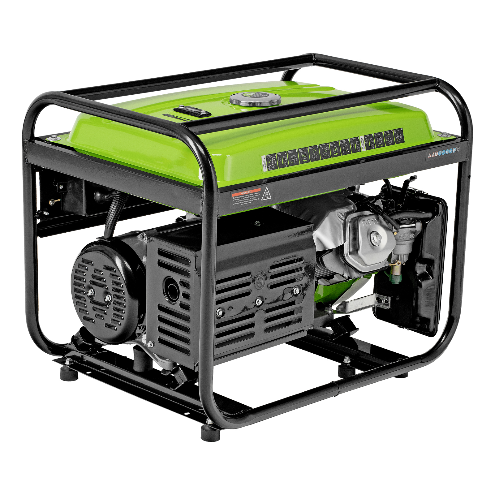 - Надежность — медная обмотка альтернатора и стальной распредвал выдерживают высокие нагрузки, прочная стальная рама защищает от повреждений.