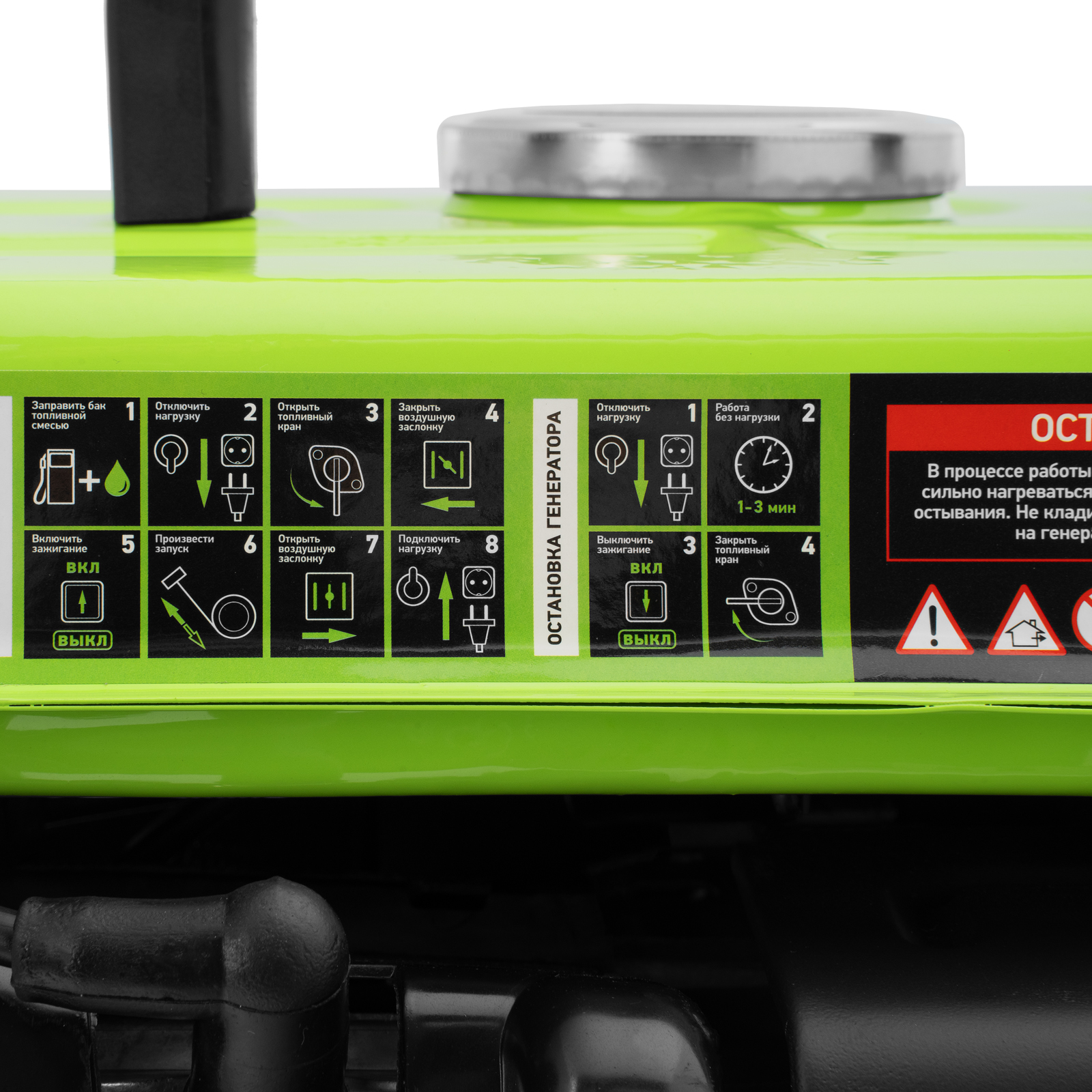 - Безопасная работа — предохранитель отключает двигатель при перегрузке, что предотвращает поломку генератора.