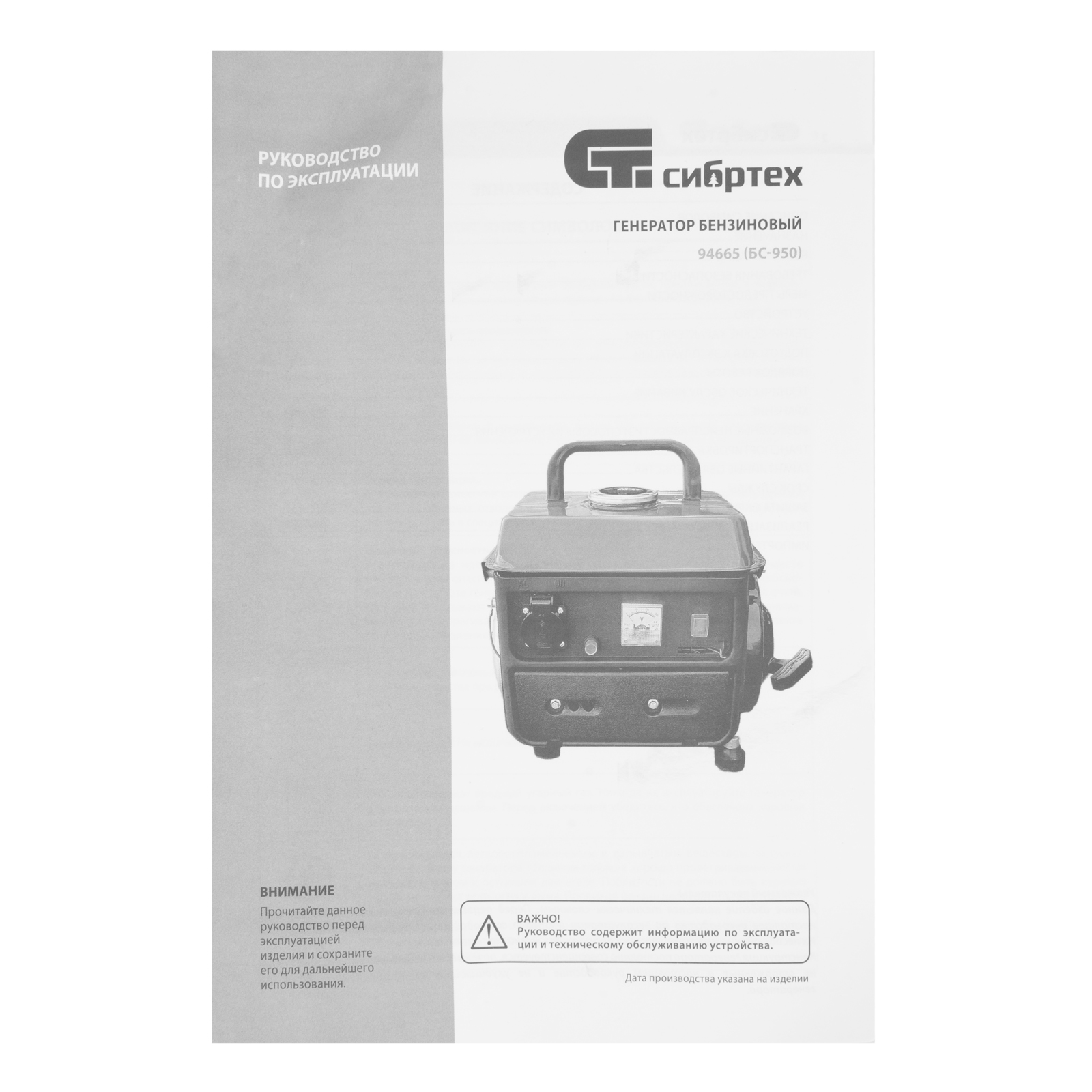 Генератор - 1 штРукоятка - 1 штНабор крепежа - 1 штНабор инструментов - 1 штРуководство по эксплуатации с гарантийным талоном - 1 шт |